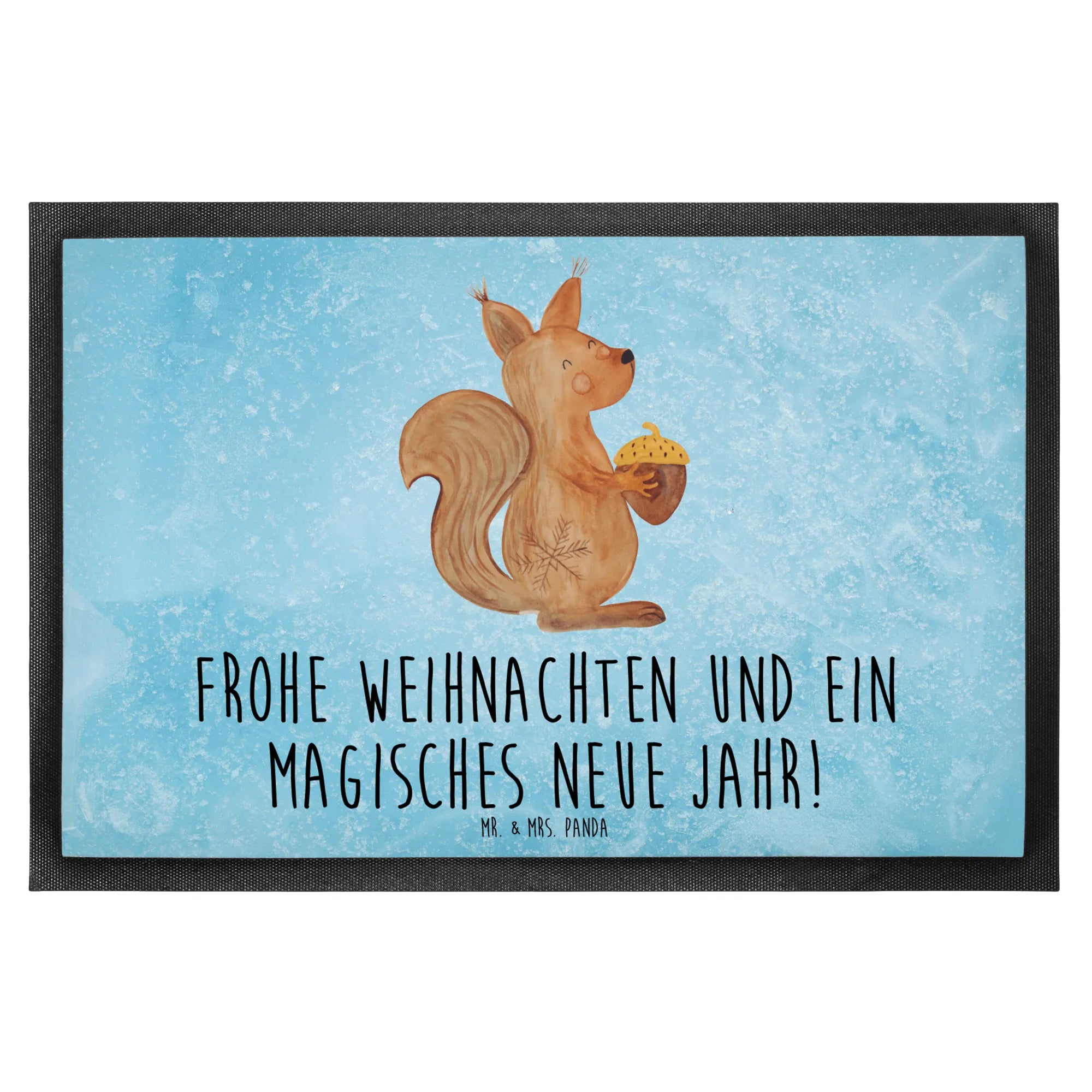 Doormat Squirrel Christmas - with a saying - Ice blue