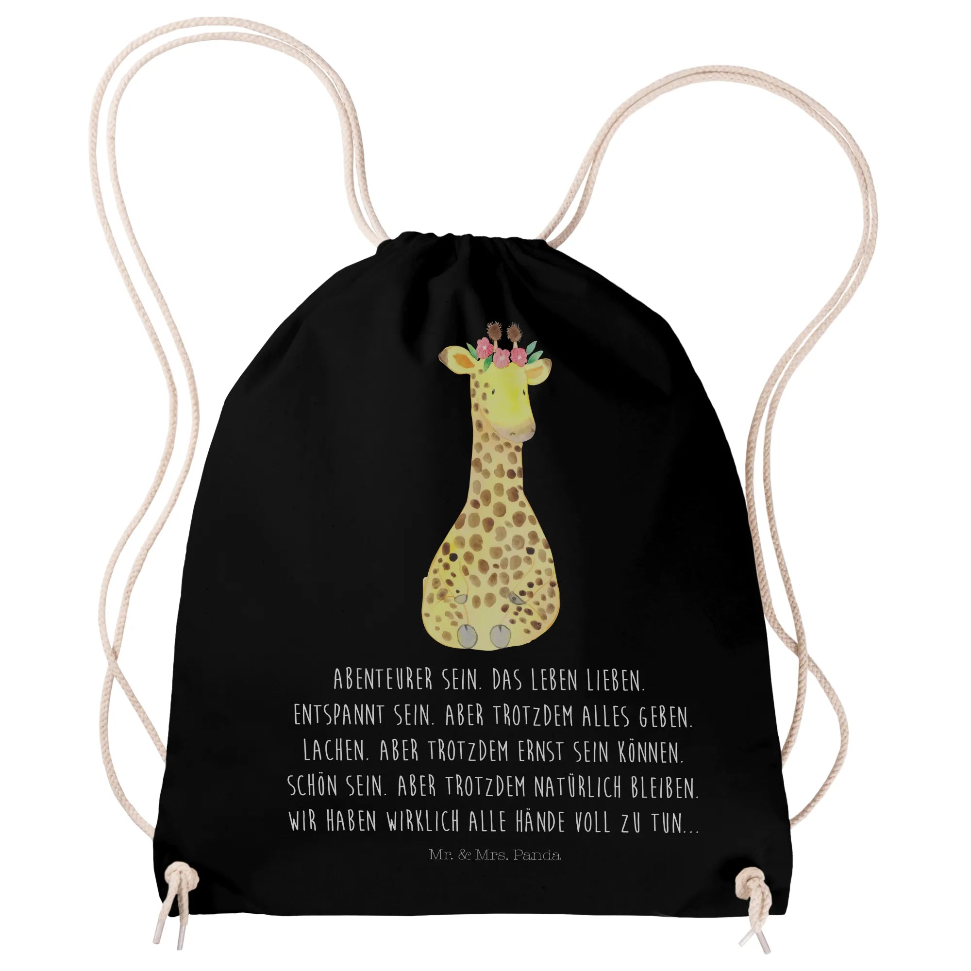 In summary, the Drawstring Bag with the Giraffe Wreath of Flowers from Mr. & Mrs. Panda is more than just a sports bag; it's a celebration of uniqueness and wanderlust. Gift it, keep it, love it! Make this fantastic cotton carrier bag your trusty sidekick for every day of adventure and self-expression!