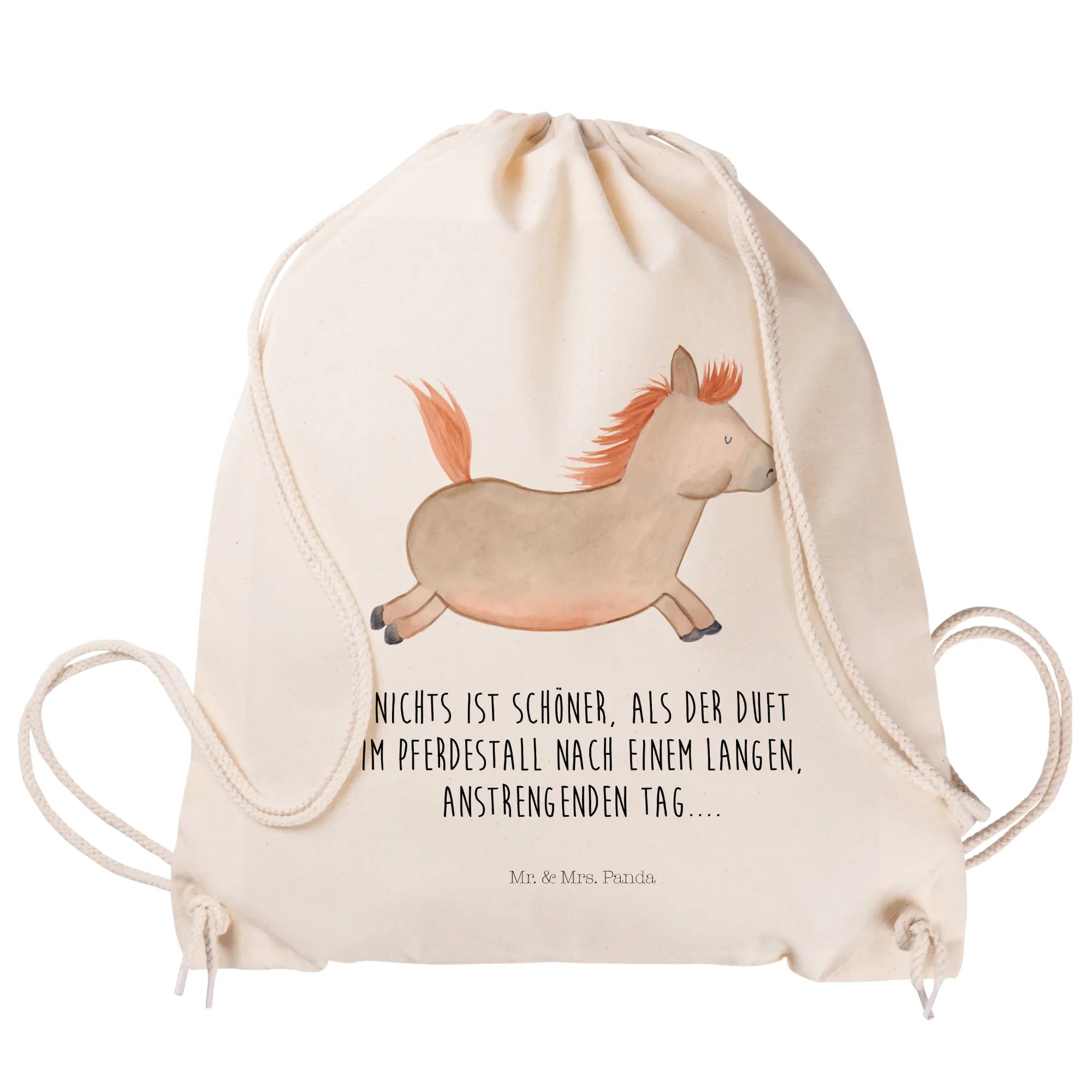 Looking for the perfect gift for that special horse lover or passionate equestrian in your life? Look no further! Our Drawstring Bag featuring the enchanting motif of a horse jumping is a true gem from the Mr. & Mrs. Panda Farm collection. This delightful sports bag not only serves as a practical accessory for carrying gym gear, but it also celebrates the beautiful bond between horse owners and their beloved ponies.