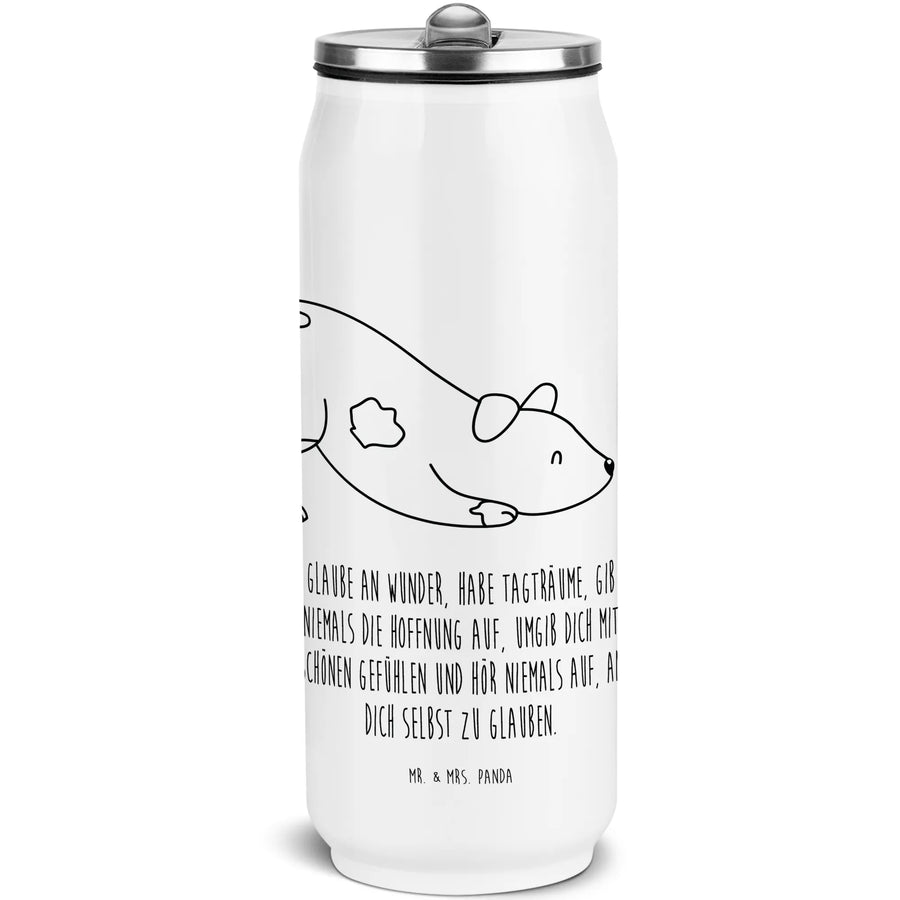 Discover the elegance and functionality of the stainless steel beverage can by Mr. & Mrs. Panda. This unique can is not only a practical companion for outdoor excursions but also a stylish everyday accessory. Printed with loving sayings and cute motifs, the double-walled stainless steel construction provides excellent insulation for your favorite beverages - hot or cold. Thanks to the integrated straw and the foldable mouthpiece, the drinking experience is both easy and enjoyable. The large opening also makes cleaning easier, with hand washing recommended to preserve the beauty of the can. A distinctive gift that brings joy to everyday life.