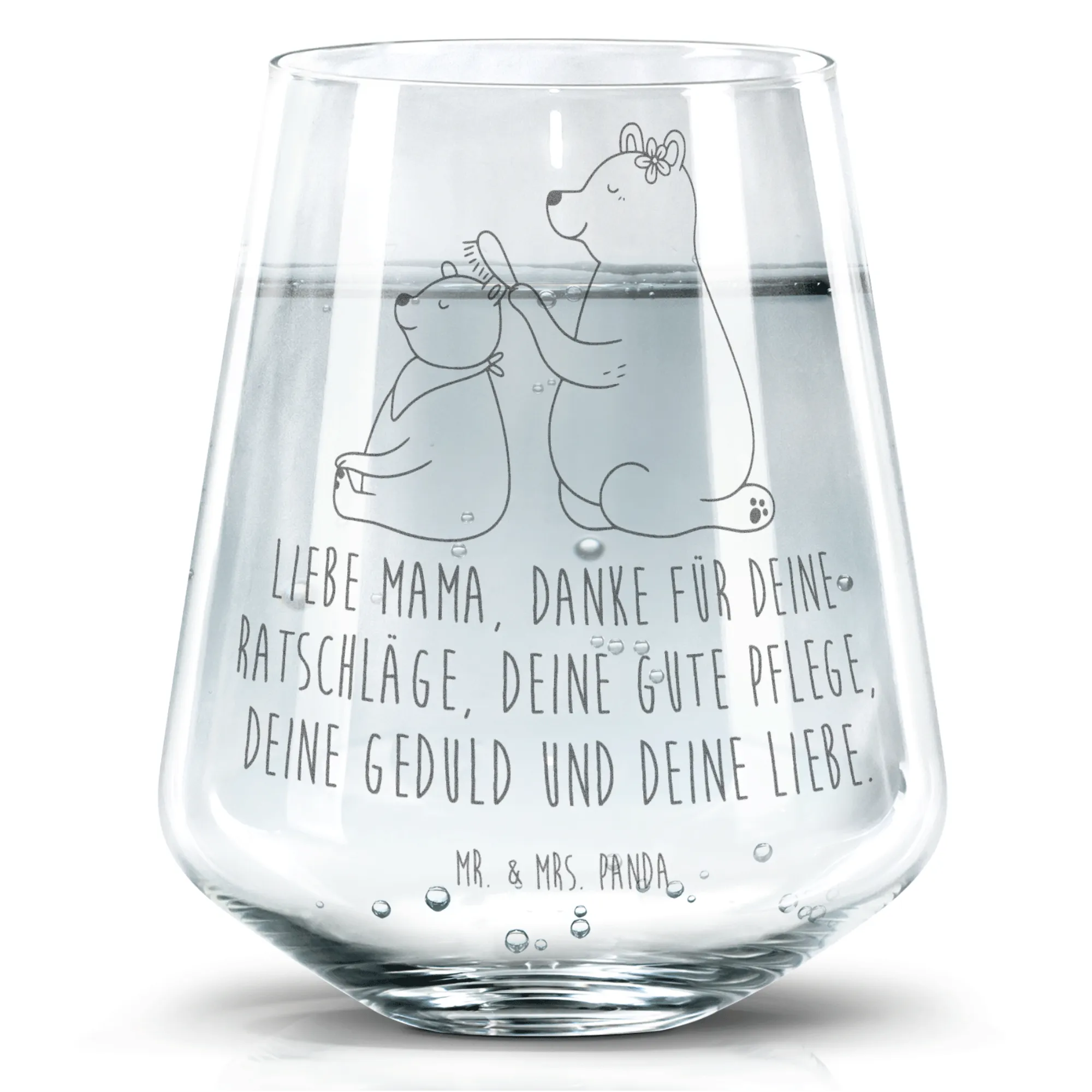 Say hello to the charming Trinkglas from Mr. & Mrs. Panda! It measures 103 mm (4 inches) in height and has a diameter of 88 mm (3 inches), perfect for holding 400 ml (14 oz) of your preferred beverage. With beautiful engravings that showcase heartfelt quotes and designs, this glass is not just functional but also a stylish accessory for any table setting. Manufactured from robust glass and featuring a unique matte effect due to high-quality laser engraving, it's also dishwasher safe for easy cleanup. Whether you're hosting a party or enjoying a quiet night in, this Trinkglas will surely impress your guests and enhance your drinking experience.