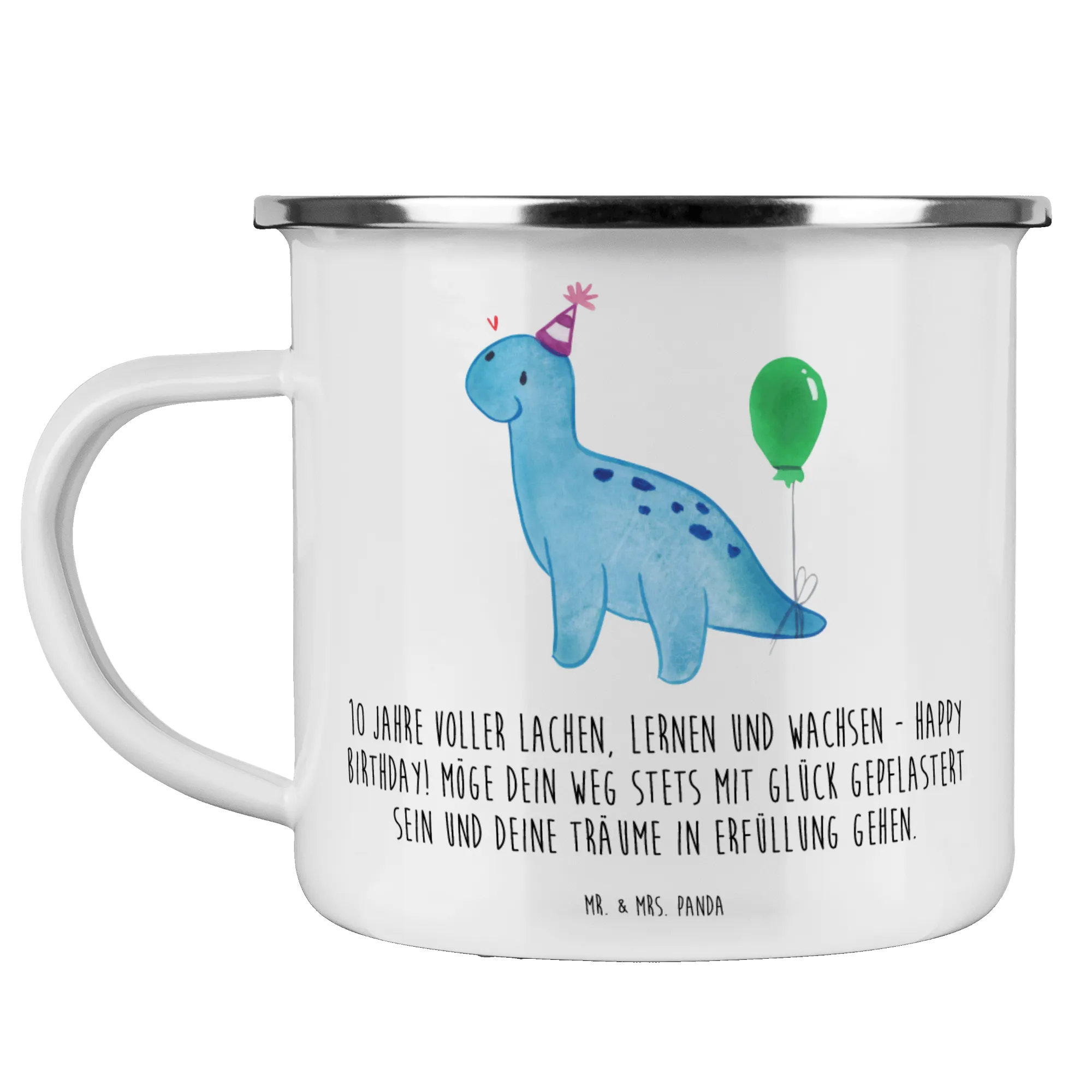 Enamel camping mug 10 Jahre voller Lachen, Lernen und Wachsen - Happy Birthday! Möge dein Weg stets mit Glück gepflastert sein und deine Träume in Erfüllung gehen.