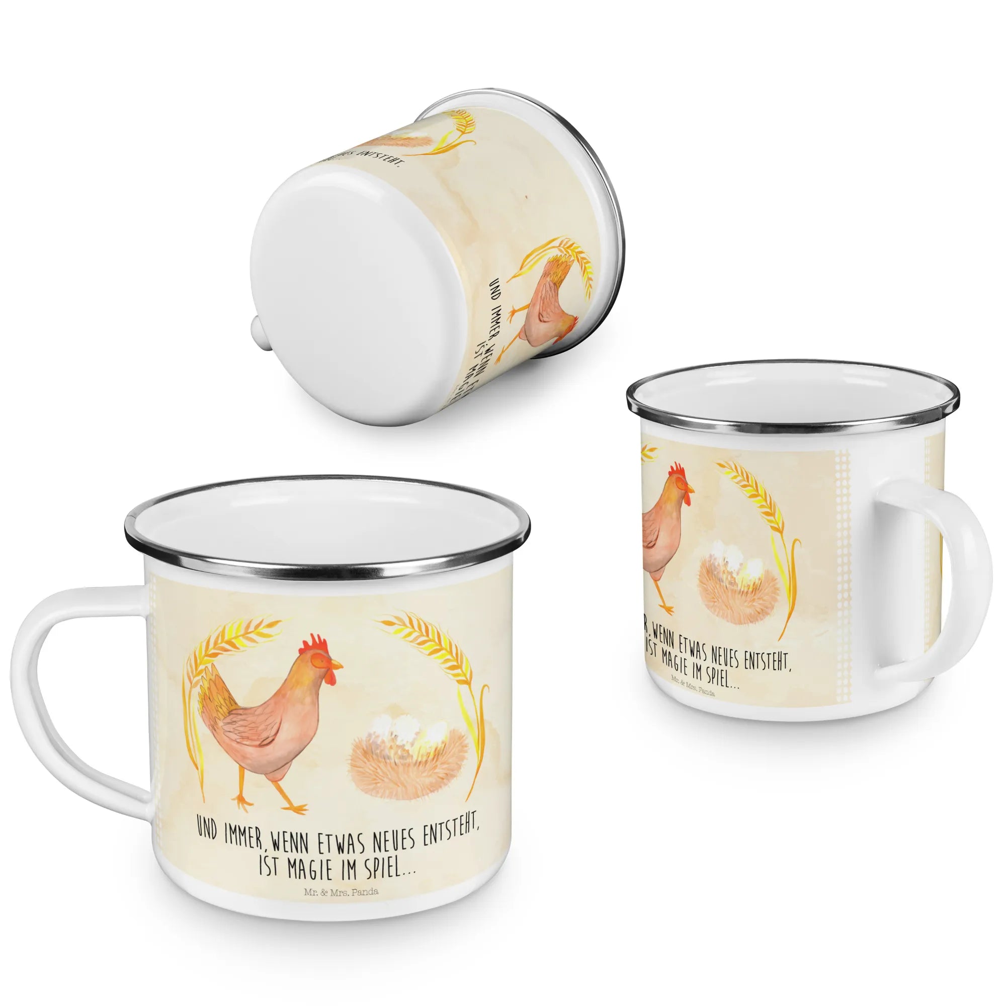 Imagine sipping your favorite hot coffee or refreshing iced tea from this charming enamel mug while enjoying a peaceful morning on the farm or a cozy night by the campfire. With its unique design featuring a proud chicken strutting through the yard, this mug serves not only as a practical drinking vessel but also as a lovely decorative item that reflects your love for farm life and animals. The motif captures the essence of magic in every new beginning, making it a thoughtful gift for anyone celebrating pregnancy, new life, or simply the joy of daily adventures.