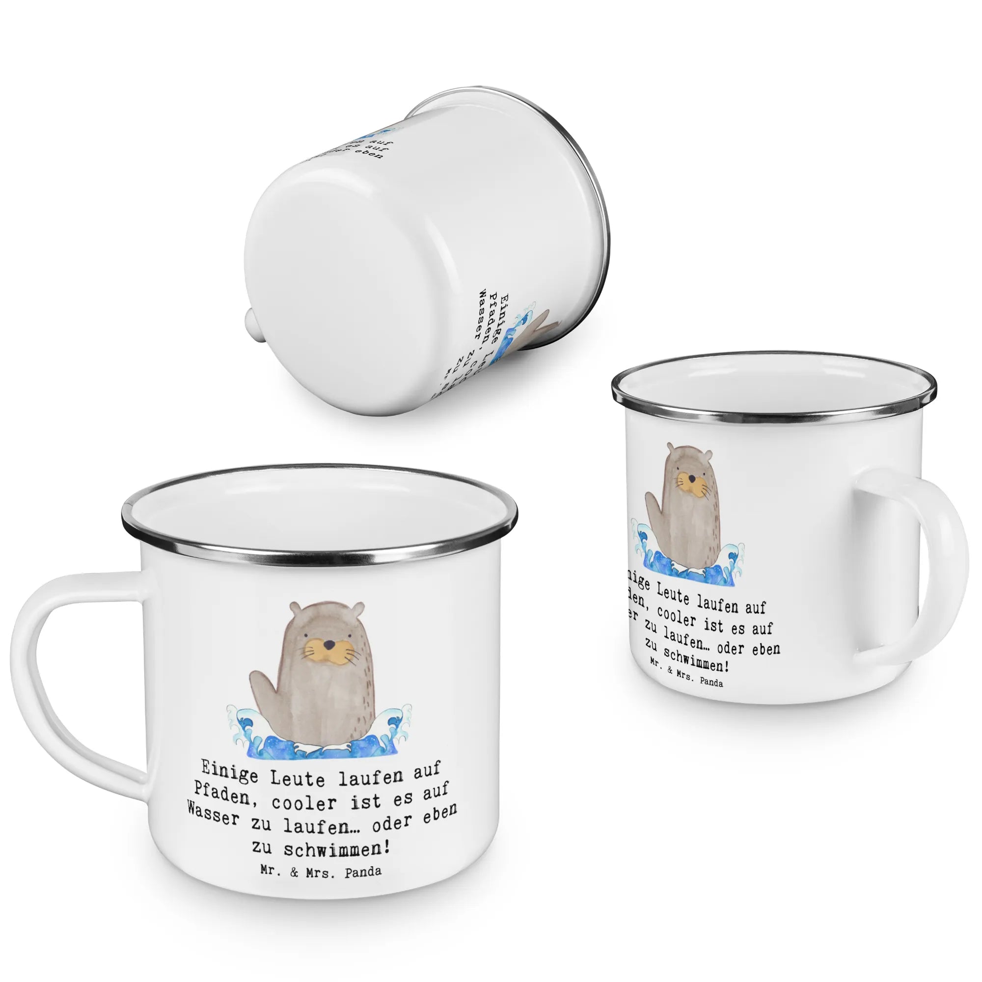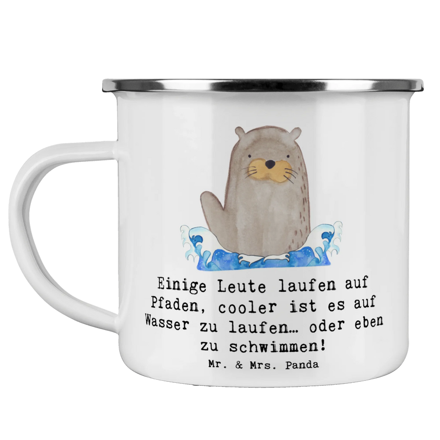 Enamel camping mug Einige Leute laufen auf Pfaden, cooler ist es auf Wasser zu laufen… oder eben zu schwimmen! - White