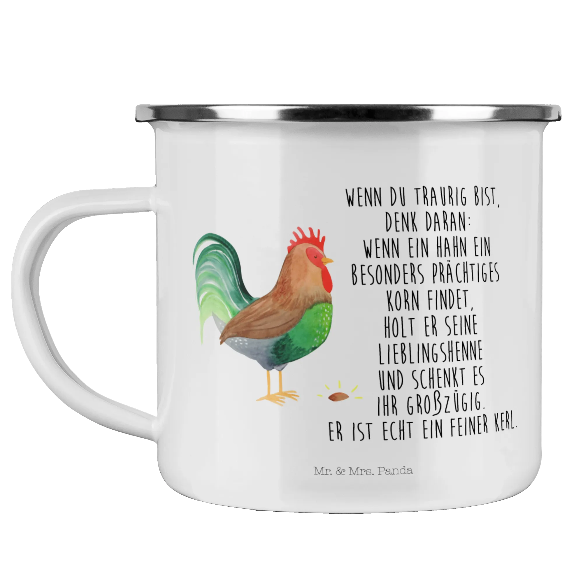 Are you an adventurer at heart, someone who loves spending time outdoors, sipping your favorite hot beverage by the campfire? Look no further! The Mr. & Mrs. Panda Enamel Camping Mug featuring the adorable Cock with Grain design is the perfect companion for all your outdoor escapades.