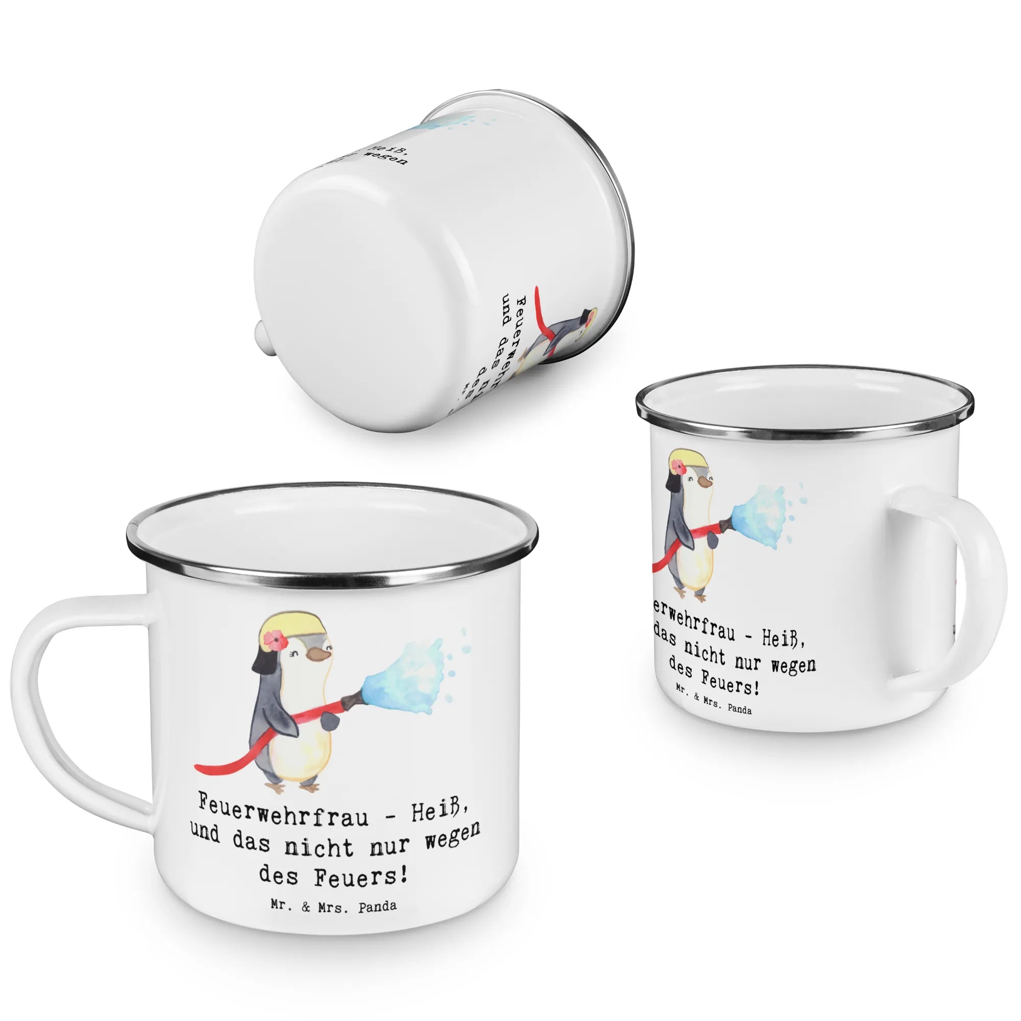 Enamel camping mug Feuerwehrfrau - Heiß, und das nicht nur wegen des Feuers! - White