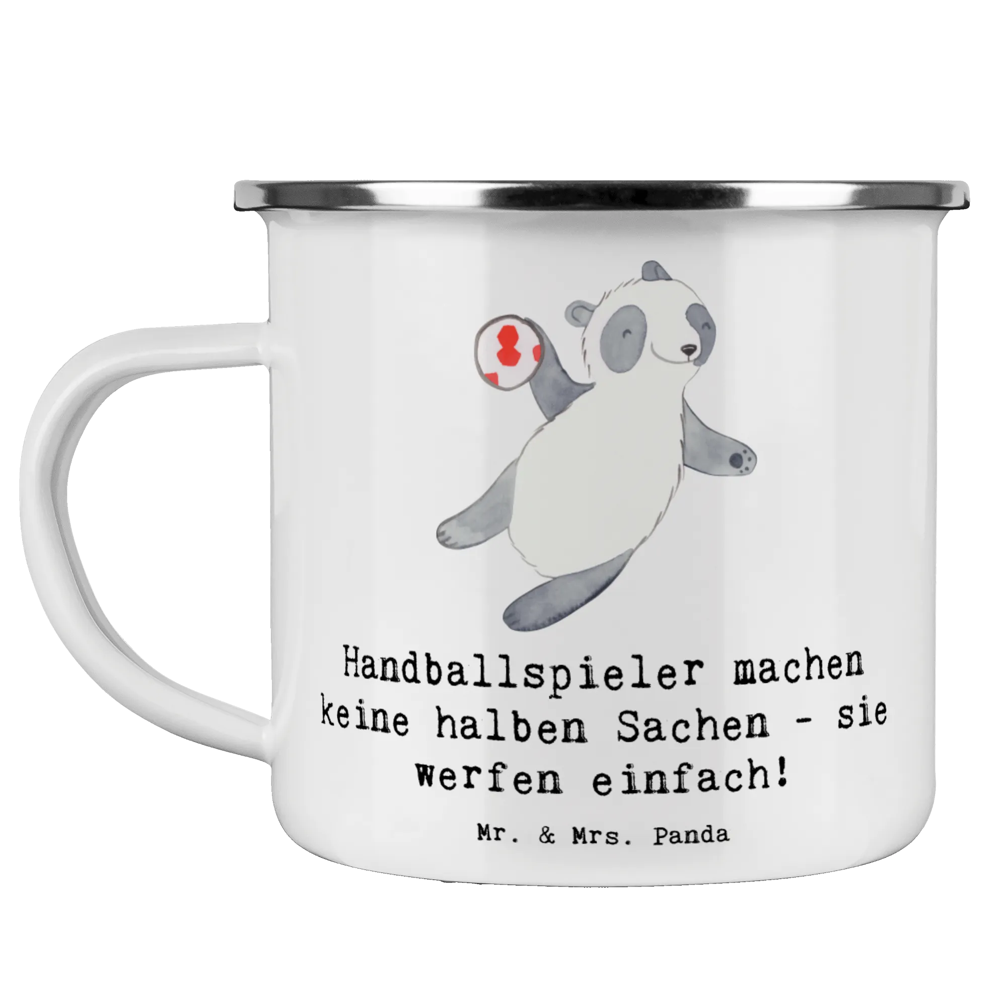 Enamel camping mug Handballspieler machen keine halben Sachen - sie werfen einfach! - White