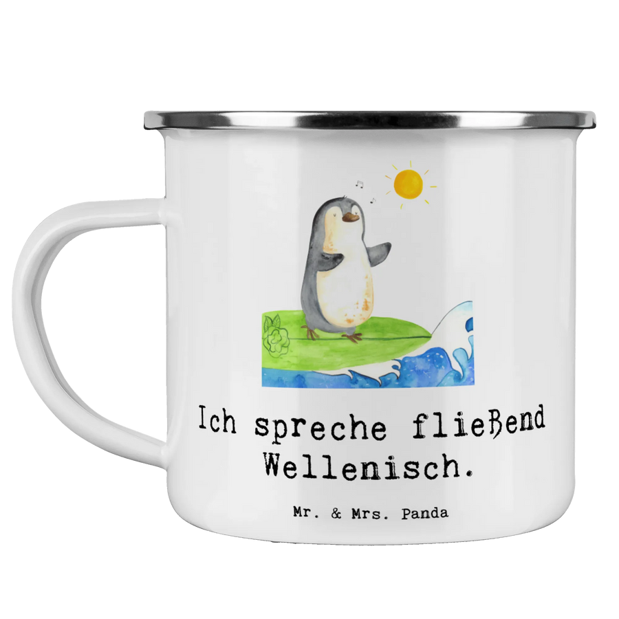 Enamel camping mug Ich spreche fließend Wellenisch. - White
