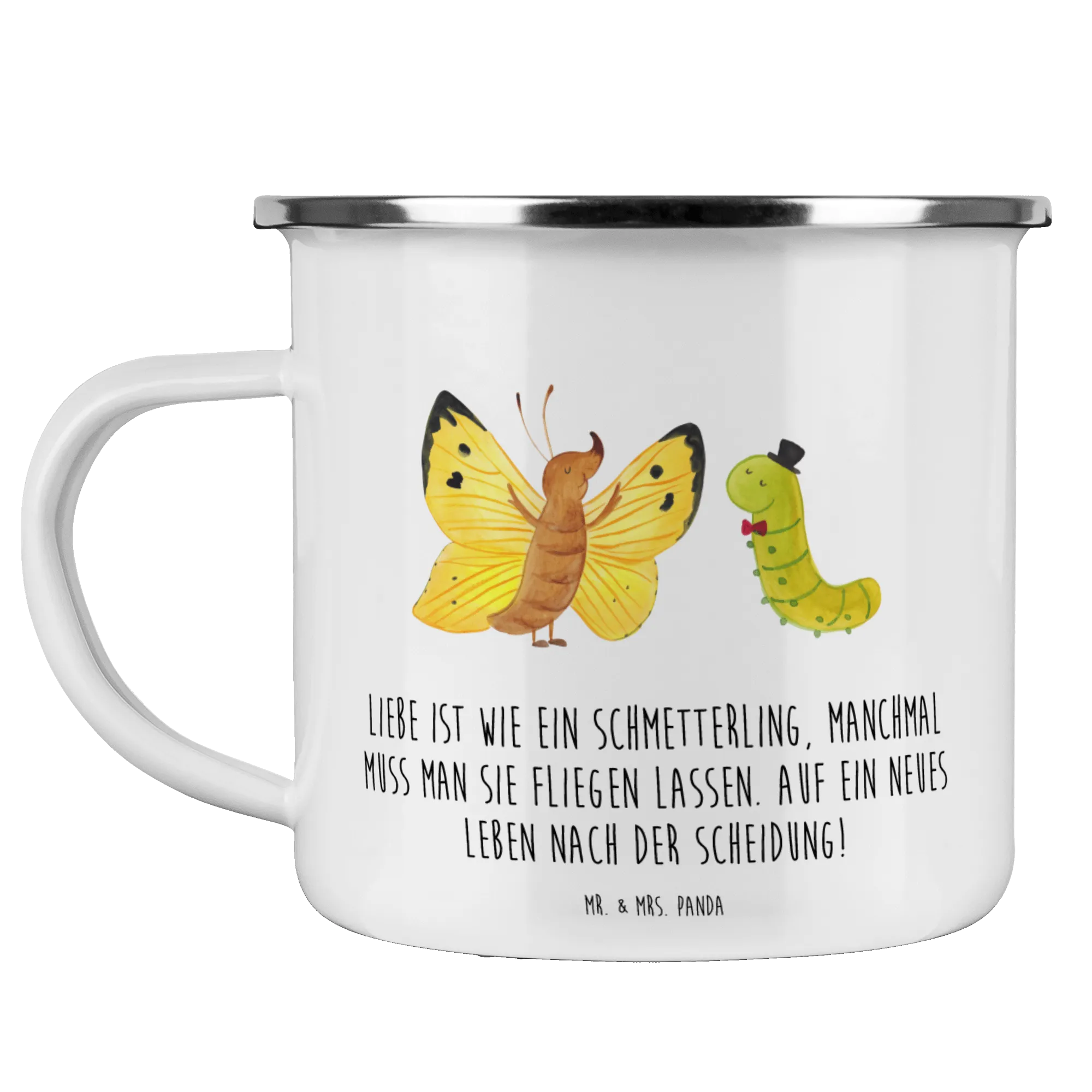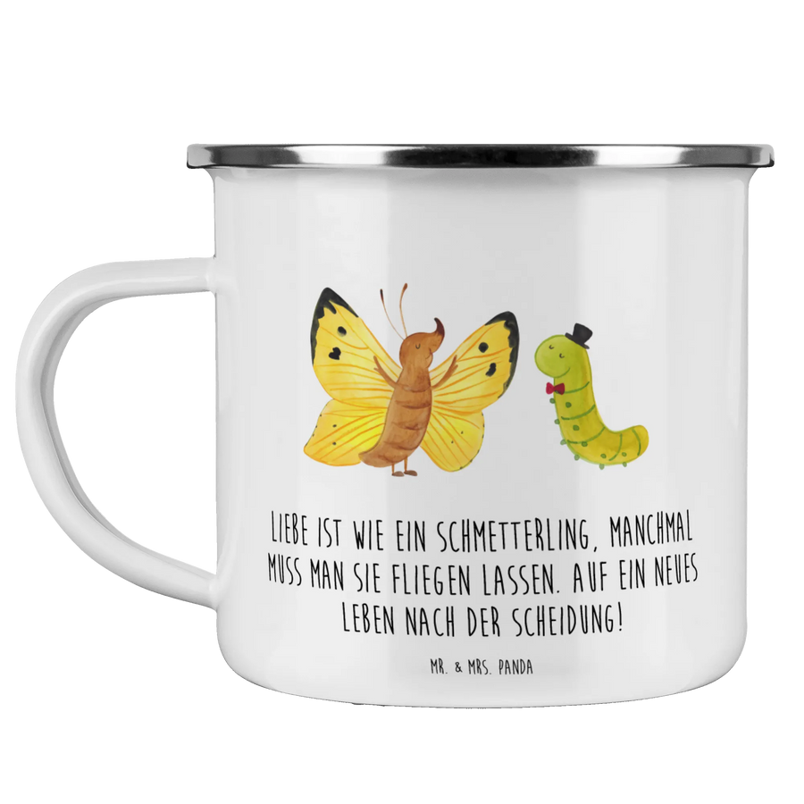 Enamel camping mug Liebe ist wie ein Schmetterling, manchmal muss man – Mr. & Mrs. Panda