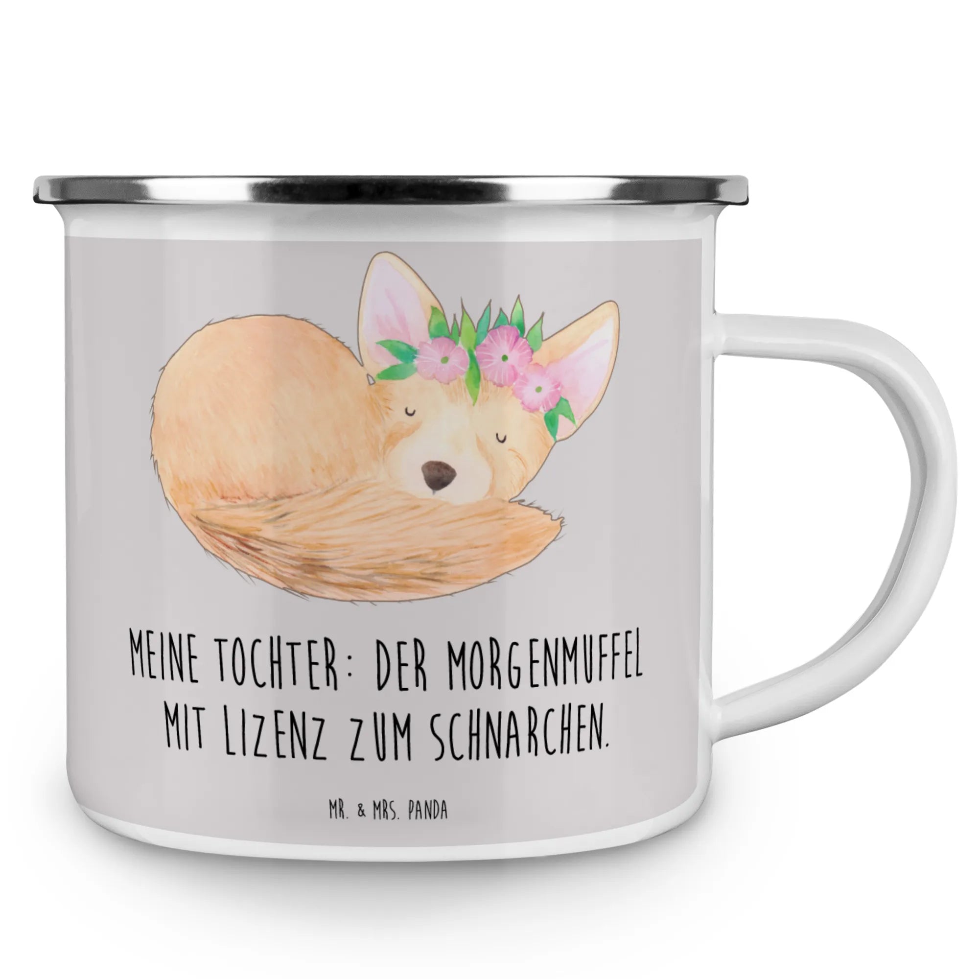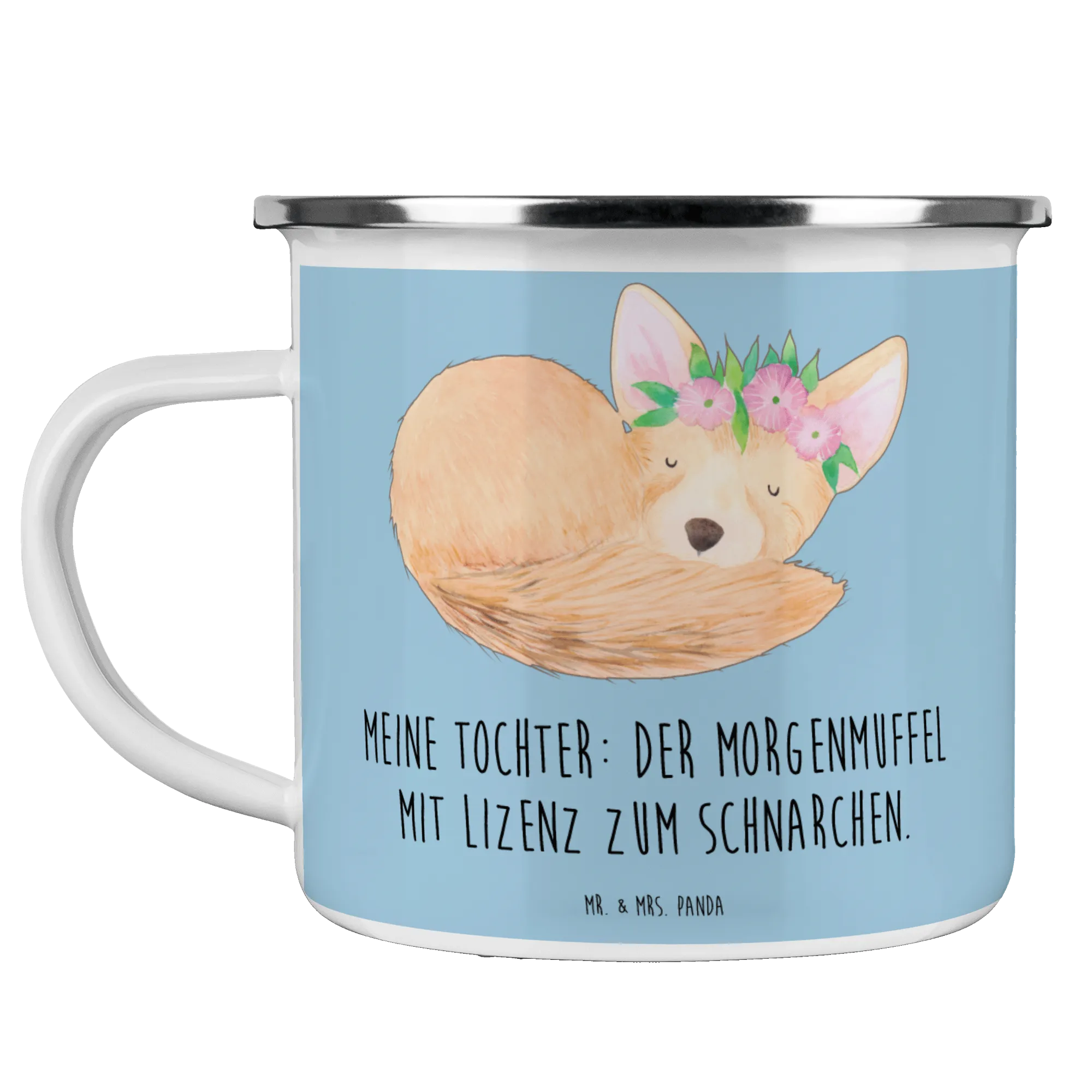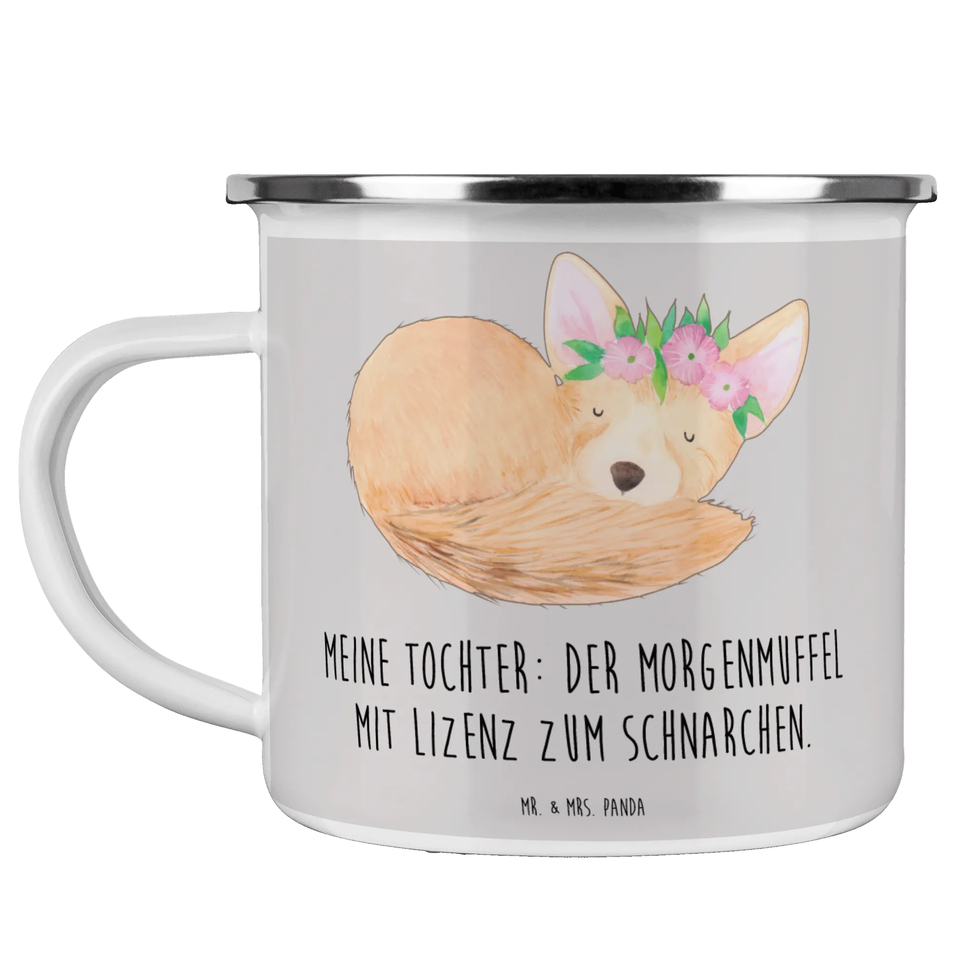Enamel camping mug Meine Tochter: Der Morgenmuffel mit Lizenz zum Schnarchen. - White