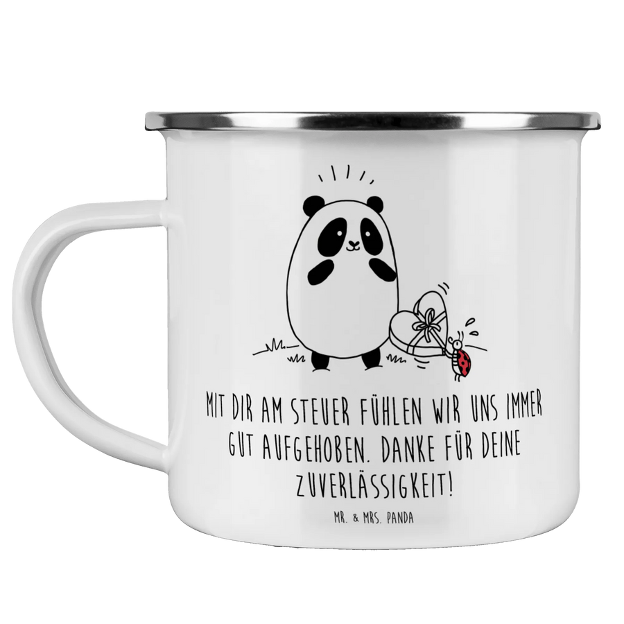Enamel camping mug Mit dir am Steuer fühlen wir uns immer gut aufgehoben. Danke für deine Zuverlässigkeit!