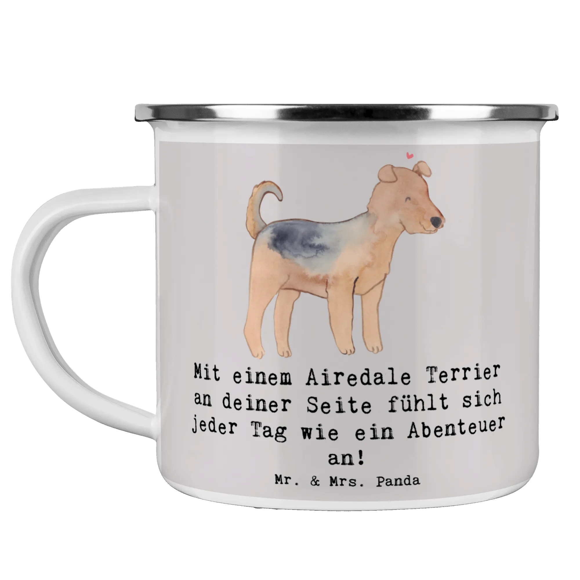 Enamel camping mug Mit einem Airedale Terrier an deiner Seite fühlt sich jeder Tag wie ein Abenteuer an! - White