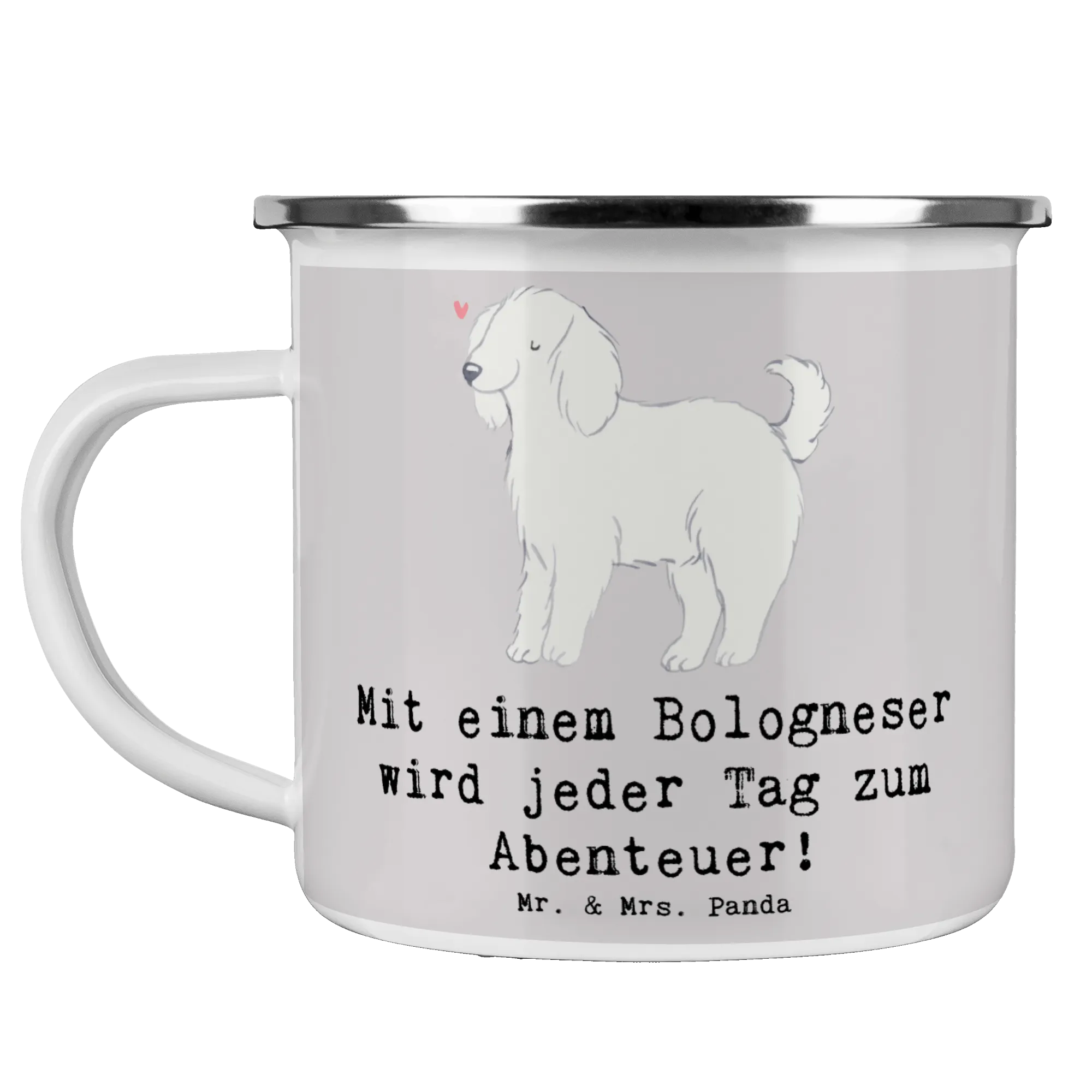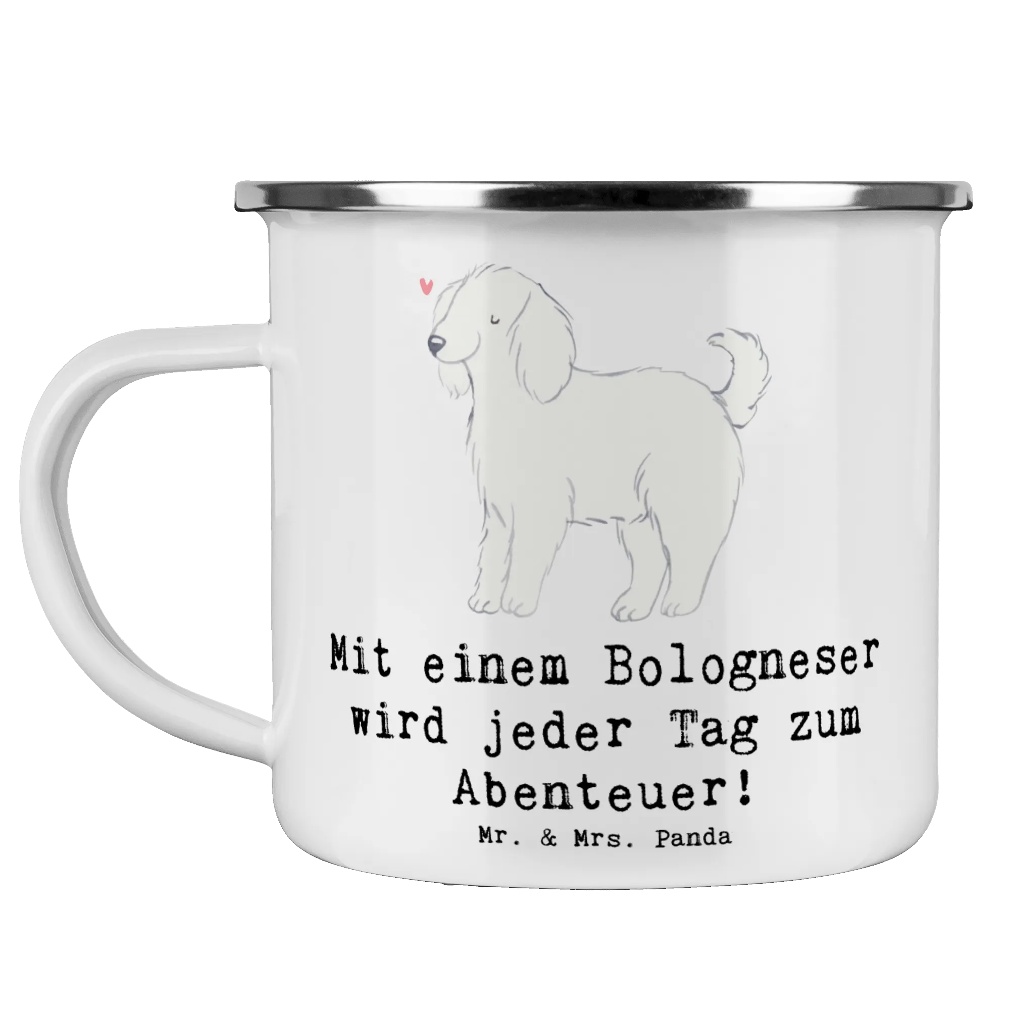 Enamel camping mug Mit einem Bologneser wird jeder Tag zum Abenteuer! - White