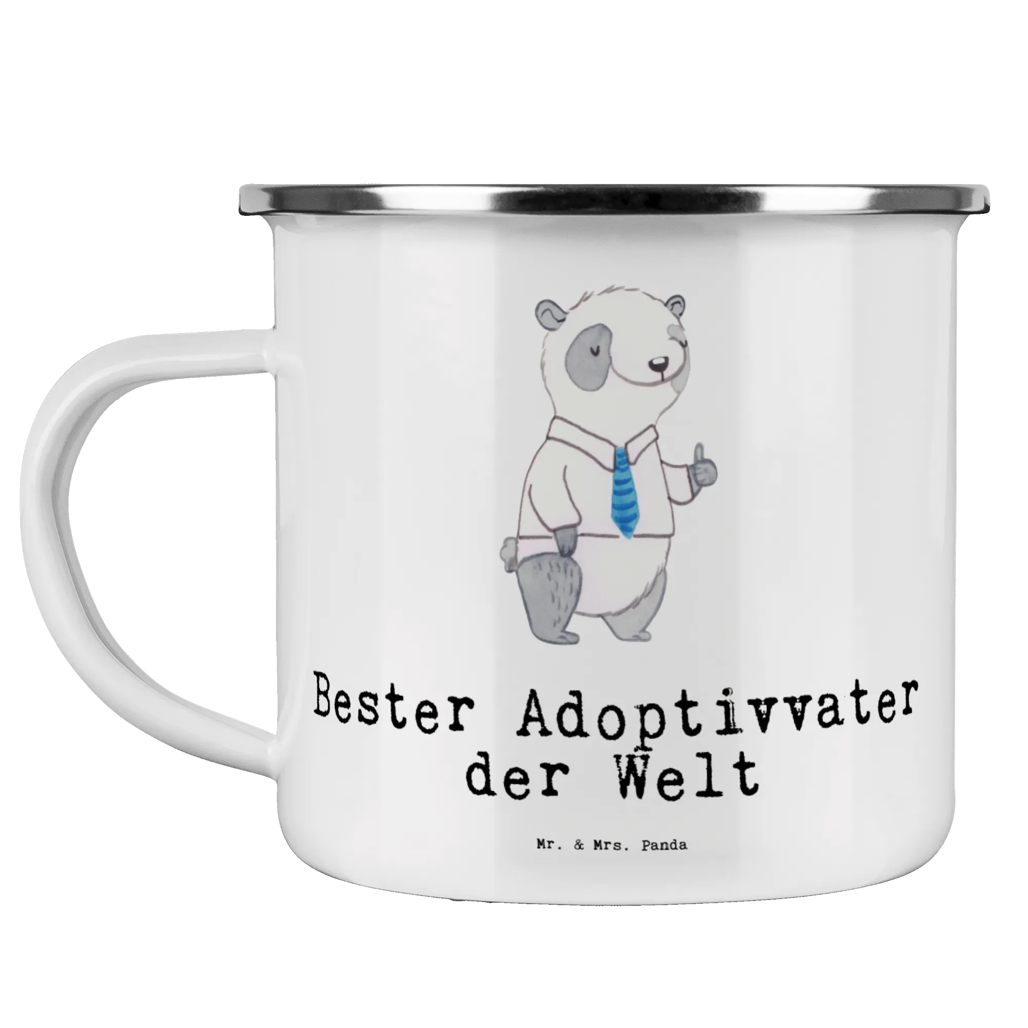 Enamel camping mug panda Best adoptive father in the world - White