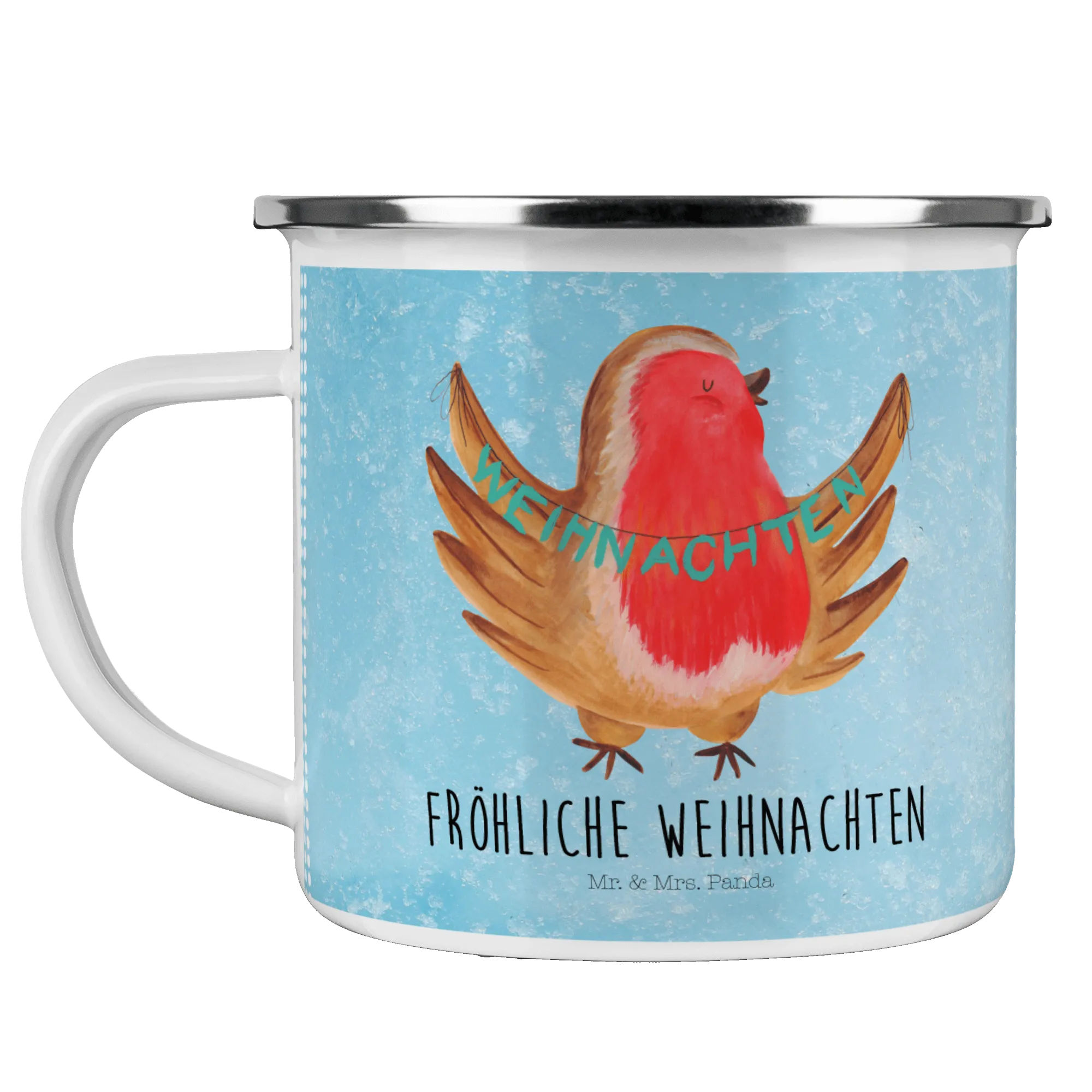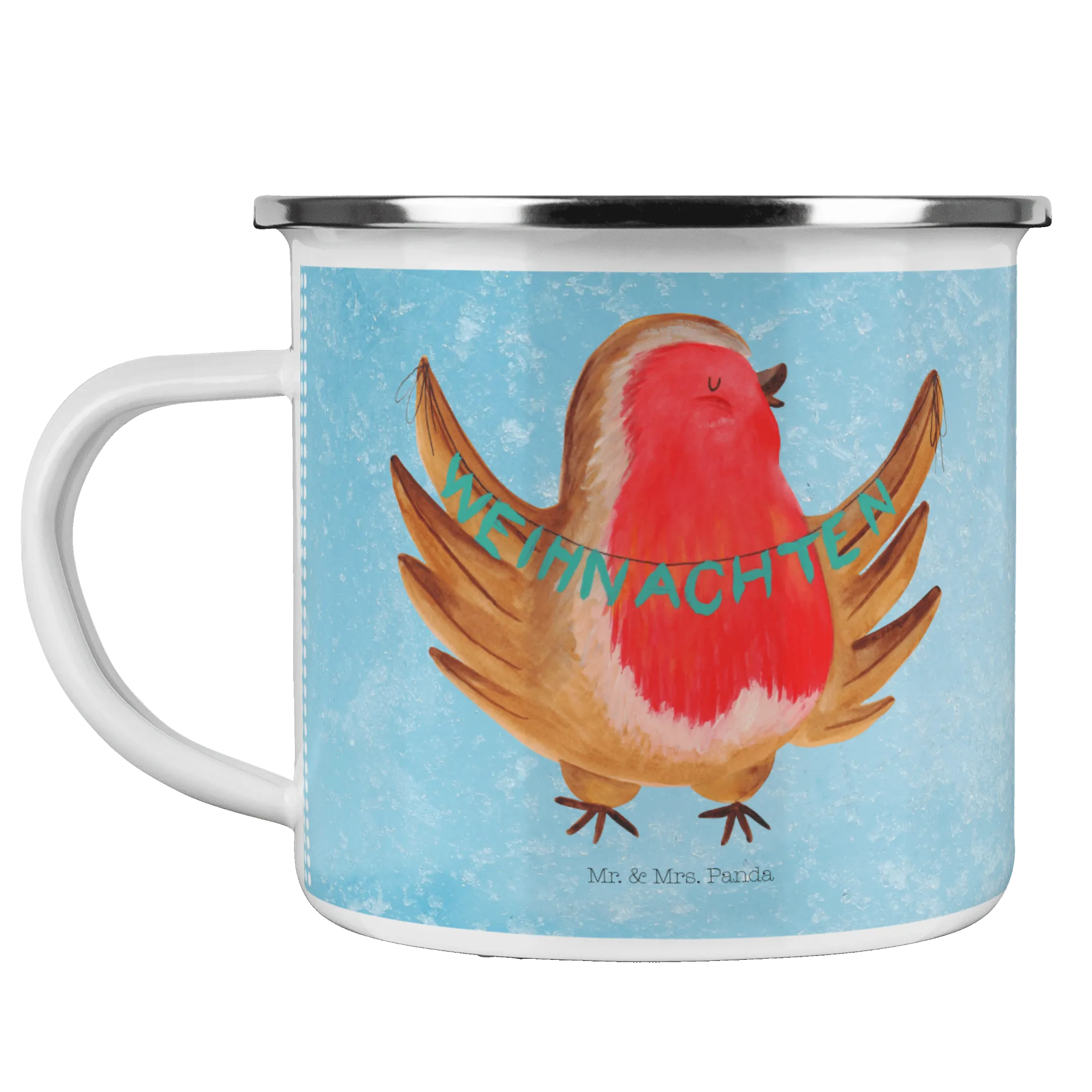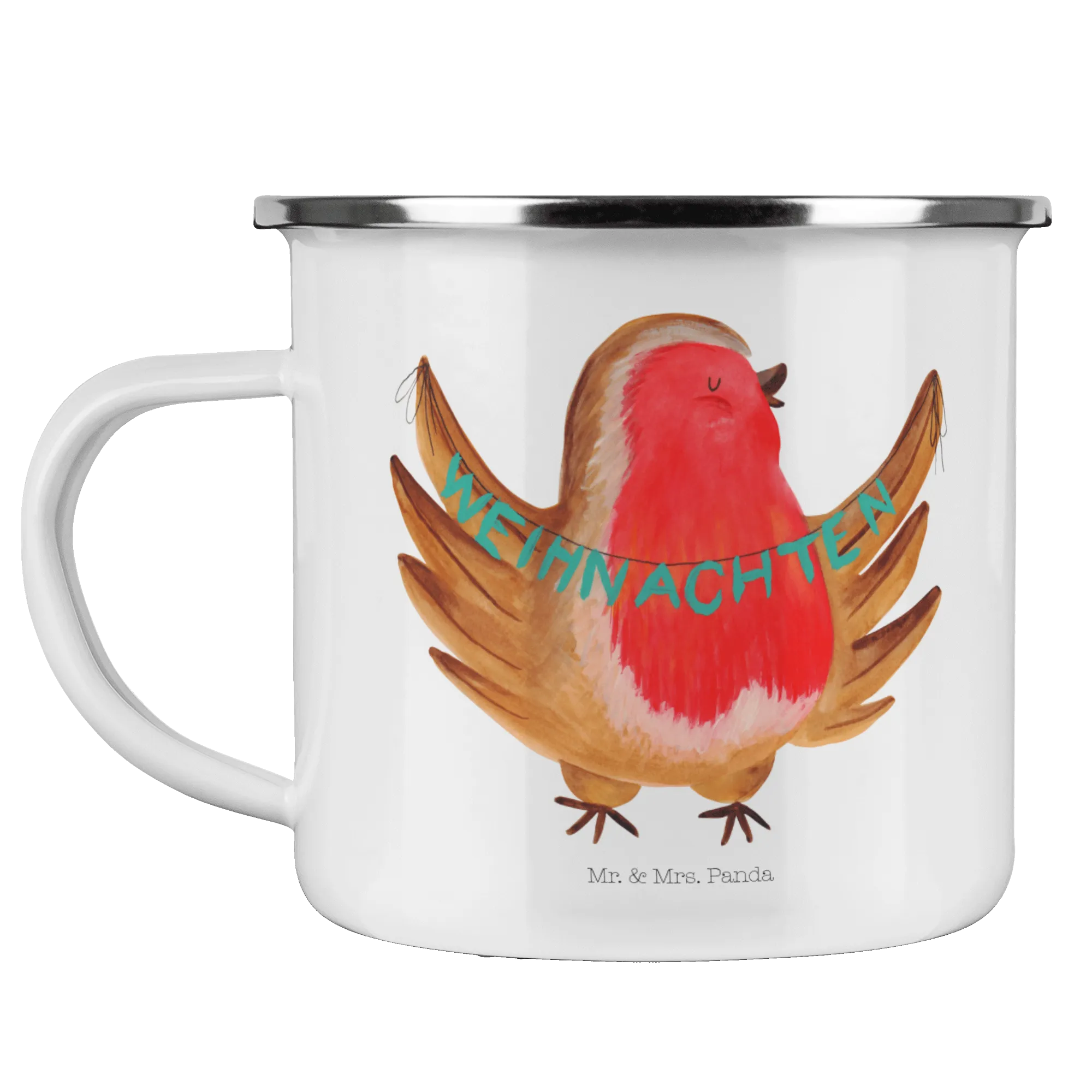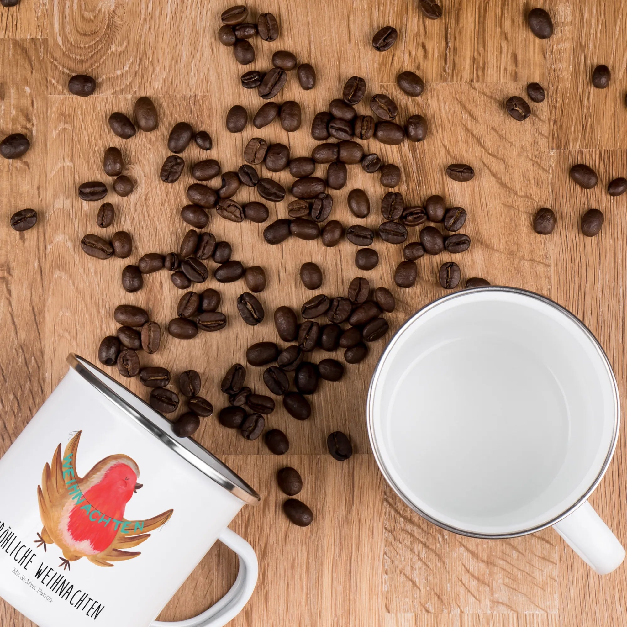 Experience the magic of winter with our charming Enamel Camping Mug featuring the delightful Robin Christmas motif from the exclusive Winter Collection by Mr. & Mrs. Panda. Perfect for outdoor lovers and cozy evenings alike, this sturdy and lightweight enamel mug is just what you need to enjoy a warm drink while surrounding yourself with nature's beauty. Whether you're camping under a starry sky, sipping hot cocoa by a crackling fire, or just relaxing in your backyard, this camping mug radiates festive cheer. It proudly showcases a hand-drawn illustration of a sweet robin, adorned with snowy surroundings that exude the spirit of the holiday season.