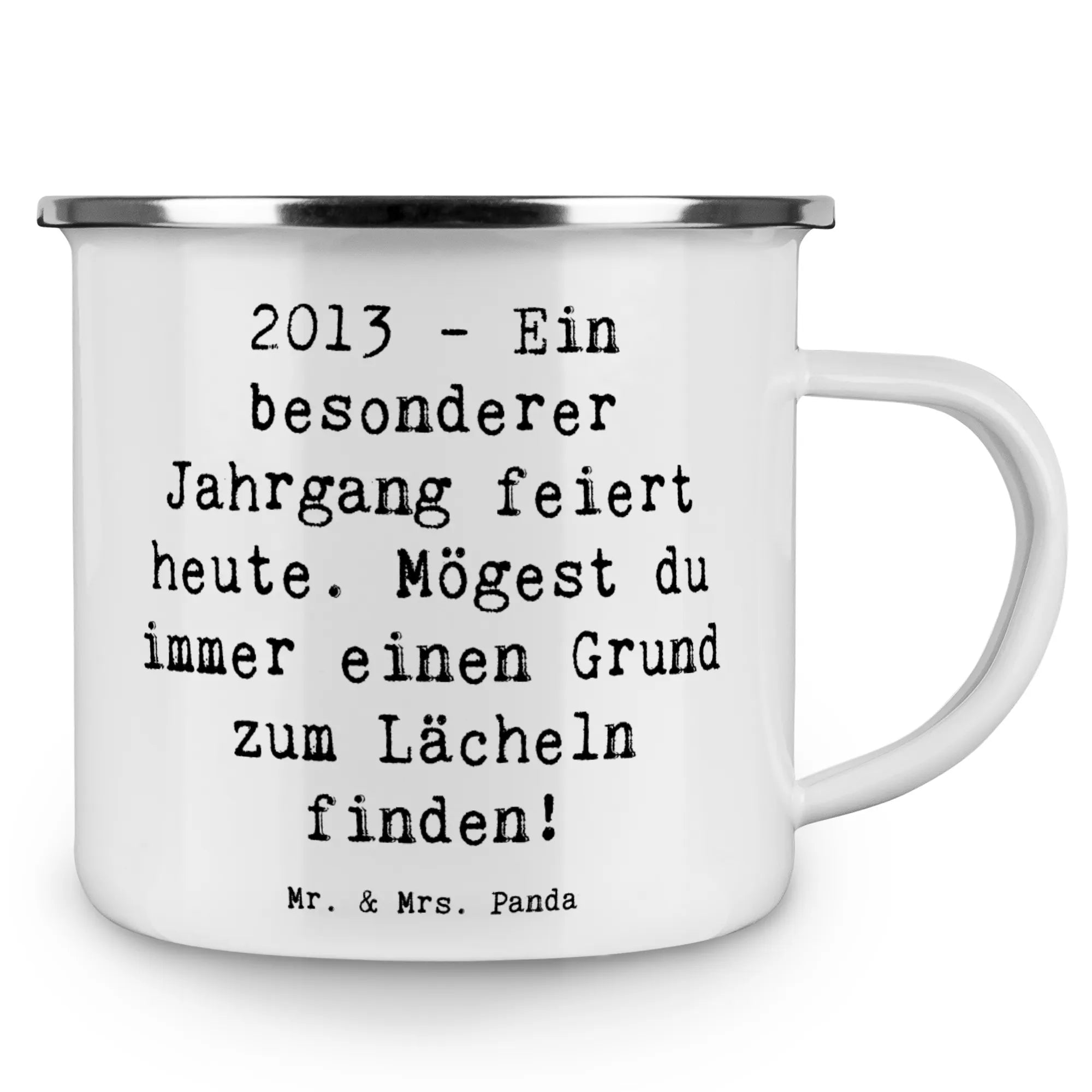 Enamel camping mug Saying 2013 - Ein besonderer Jahrgang feiert heute. Mögest du immer einen Grund zum Lächeln finden!