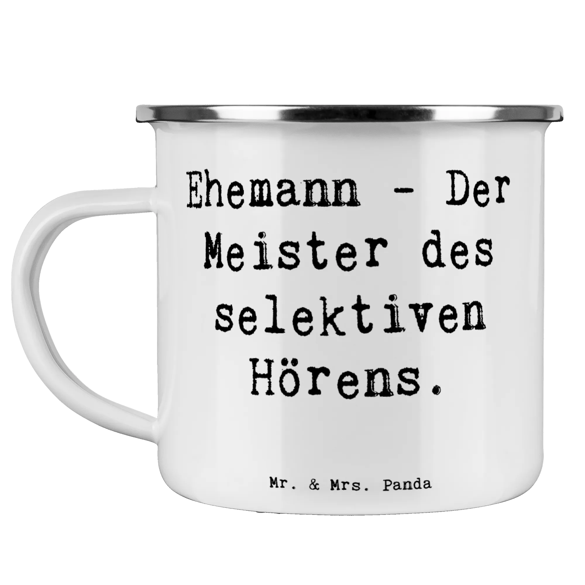 Enamel camping mug Saying Ehemann. Der Meister des selektiven Hörens. – Mr. & Mrs. Panda