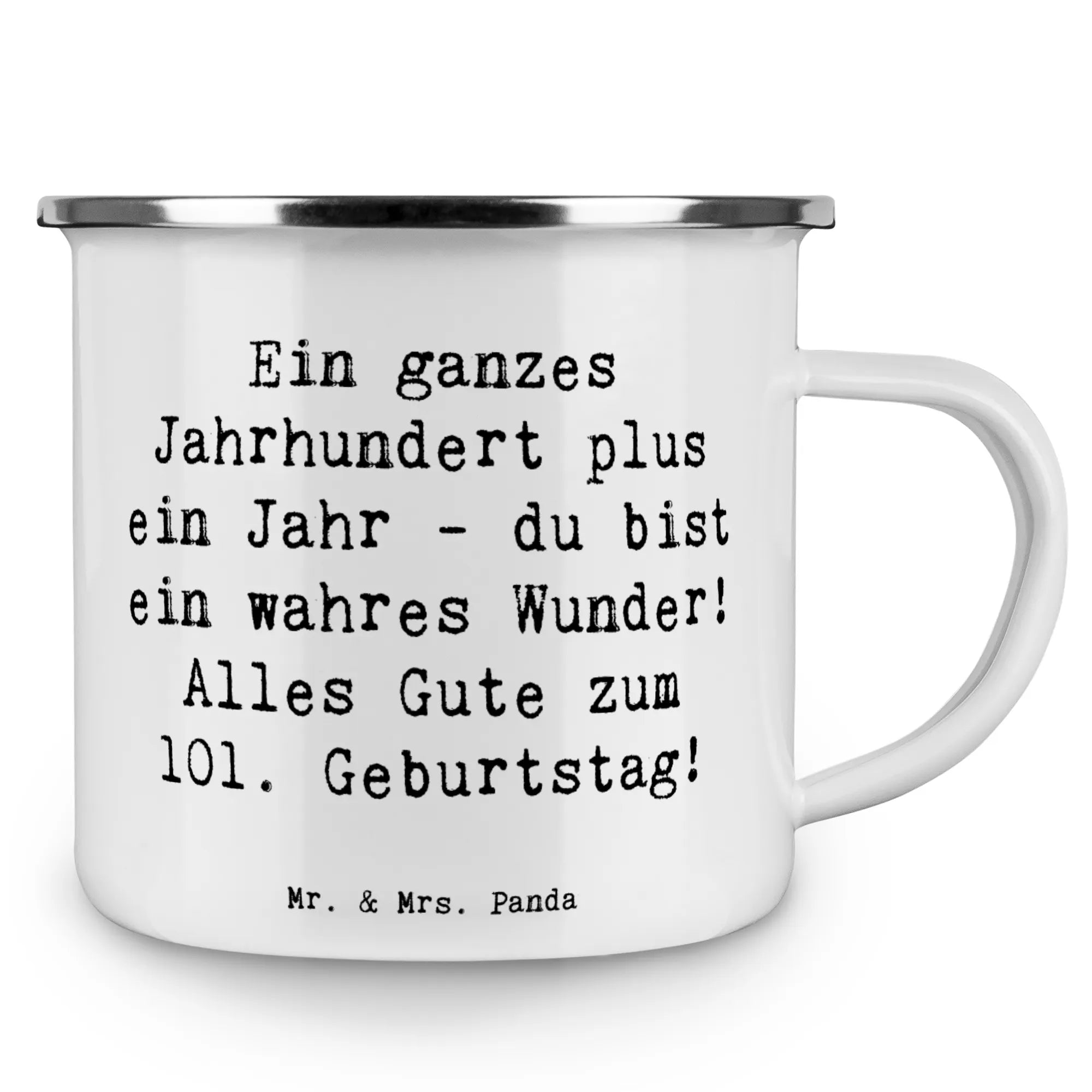 Enamel camping mug Saying Ein ganzes Jahrhundert plus ein Jahr - du bi – Mr. & Mrs. Panda