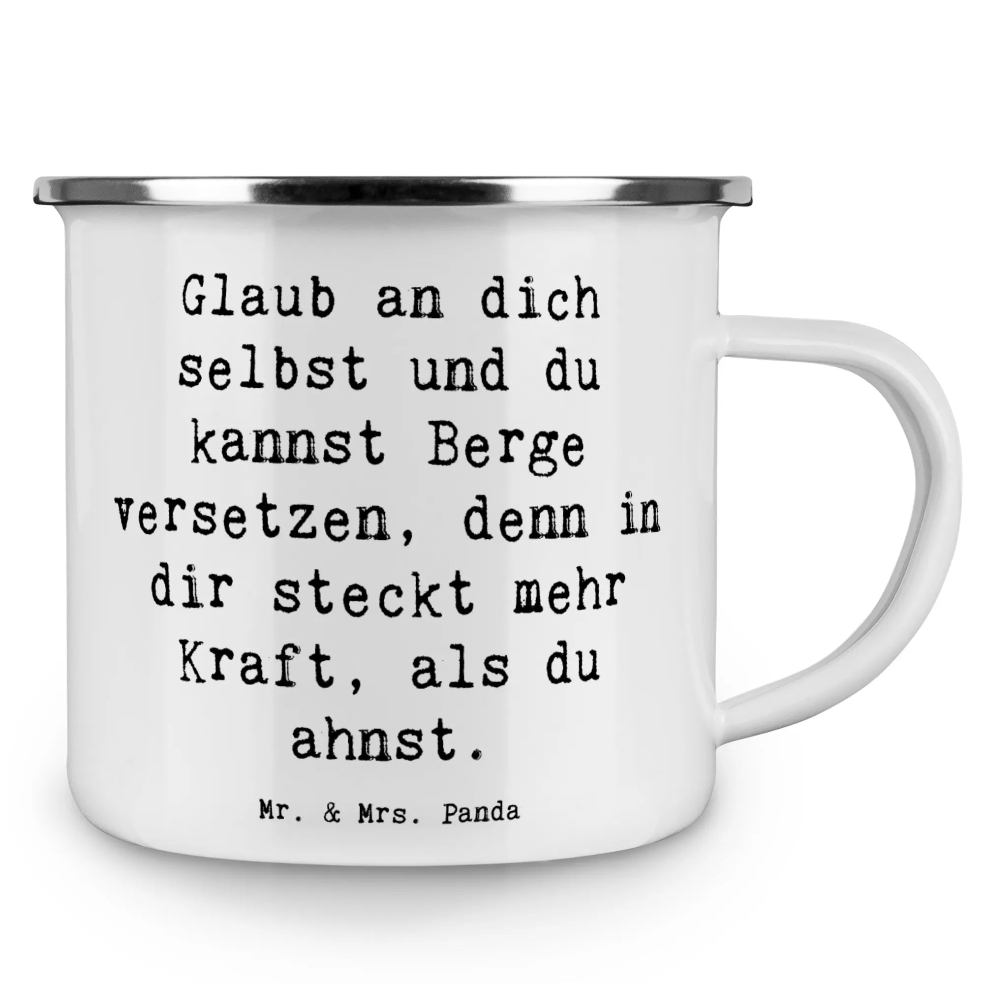 Enamel camping mug Saying Glaub an dich selbst und du kannst Berge versetzen, denn in dir steckt mehr Kraft, als du ahnst.