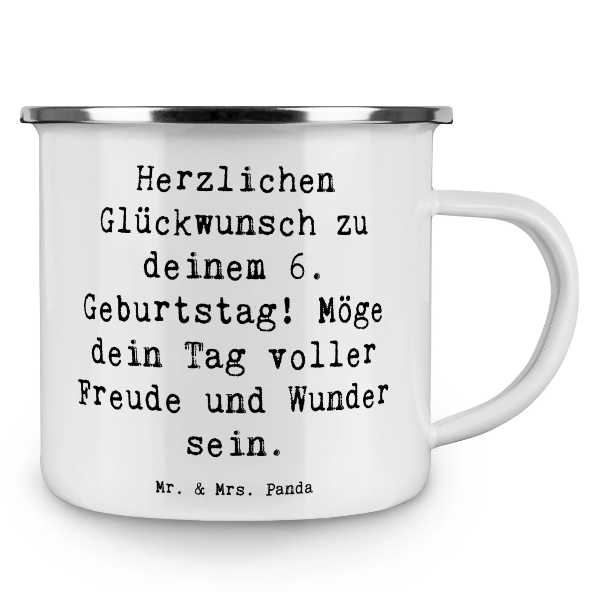 Enamel camping mug Saying Herzlichen Glückwunsch zu deinem 6. Geburtstag! Möge dein Tag voller Freude und Wunder sein.