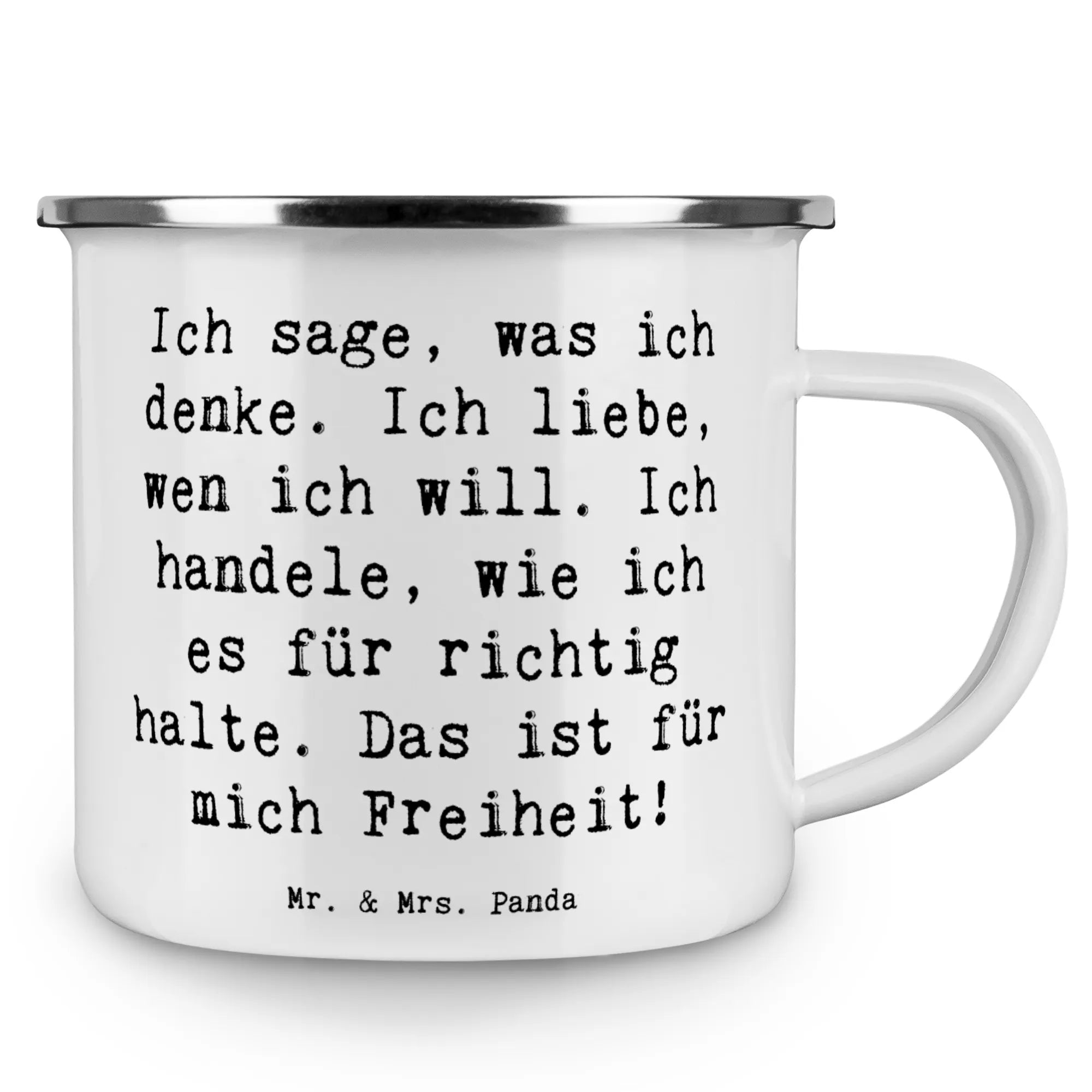 Enamel camping mug Saying Ich sage, was ich denke. Ich liebe, wen ich will. Ich handele, wie ich es für richtig halte. Das ist für mich Freiheit!