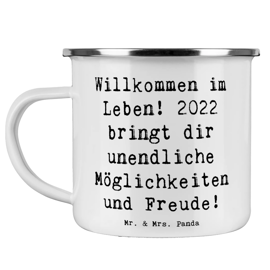 Enamel camping mug Saying Willkommen im Leben! 2022 bringt dir unendliche Möglichkeiten und Freude!