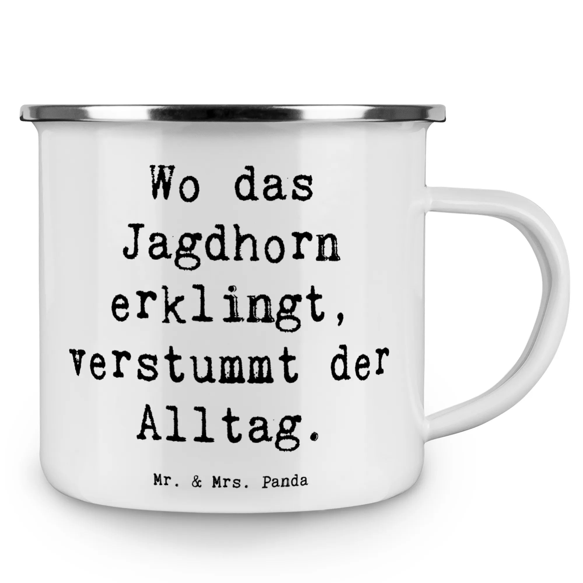 Enamel camping mug Saying Wo das Jagdhorn erklingt, verstummt der Alltag.