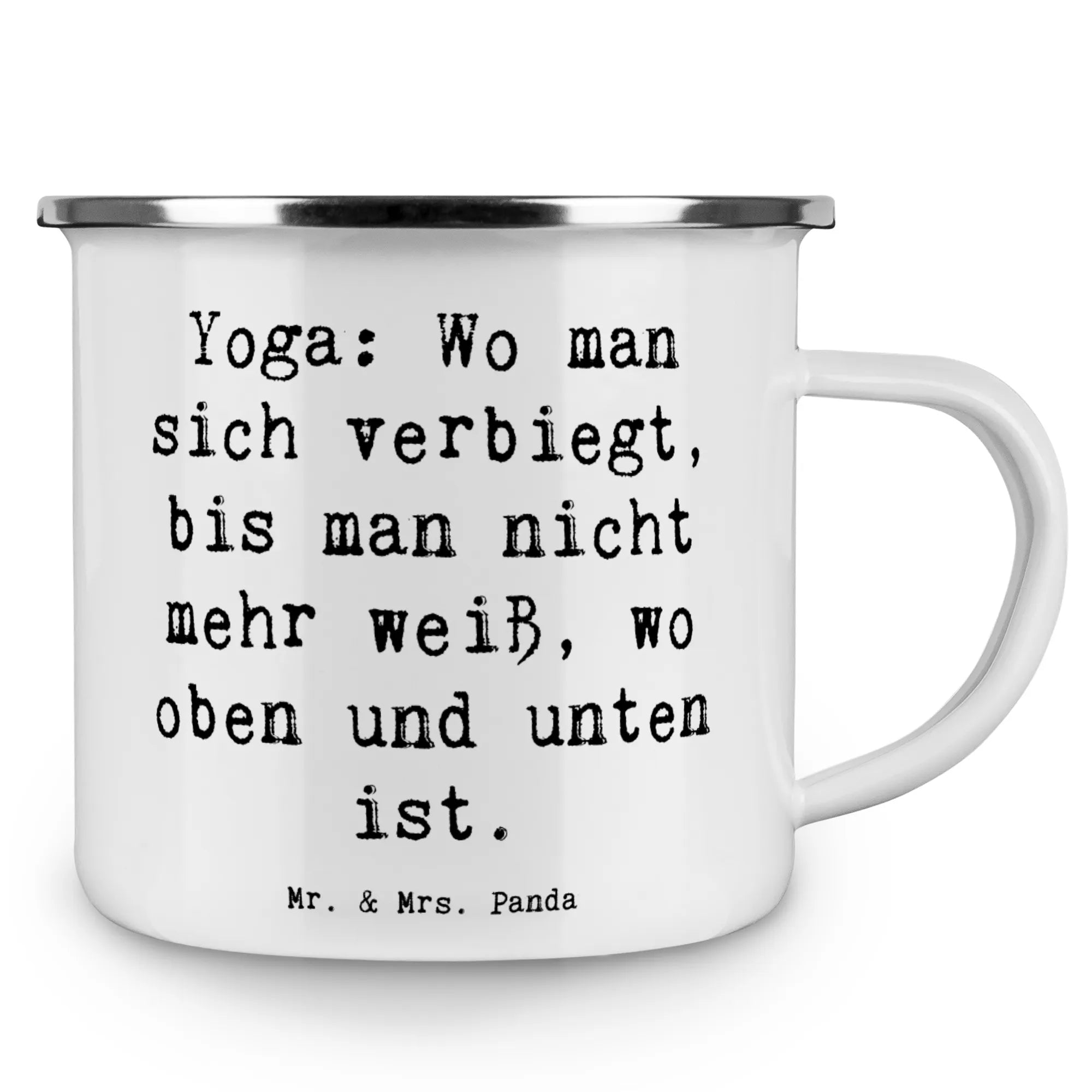 Enamel camping mug Saying Yoga: Wo man sich verbiegt, bis man nicht mehr weiß, wo oben und unten ist.