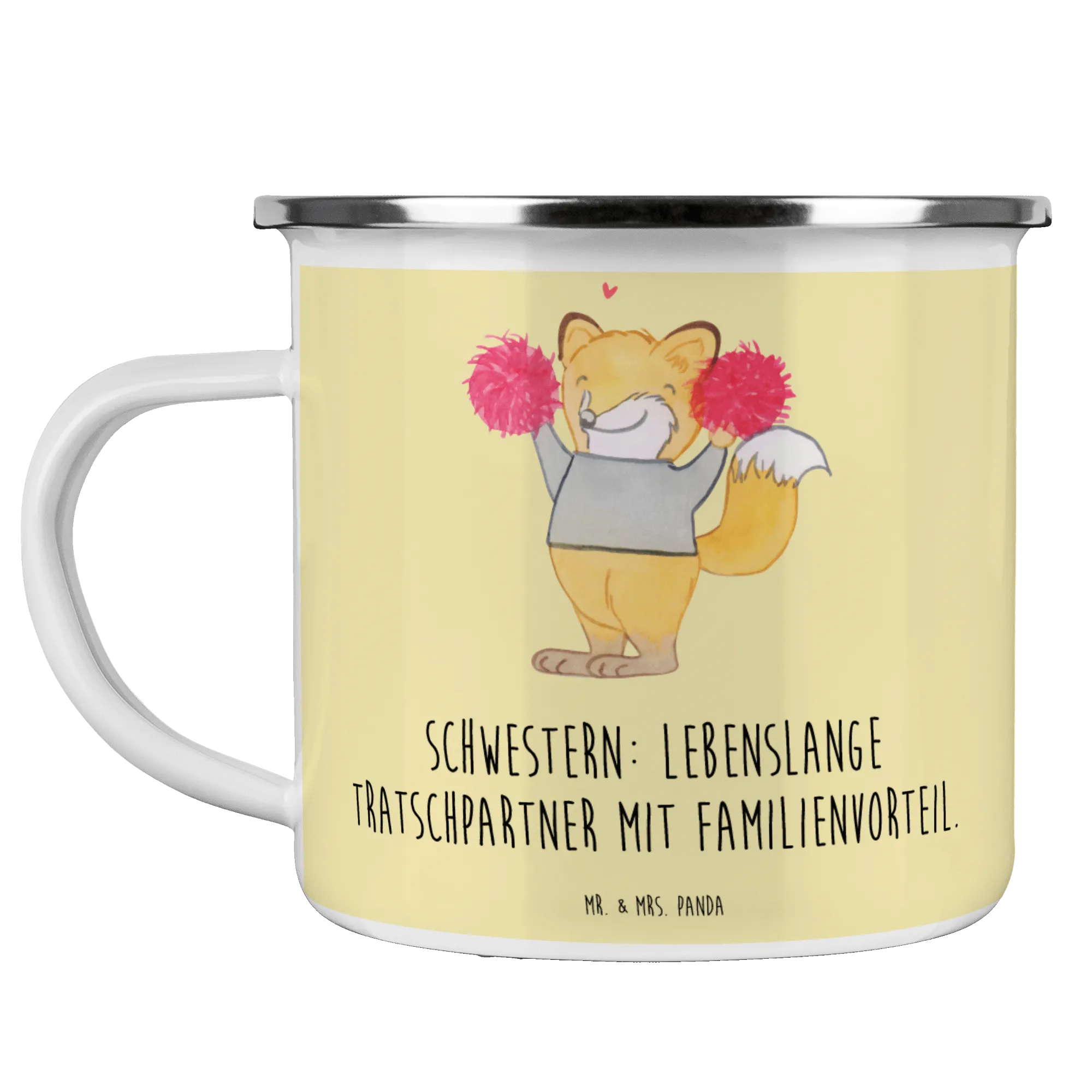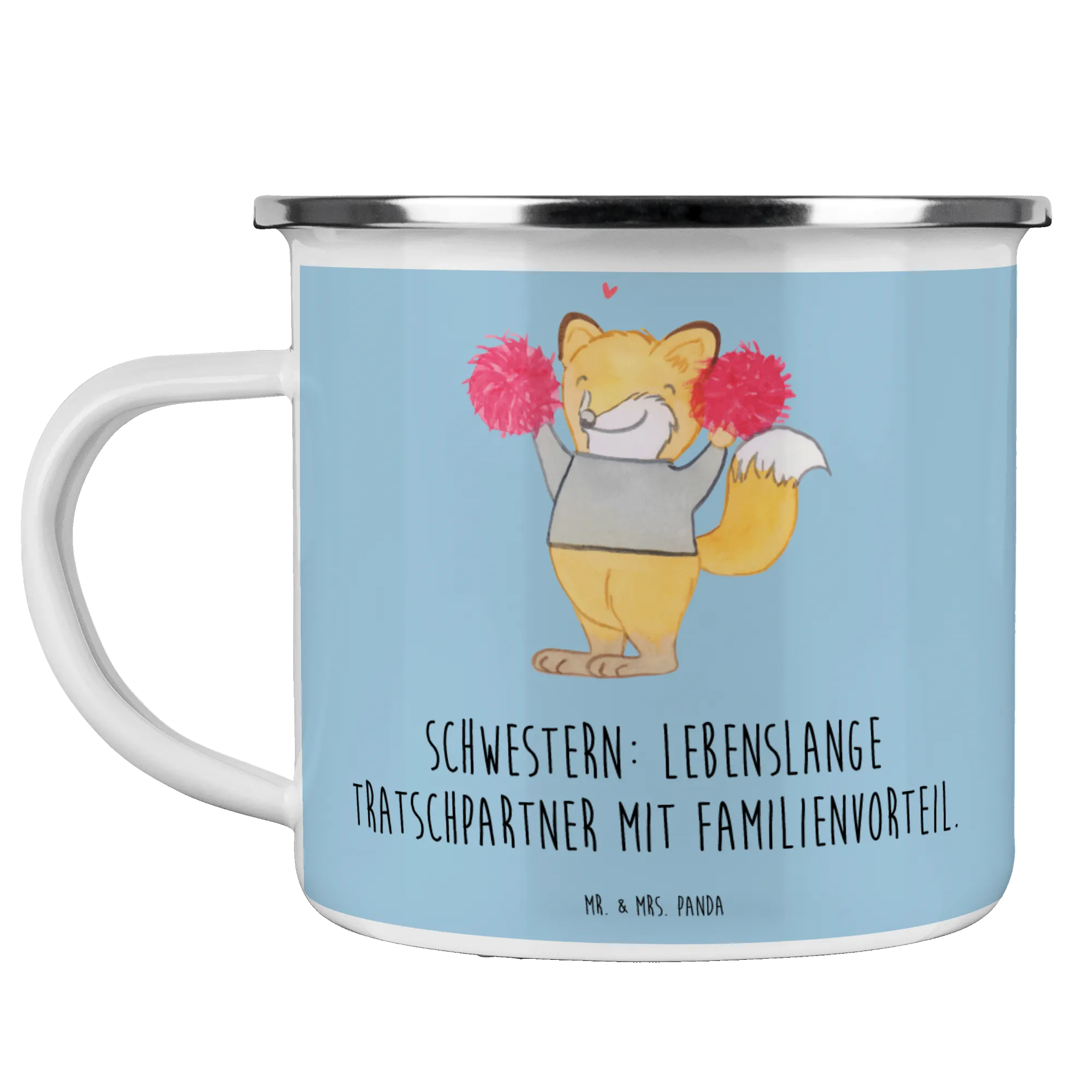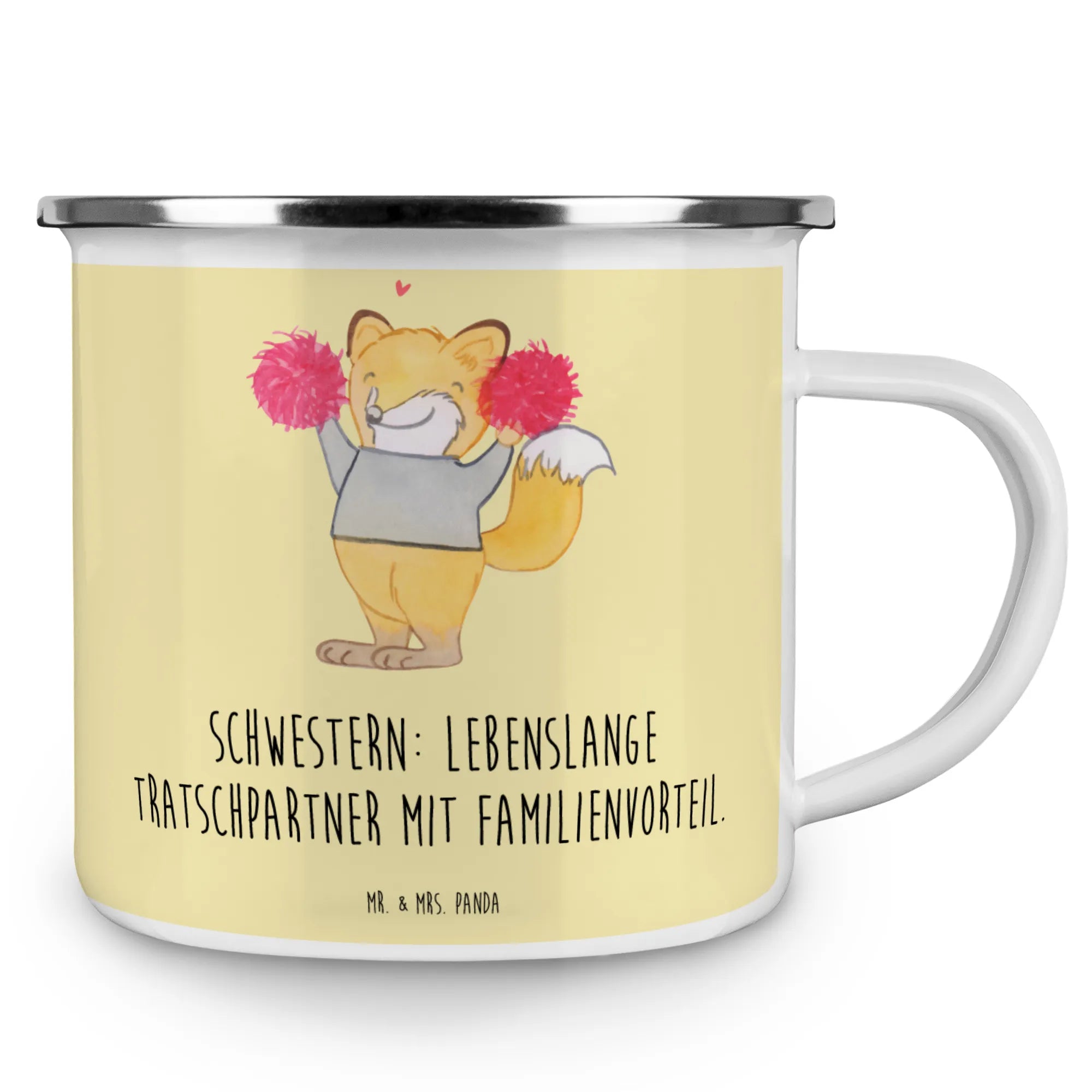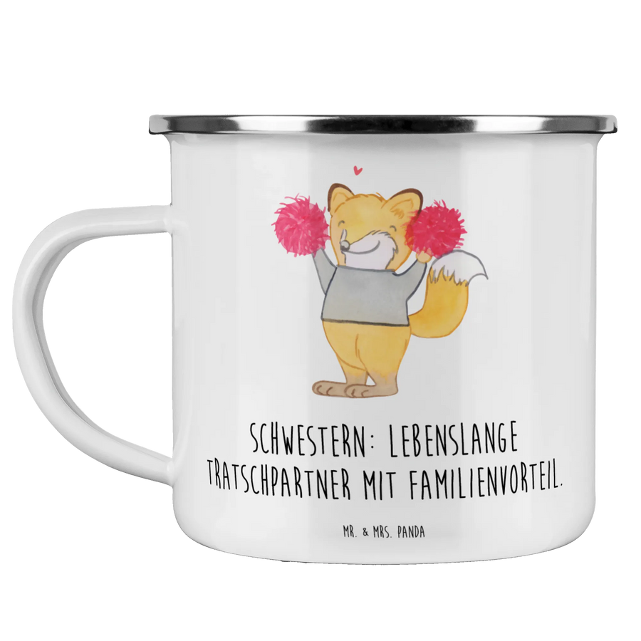 Enamel camping mug Schwestern: Lebenslange Tratschpartner mit Familienvorteil. - White