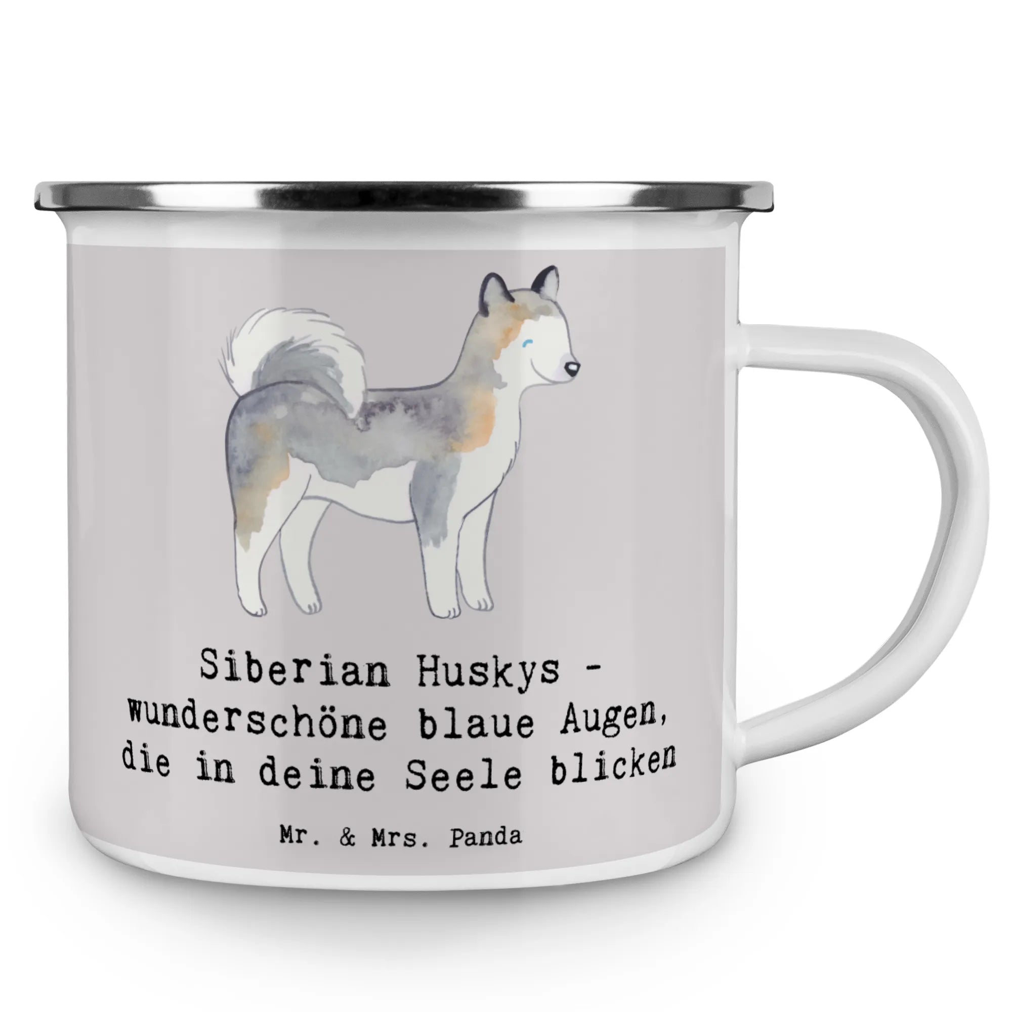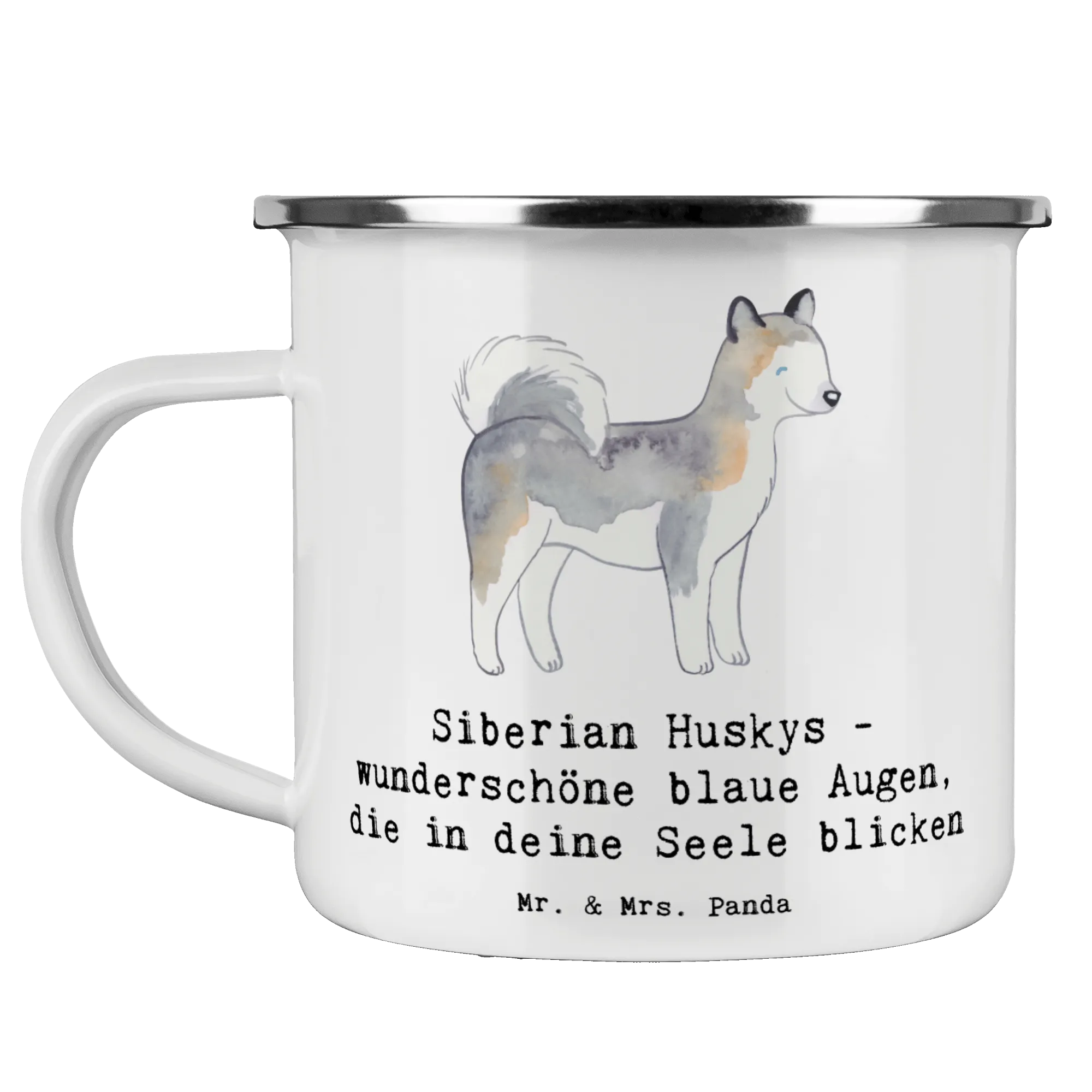 Enamel camping mug Siberian Huskys - wunderschöne blaue Augen, die in deine Seele blicken - White