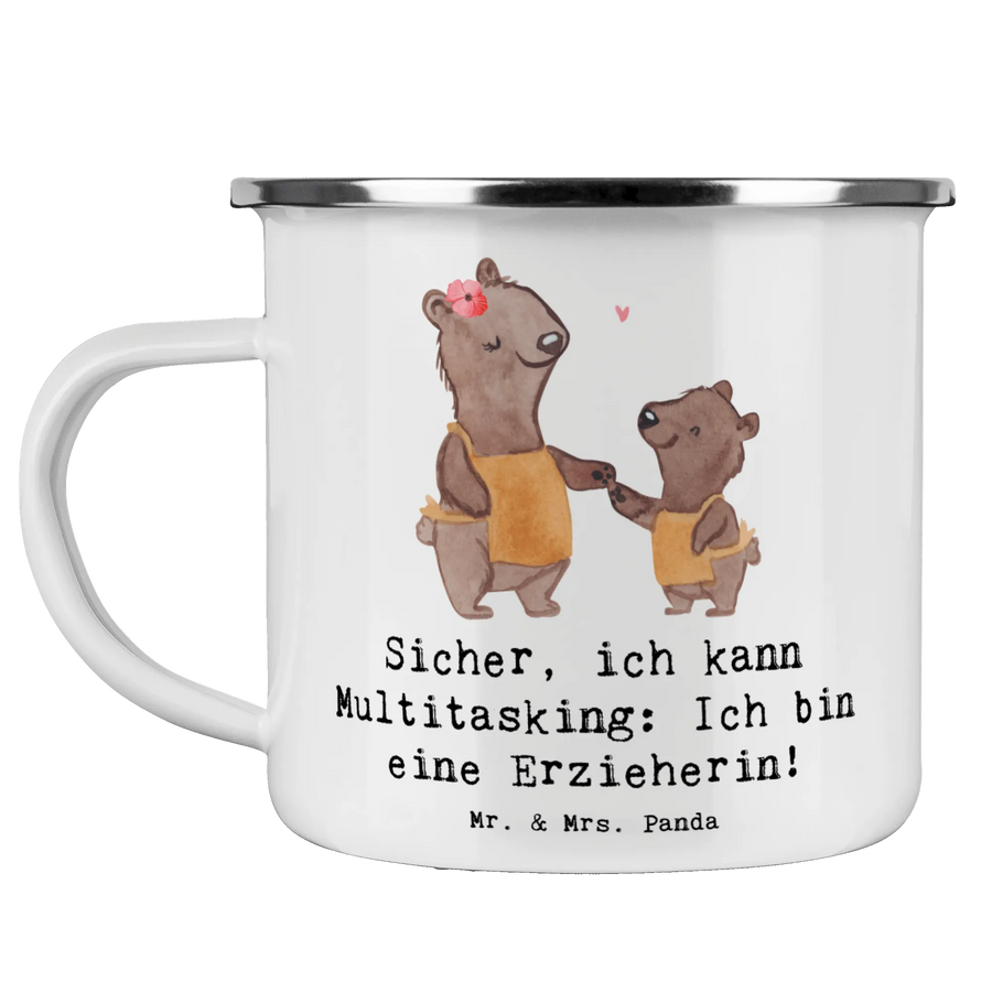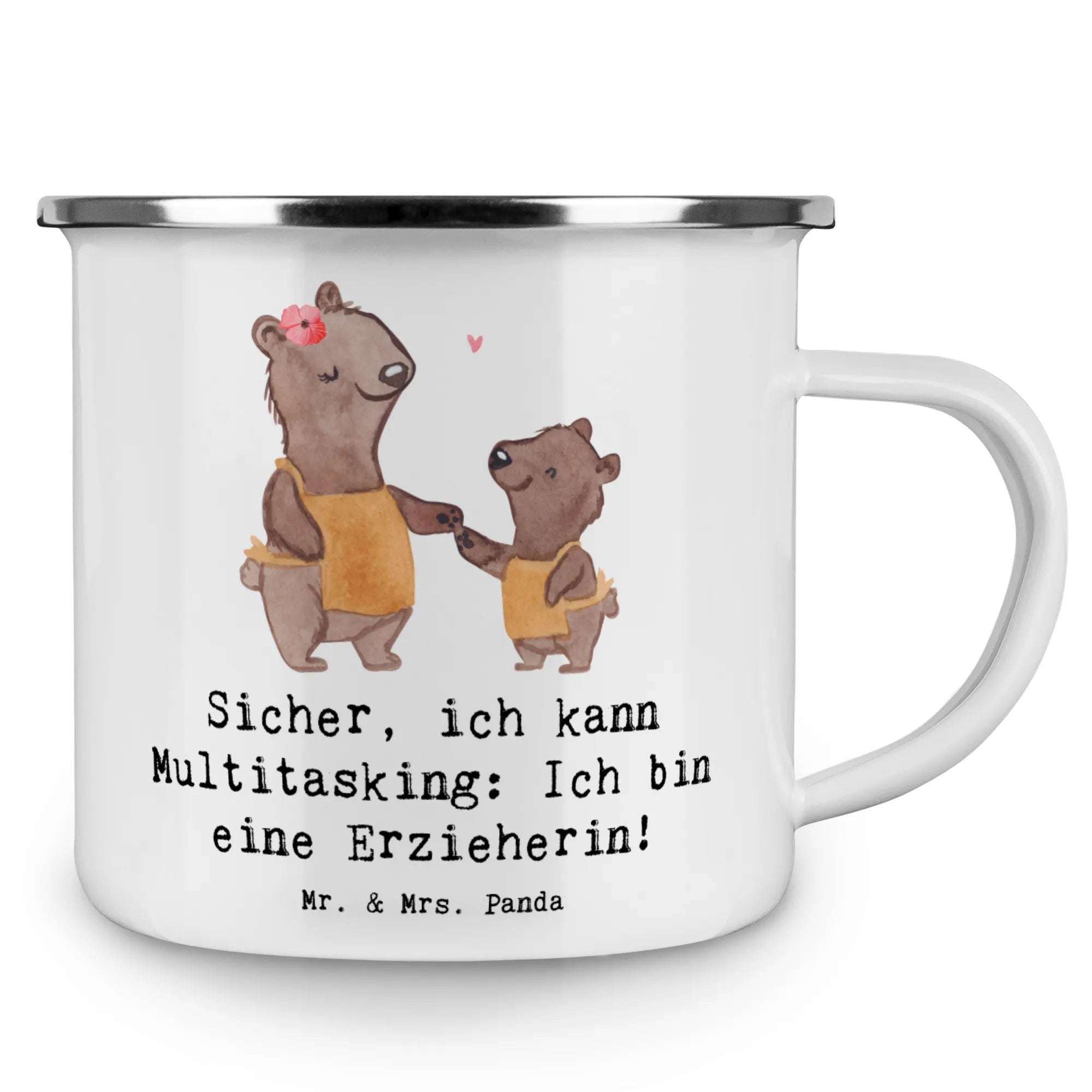 Enamel camping mug Sicher, ich kann Multitasking: Ich bin eine Erzieherin! - White