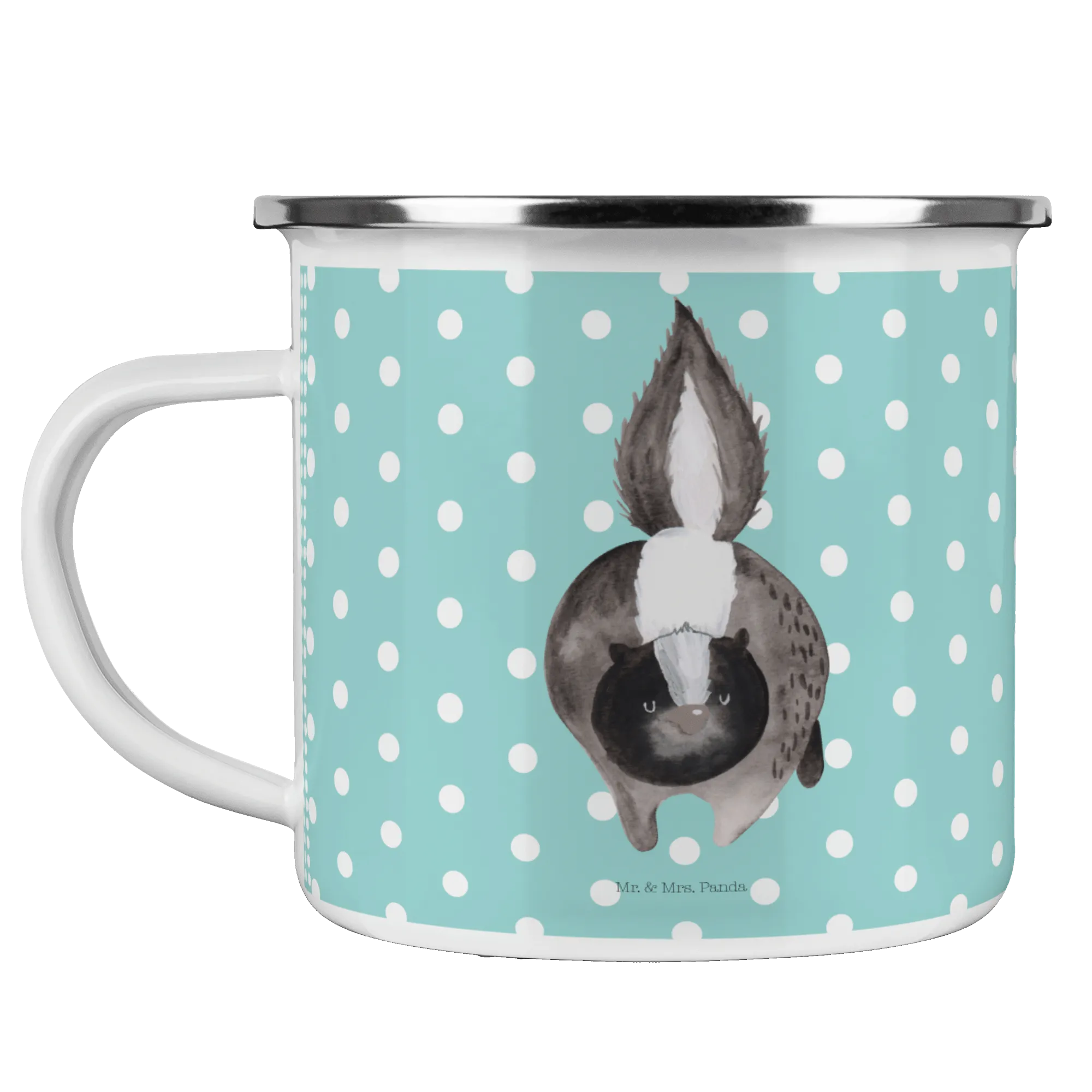 So pack your bags and take this adorable skunk enamel camping mug along on your next adventure! Whether a solo trek into the wild or a backyard family barbecue, you're bound to make an impression. Get ready for countless memories, laughter, and, of course, delicious drinks with the charming skunk mug from Mr. & Mrs. Panda! ☕️🐾