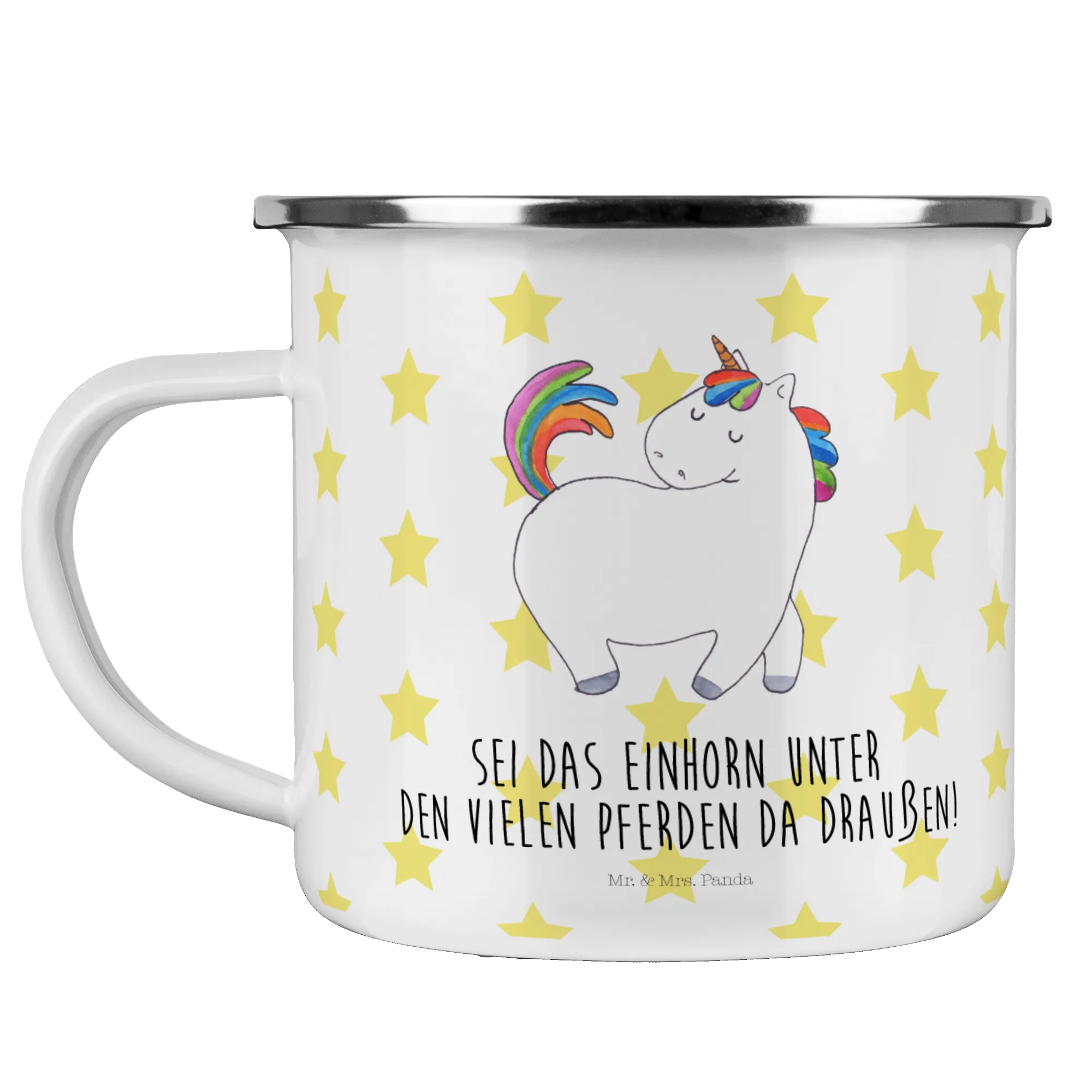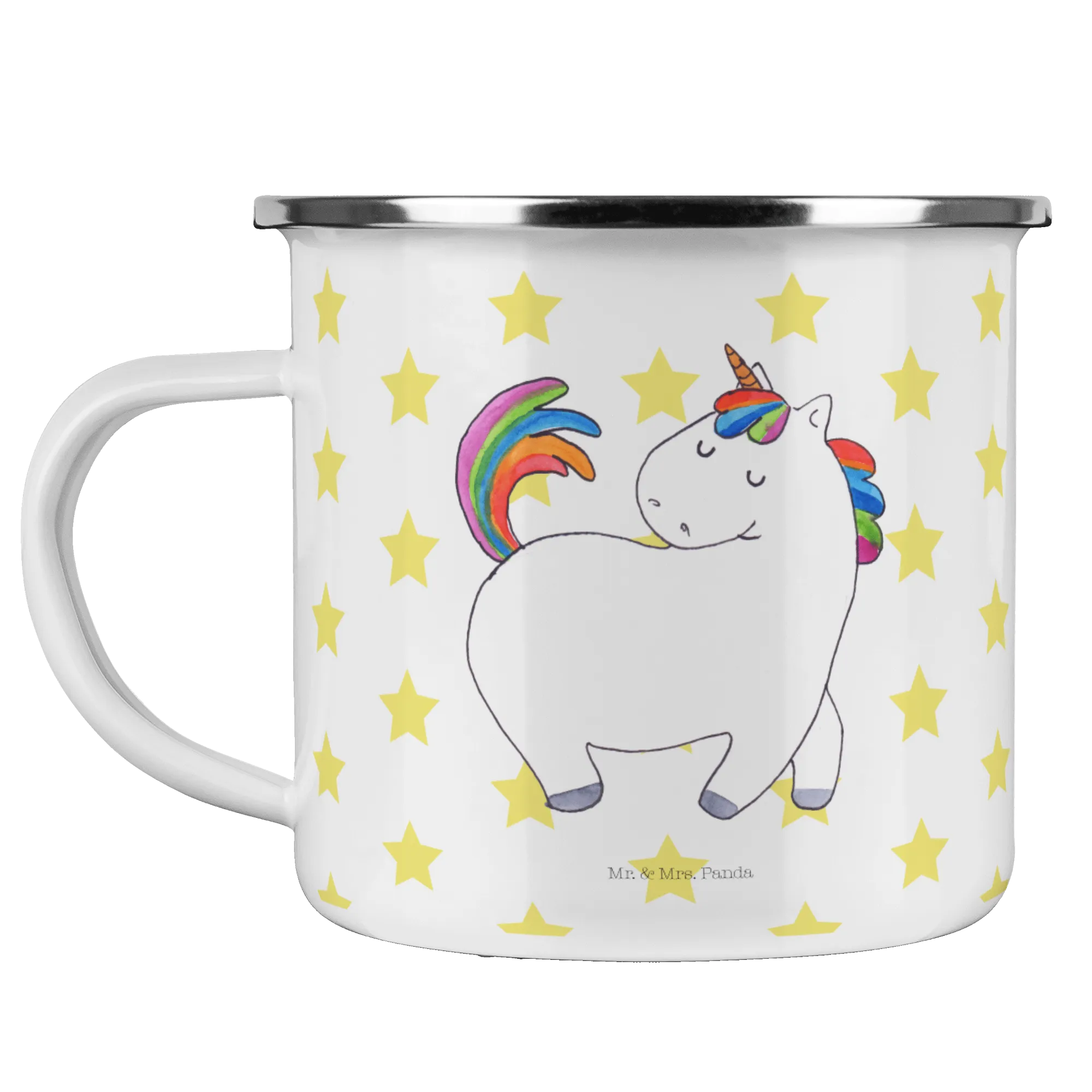 Introducing the adorable Unicorn Strutting Enamel Camping Mug from Mr. & Mrs. Panda! This beautifully crafted enamel mug is not just any ordinary camping mug; it's designed for those who dare to be different and embrace their unique spirit. With its sweet unicorn motif, it’s perfect for all unicorn lovers, equestrians, and anyone who enjoys the great outdoors while sipping their favorite beverage.