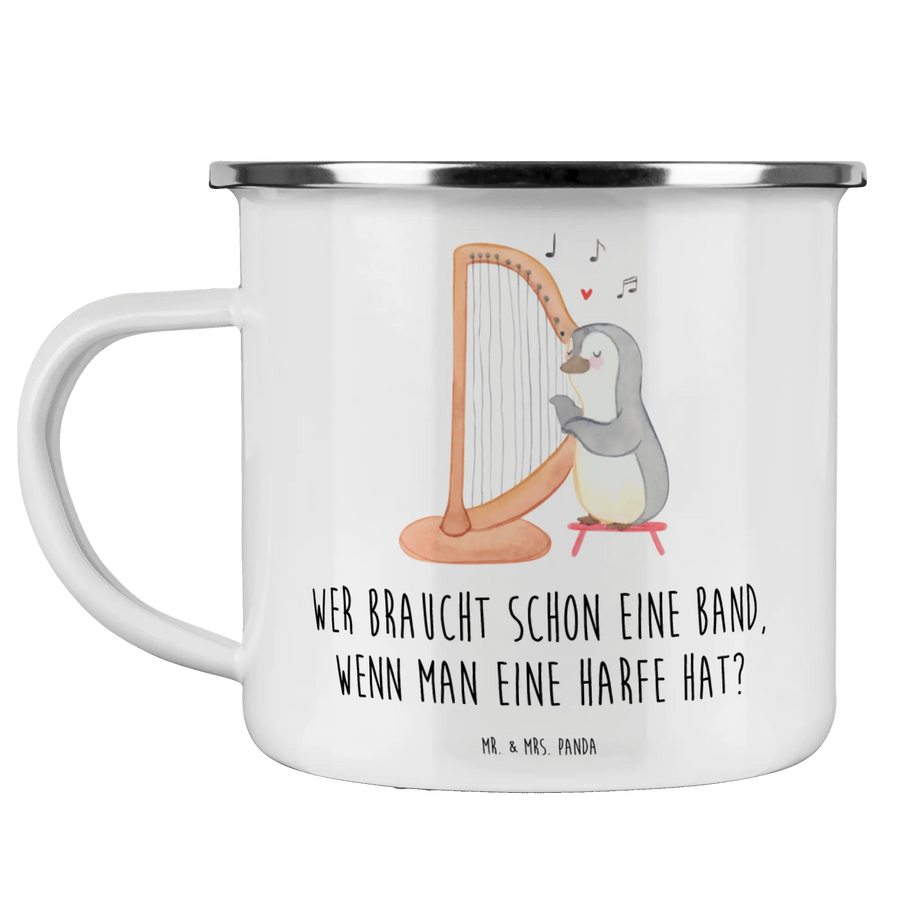 Enamel camping mug Wer braucht schon eine Band, wenn man eine Harfe hat?