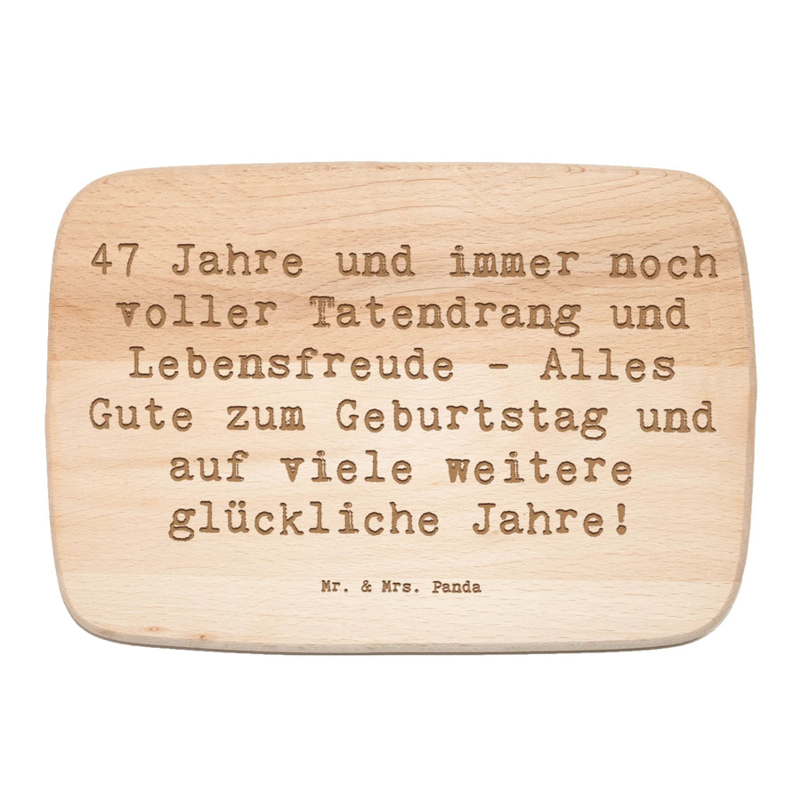 Das Frühstücksbrett für den 47. Geburtstag von Mr. & Mrs. Panda ist das perfekte Geschenk für all jene, die das Leben in vollen Zügen genießen! Mit dem liebevollen Slogan "47 Jahre und immer noch voller Tatendrang und Lebensfreude - Alles Gute zum Geburtstag und auf viele weitere glückliche Jahre!" strahlt dieses hochwertige Holzbrett eine positive Energie aus, die jeden Morgen zu etwas Besonderem macht.