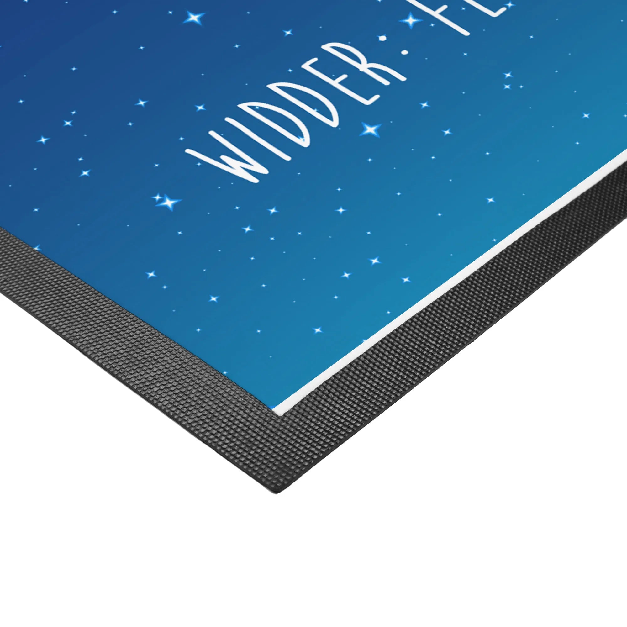 Die gummierte Rückseite gewährleistet, dass die Matte auch bei nassen Wetterbedingungen an Ort und Stelle bleibt. So kannst du sicher sein, dass sie rutschfest ist und ein Ausfransen verhindert wird. Diese Schmutzmatte eignet sich hervorragend als Geburtstagsgeschenk oder als kleines Mitbringsel für die nächste Feier.