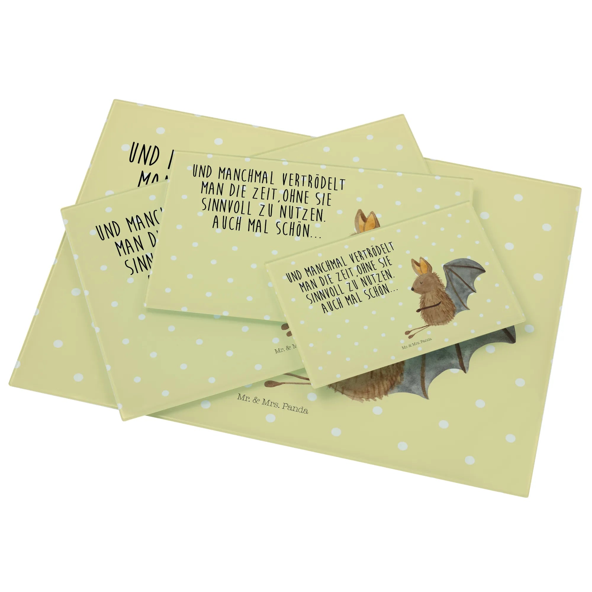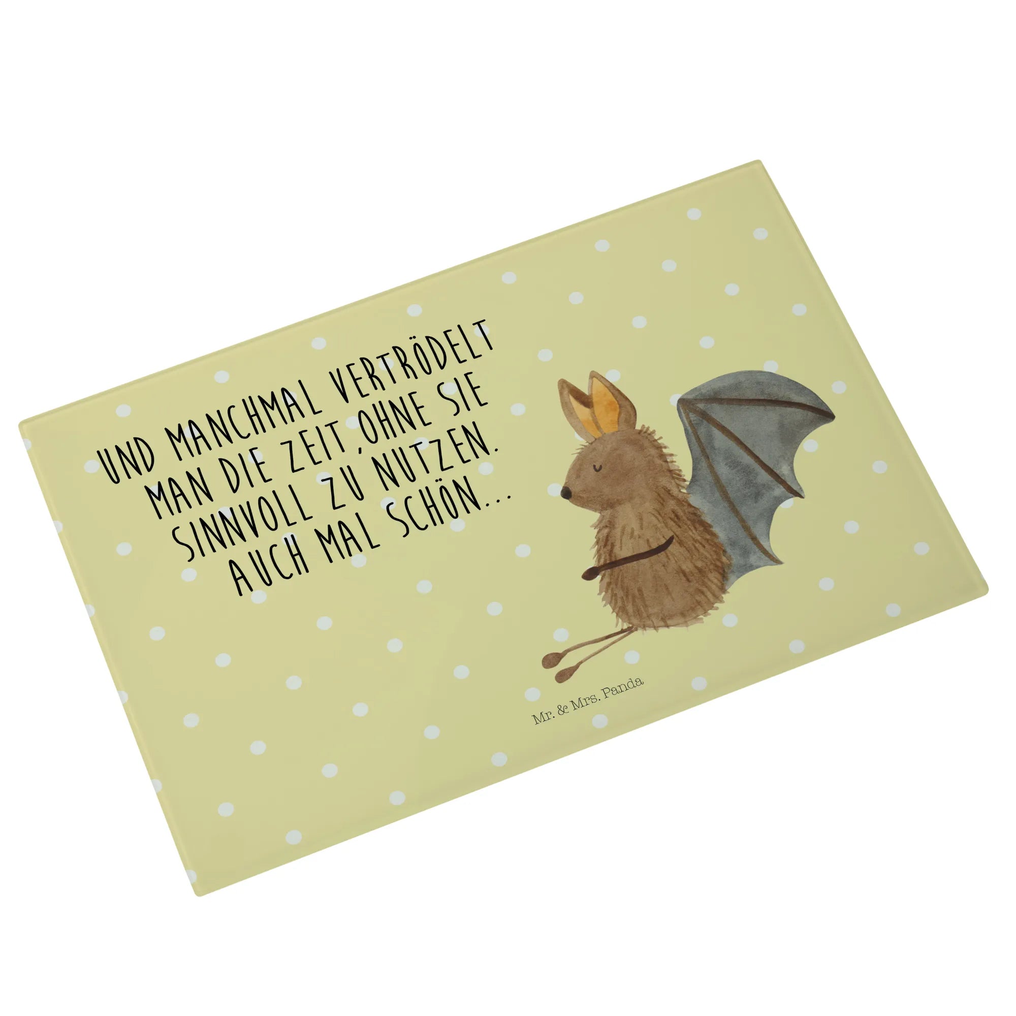 Crafted from premium, scratch-resistant glass, our board is designed to withstand everyday kitchen use while maintaining its beauty. The Sitting Bat motif showcases a cute, hand-drawn bat that is sure to bring a smile to your face every time you step into the kitchen. This little creature reminds us all to take a moment to relax and enjoy life—because sometimes, you just need to while away a few hours doing nothing.