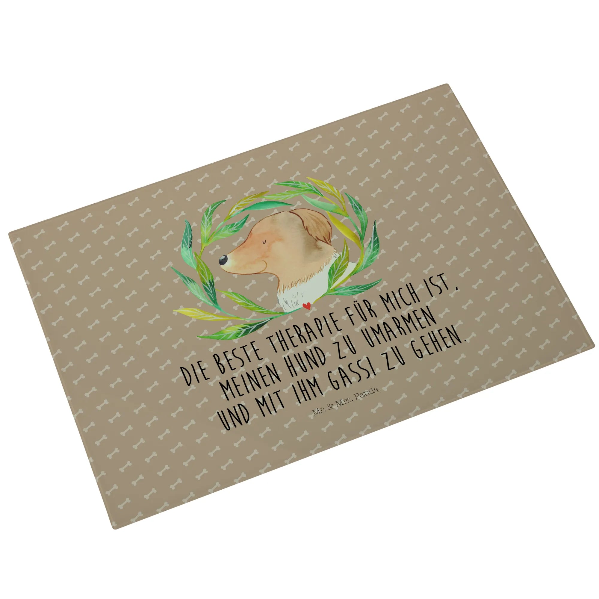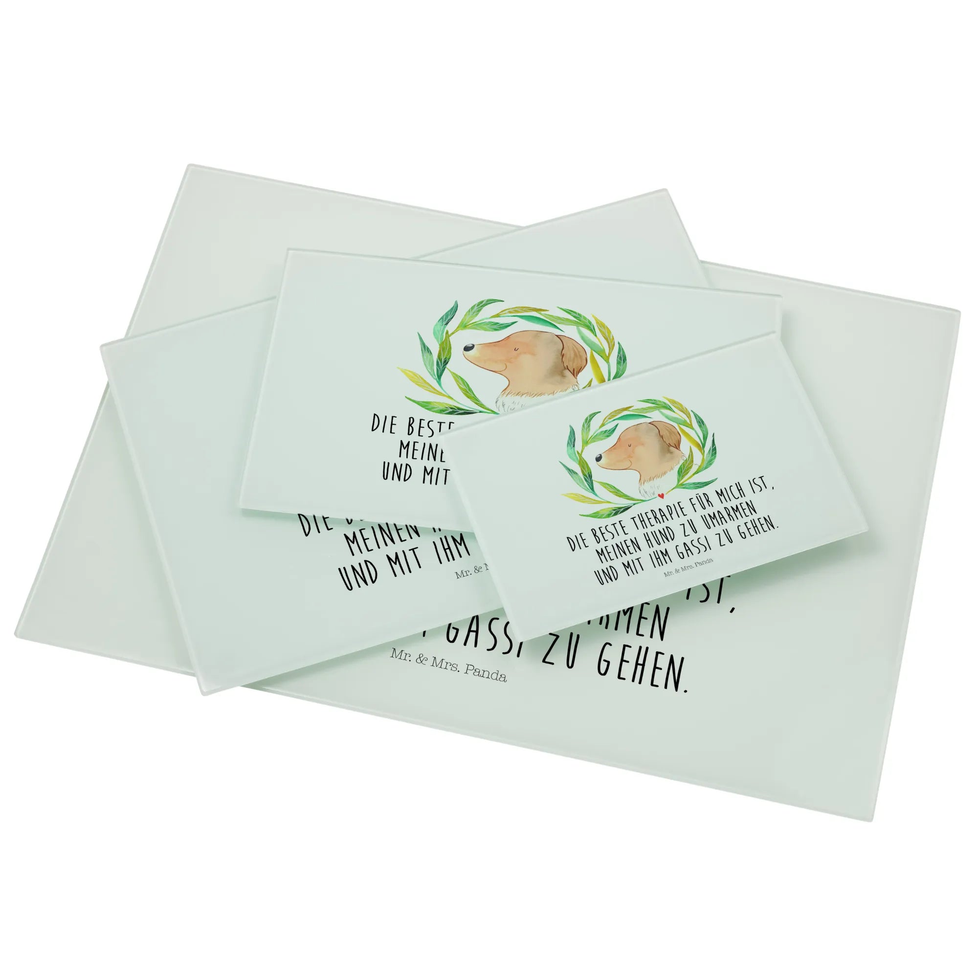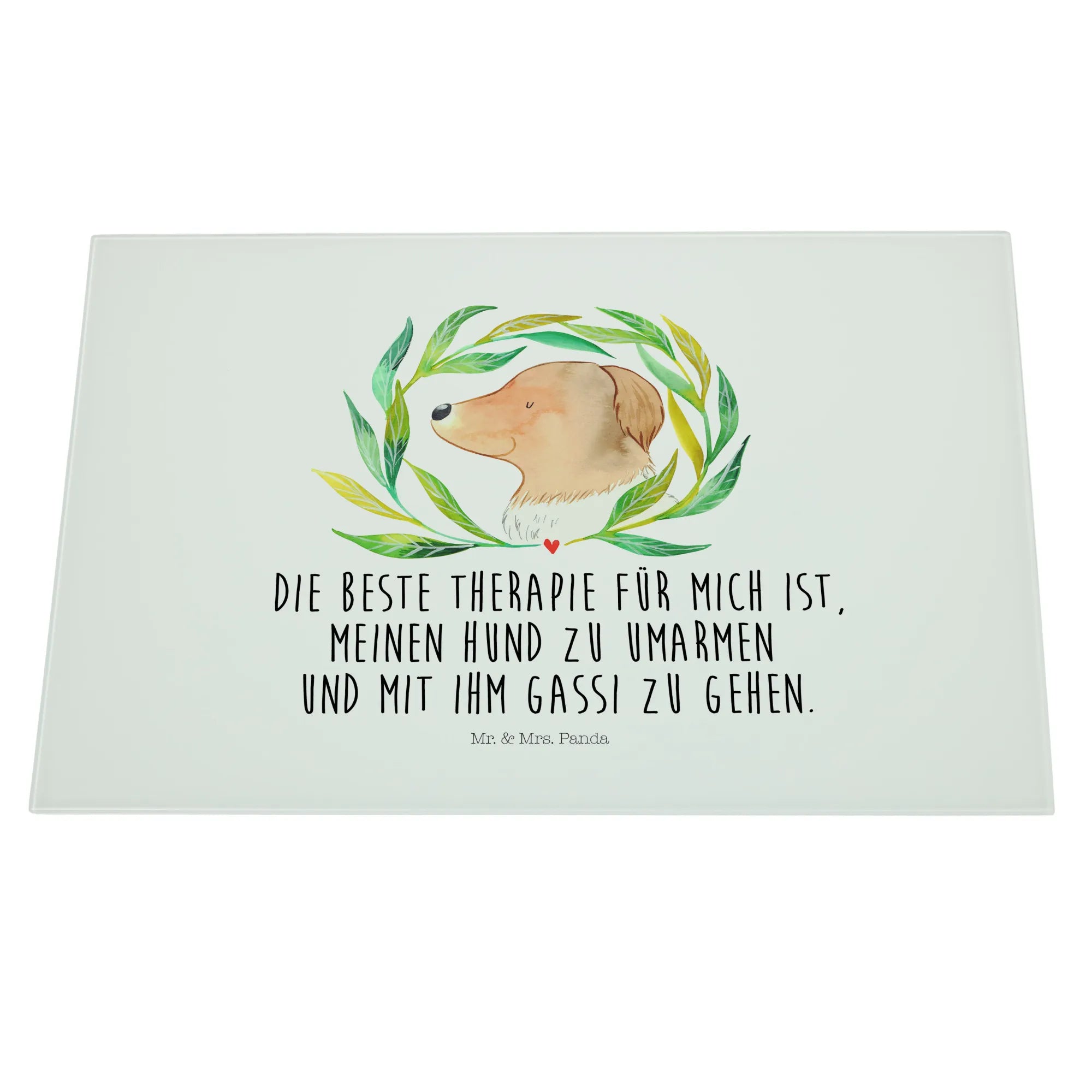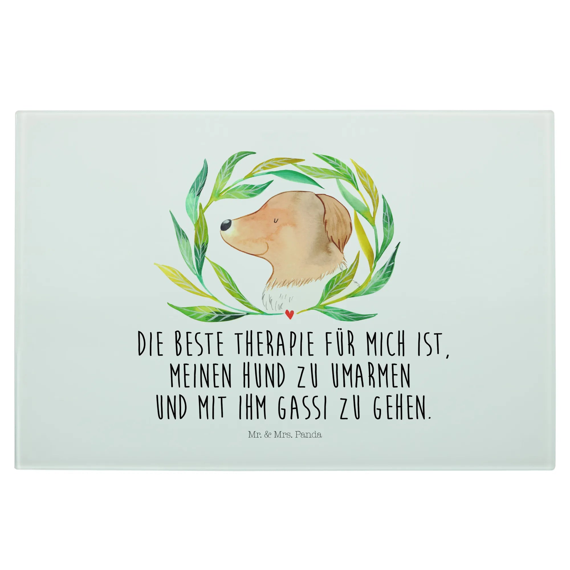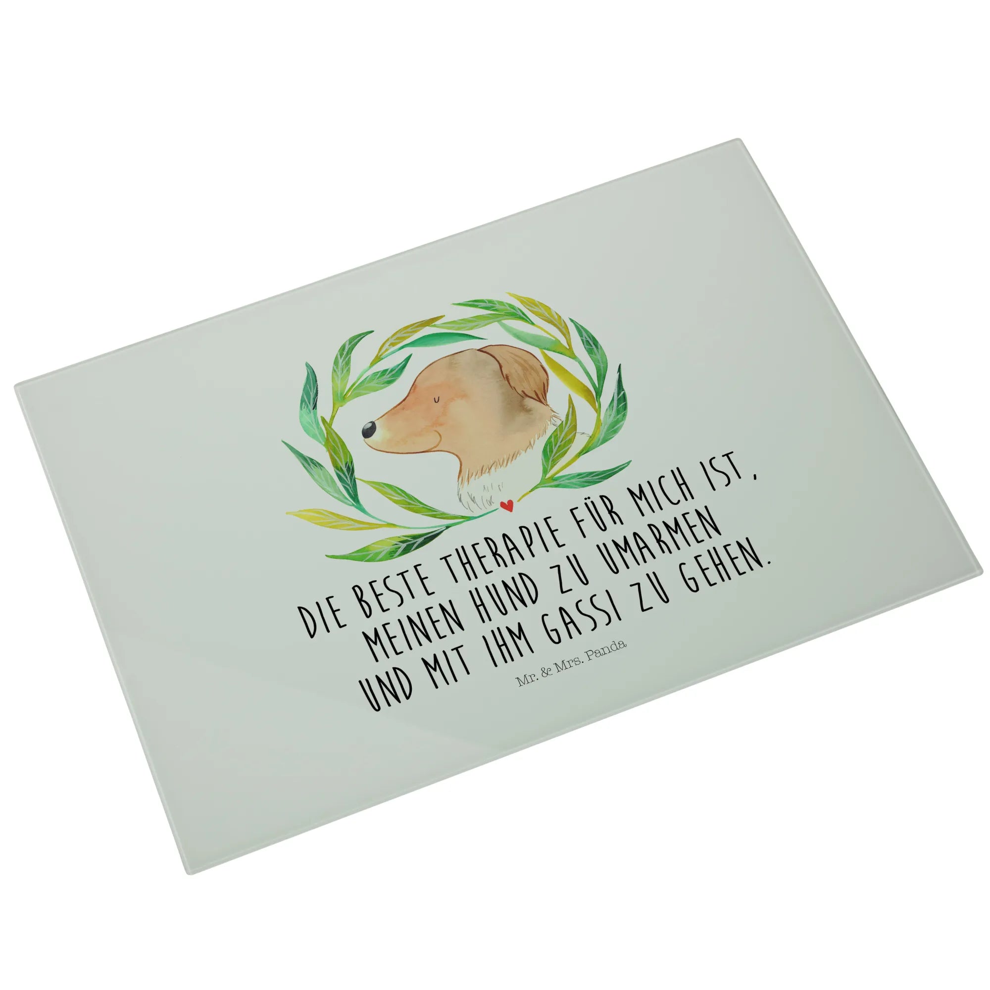 Glass chopping board Dog Flower - Medium Glas Schneidbrett - with saying - White