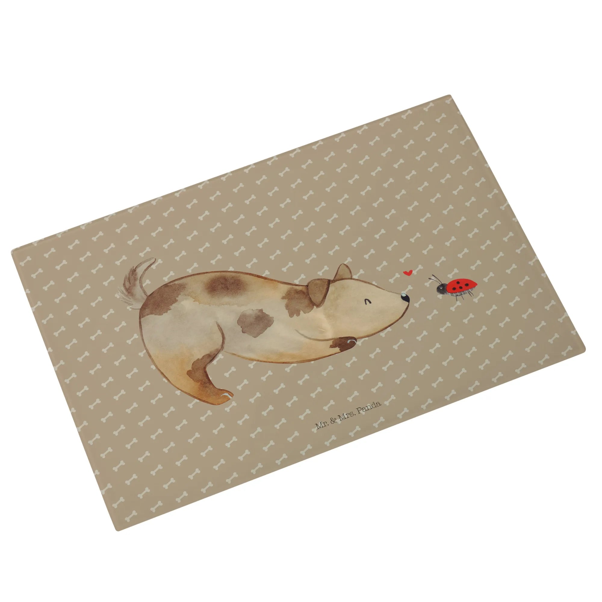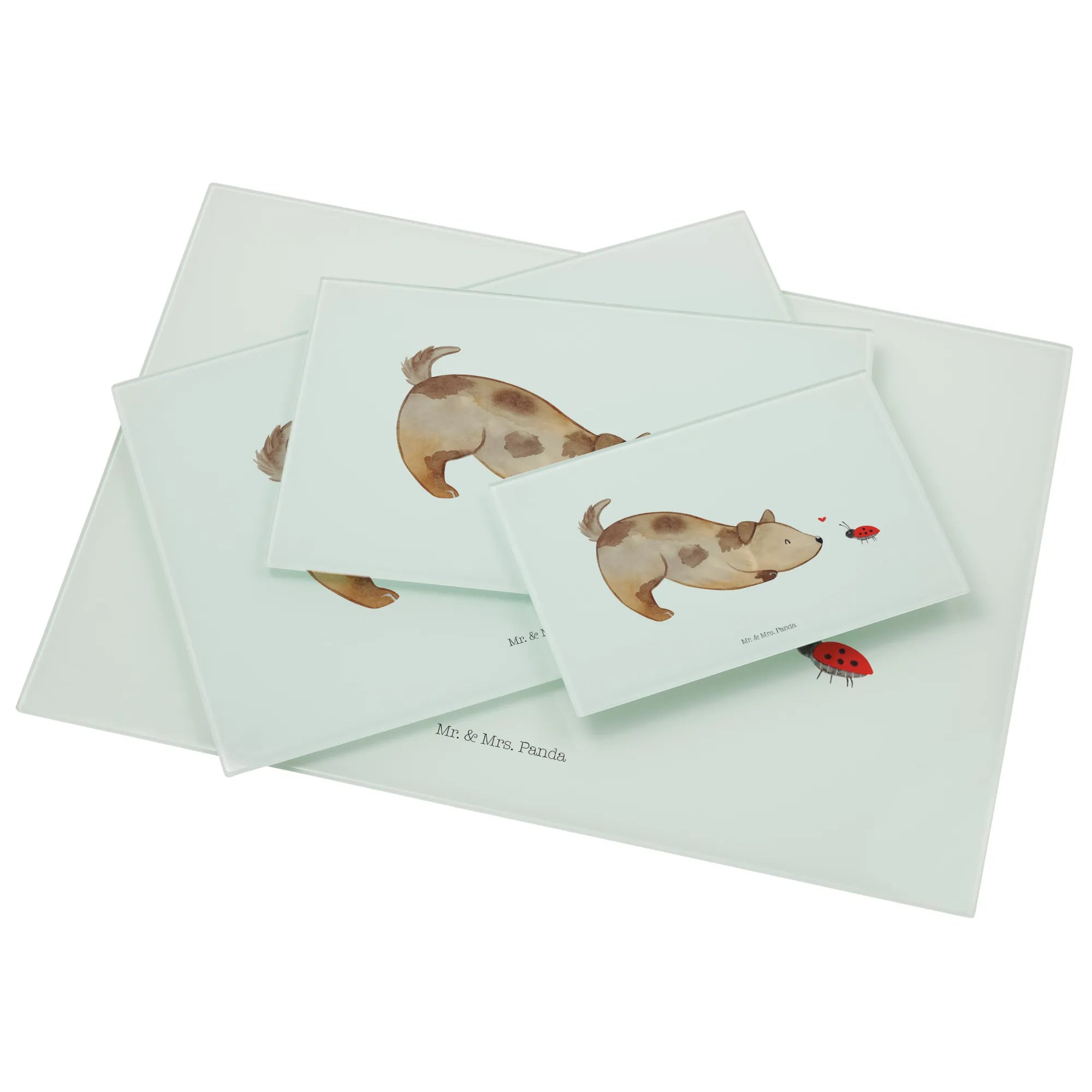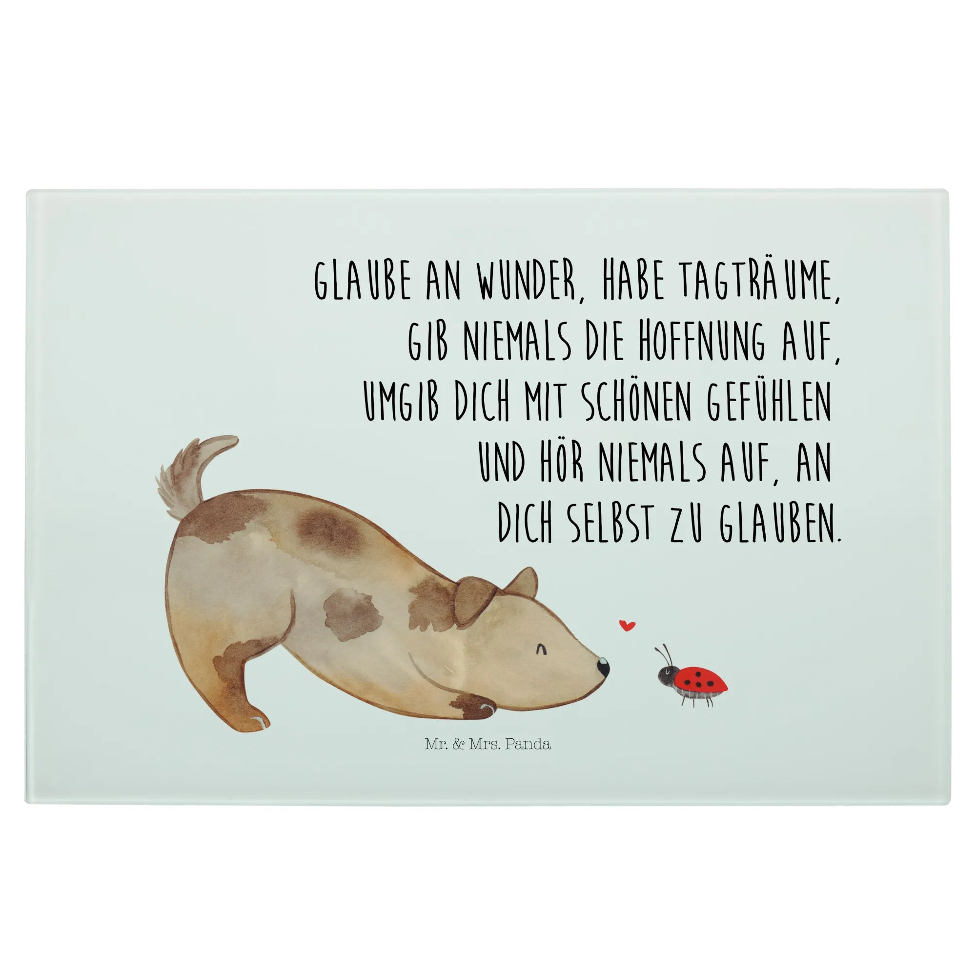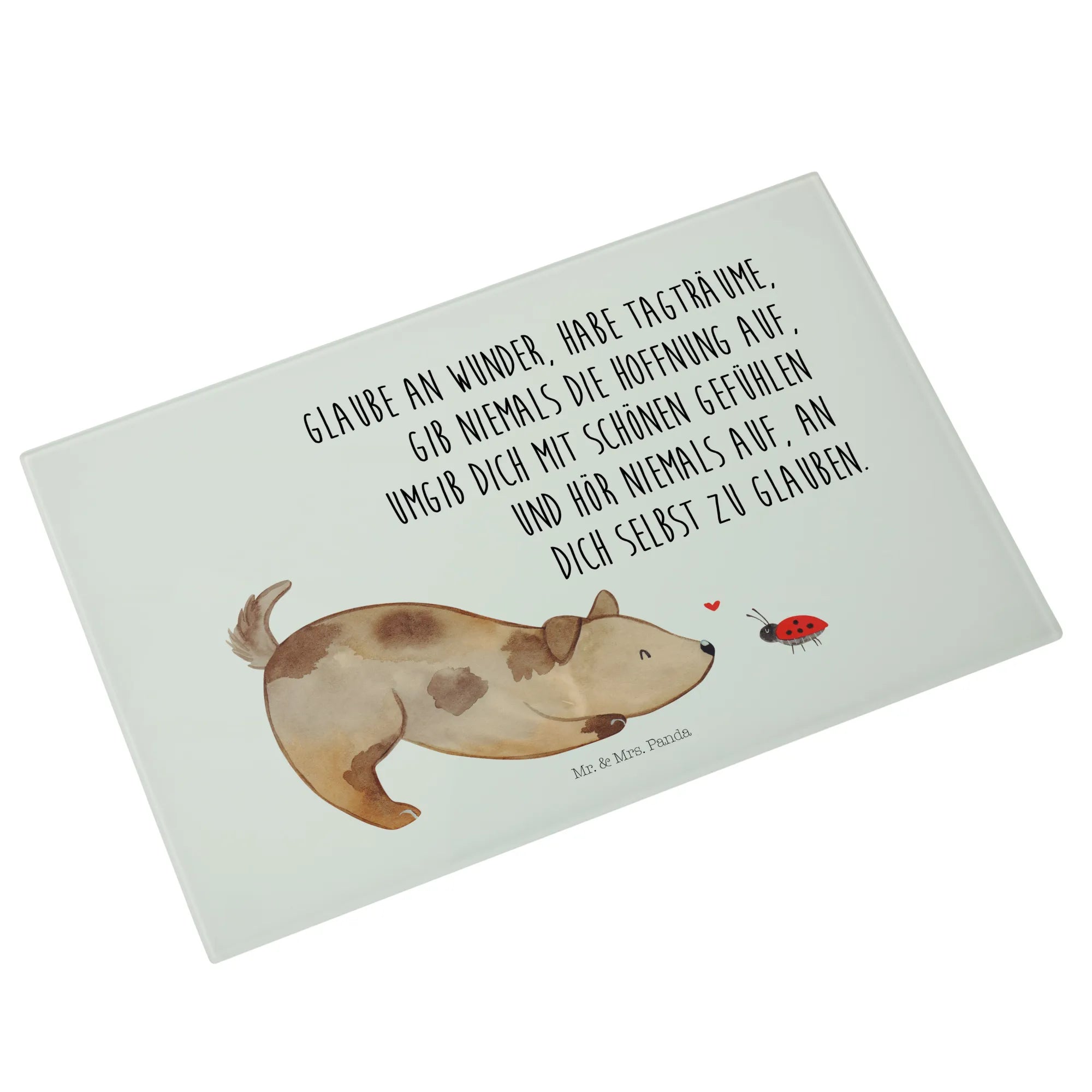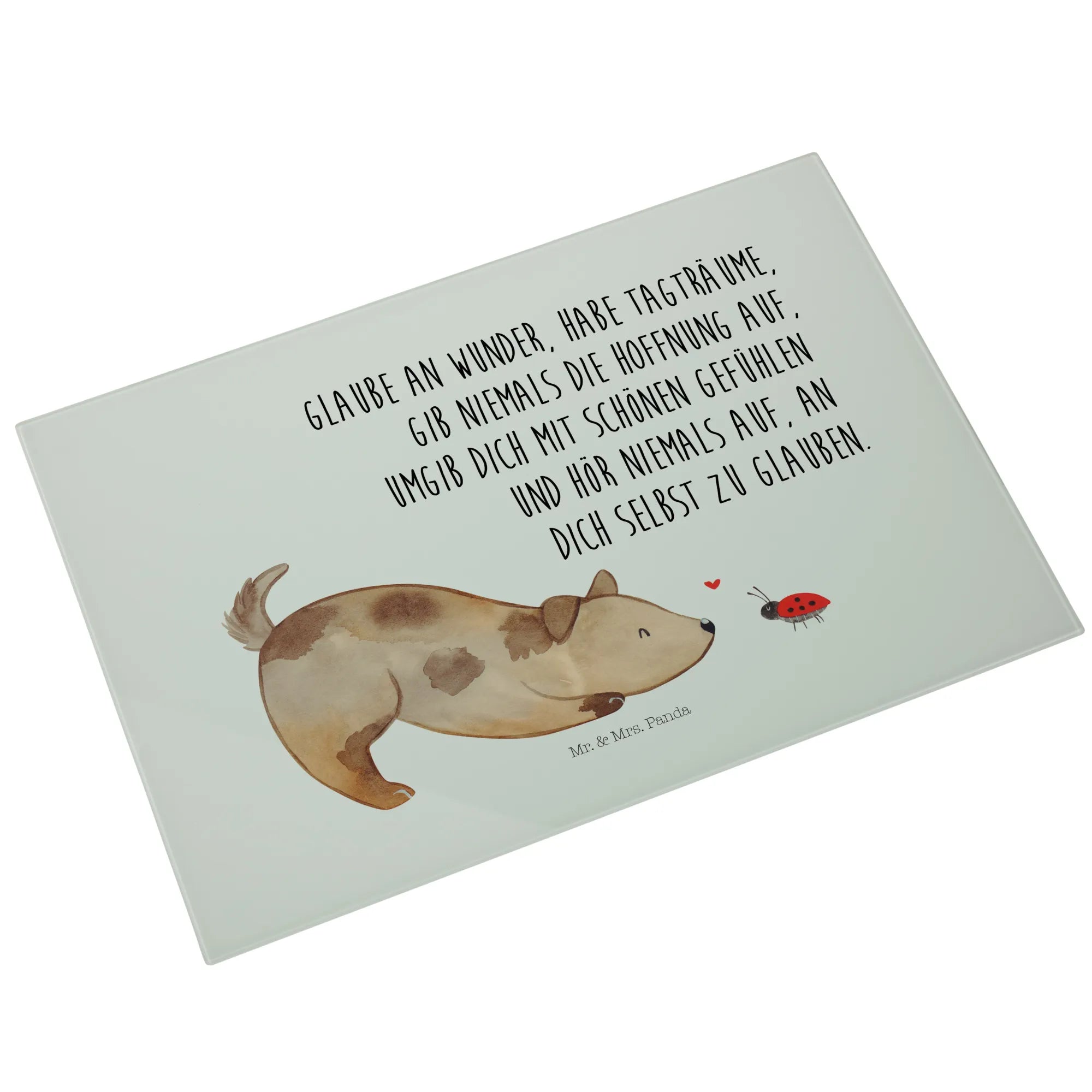 Glass chopping board Dog ladybug - Medium Glas Schneidbrett - with saying - White