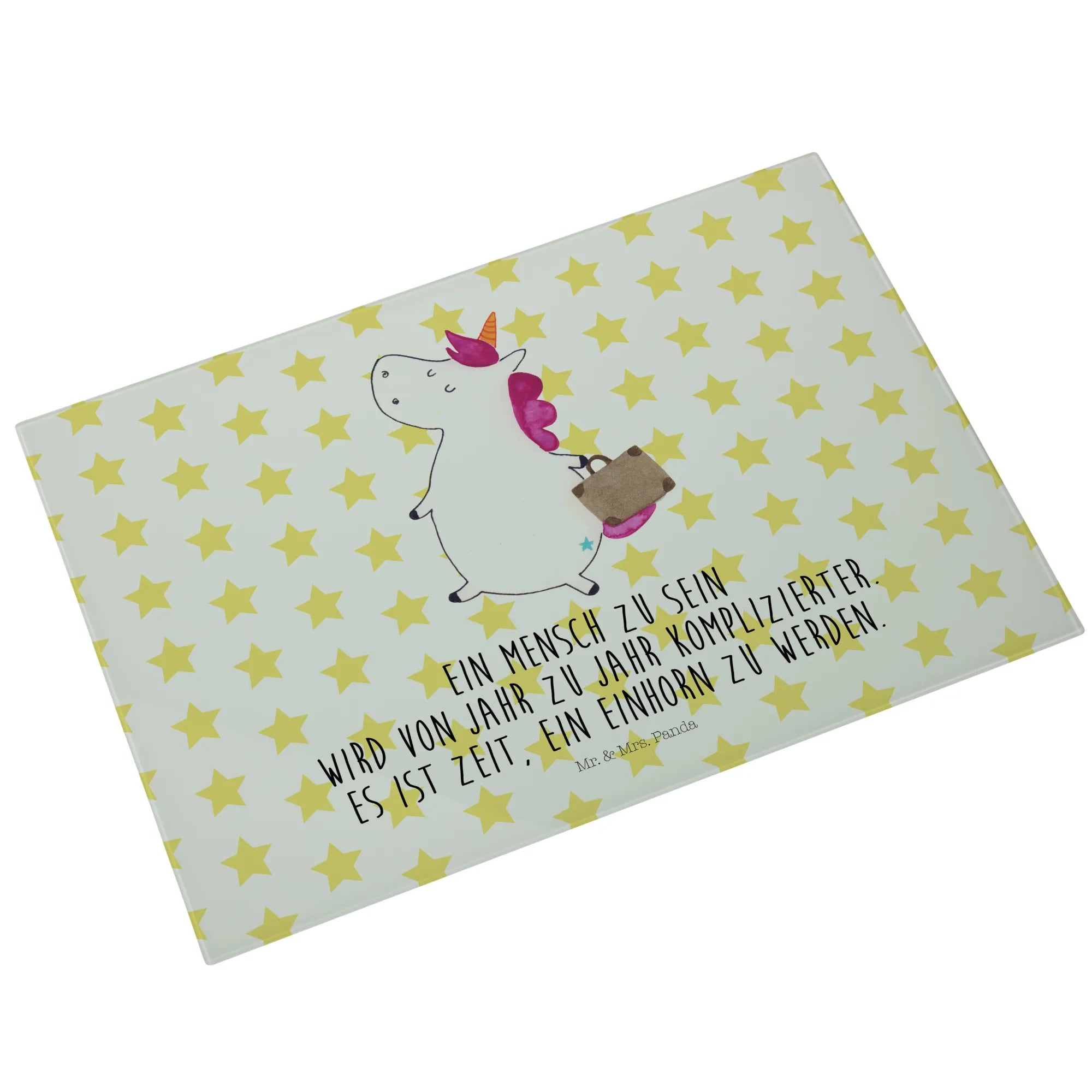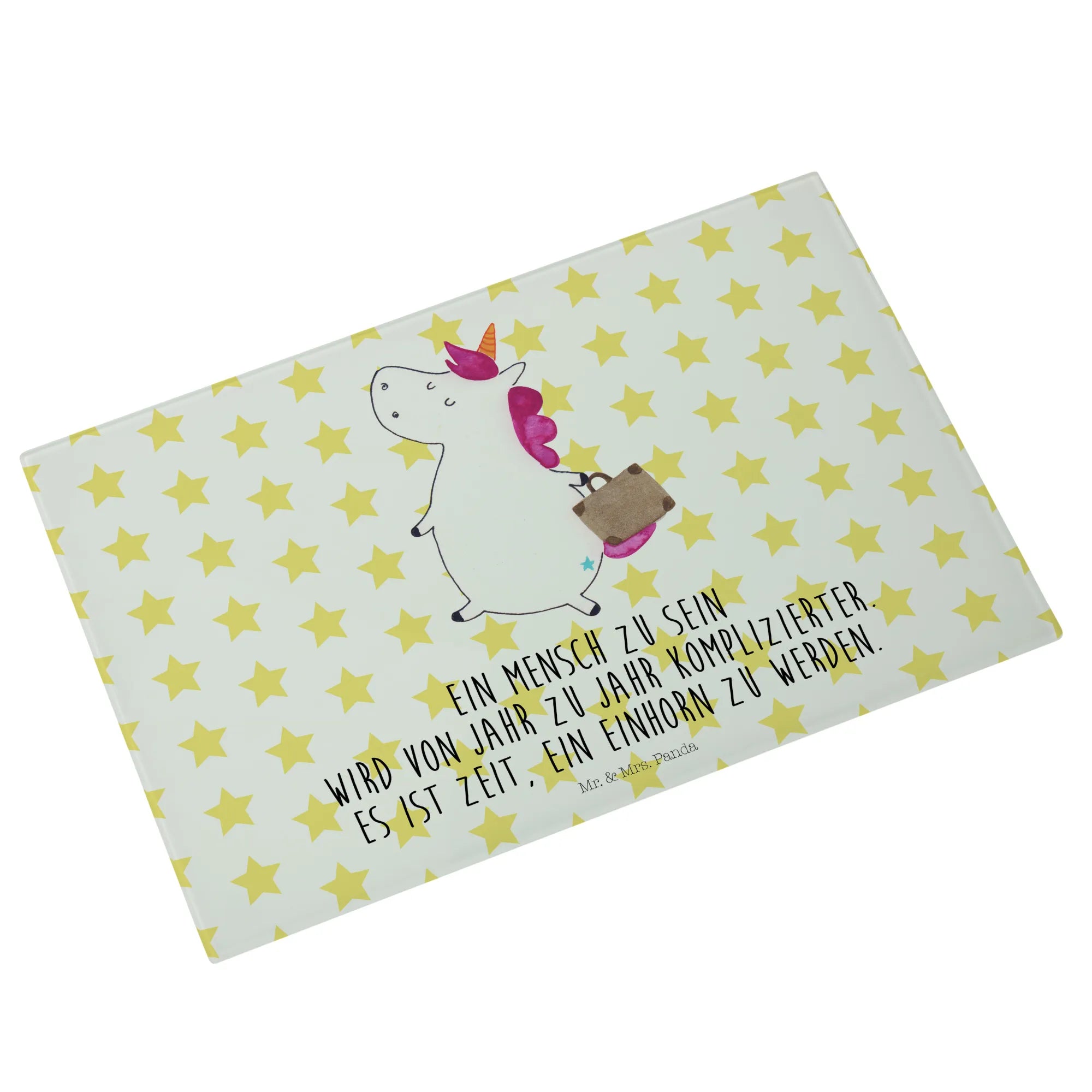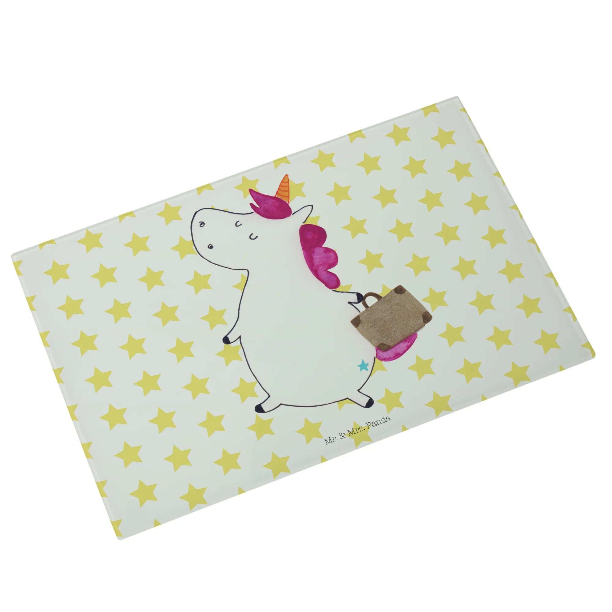 Glass chopping board unicorn Suitcase - Medium Glas Schneidbrett - with a saying - White