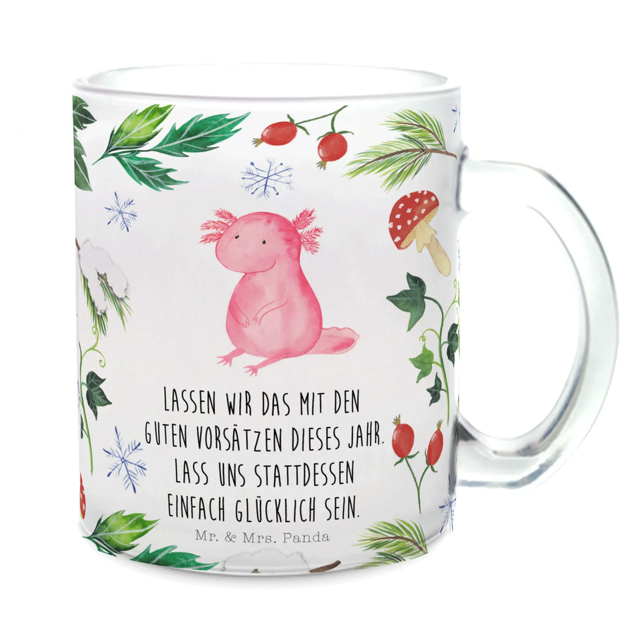 Introducing the delightful Glass Tea Cup featuring the charming Axolotl Happy motif, part of the enchanting Winter Collection from Mr. & Mrs. Panda. If you are looking for the perfect gift this holiday season, this tea cup may just be the answer! Crafted with love, this premium glass tea cup is not only a practical choice for your favorite hot drinks—be it tea, coffee, or even mulled wine—but also a delightful piece of art that will add a sprinkle of happiness to your winter days.