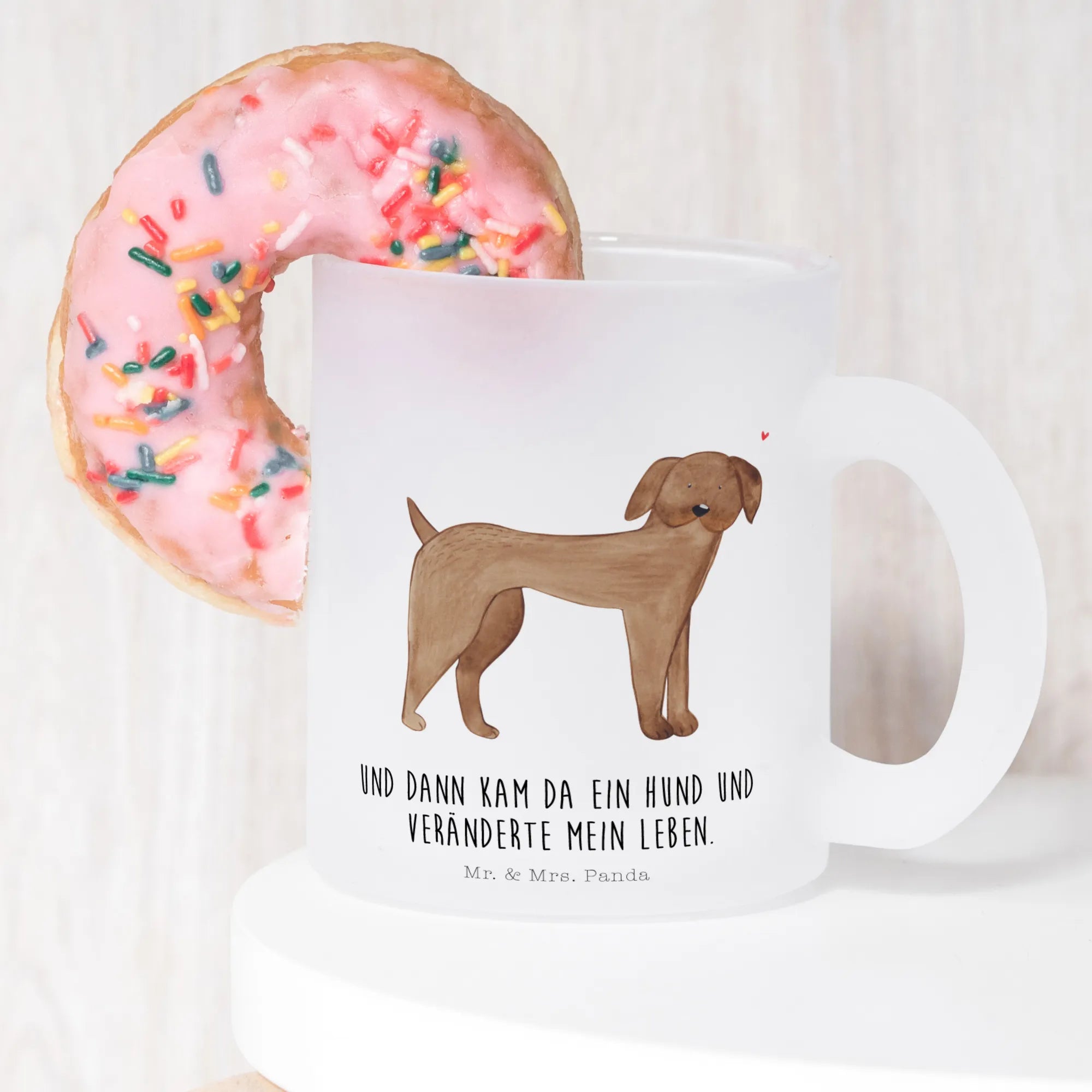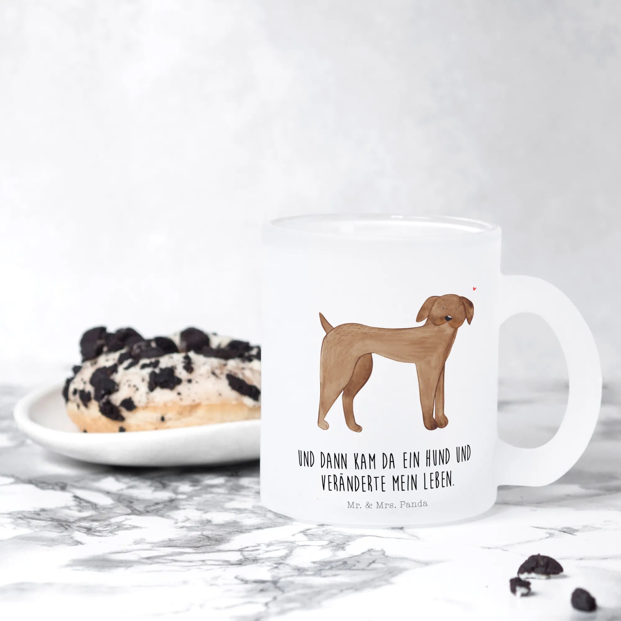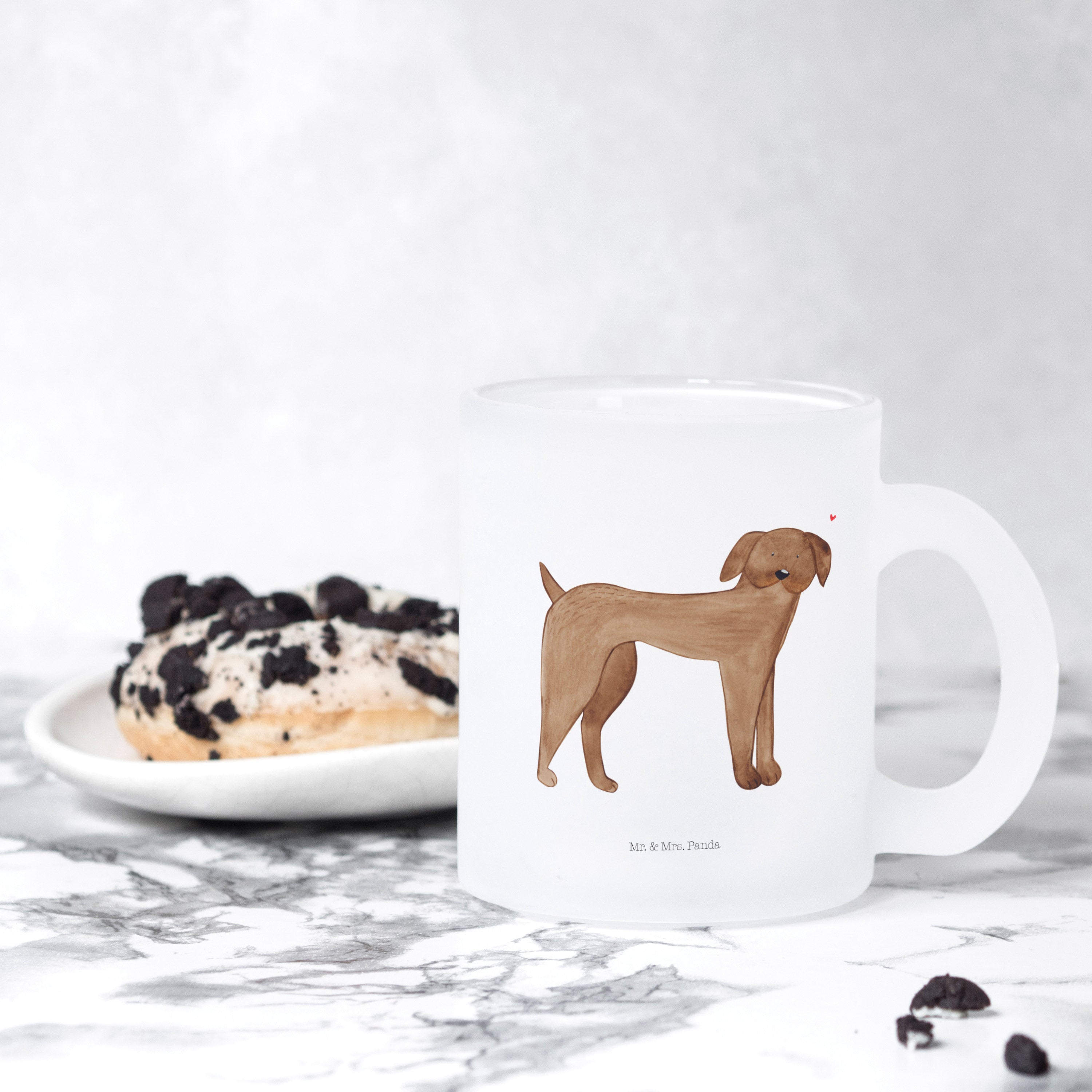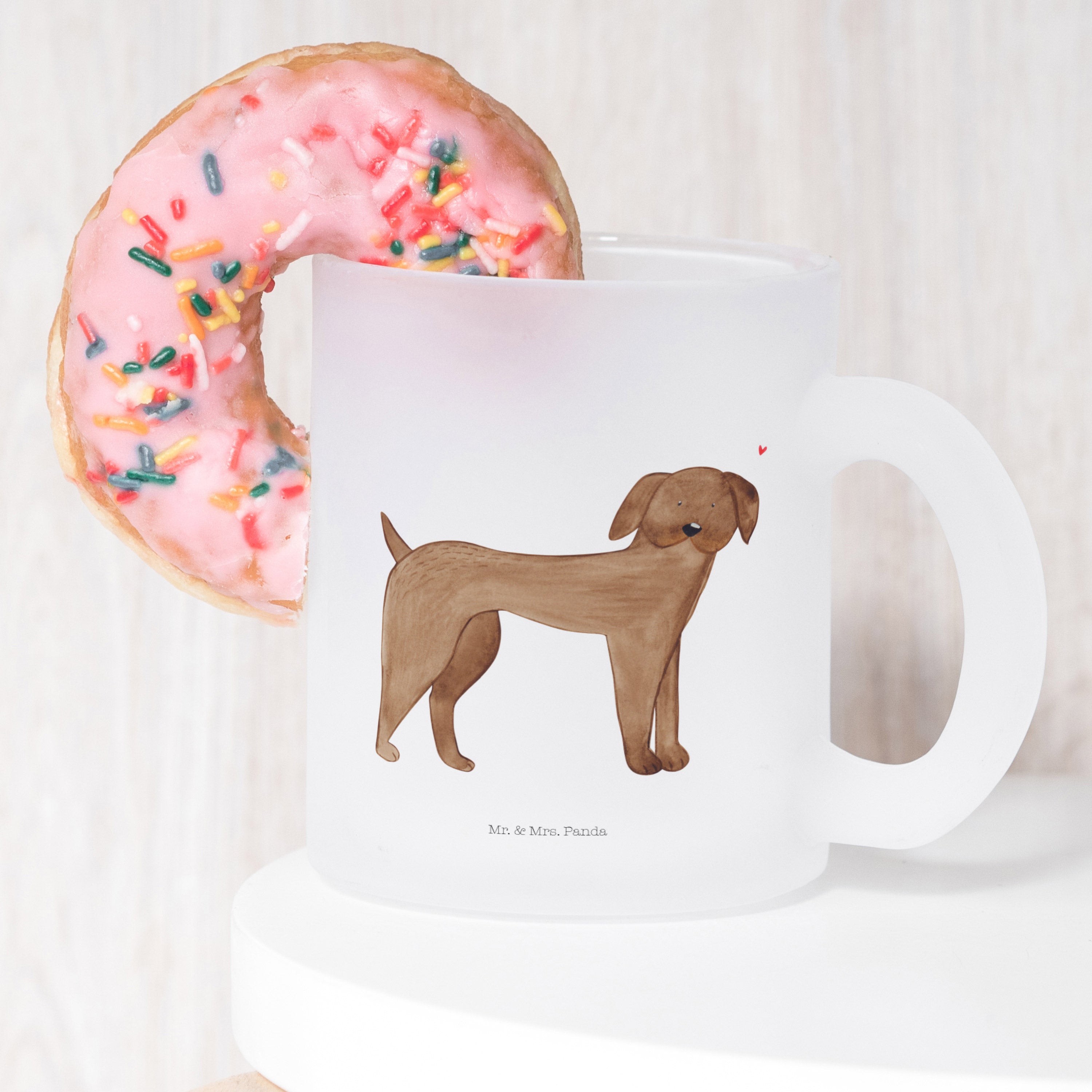 Introducing the delightful Mr. & Mrs. Panda glass tea cup! This exquisite jumbotasse is made from robust, extra strong premium glass, ensuring that it's both beautiful and durable. With a size of 95 mm (4 inches) in height and a 80 mm (3 inches) diameter, it fits comfortably in your hand. Perfectly designed for indulging in your favorite hot beverages like tea, coffee, or even mulled wine, this tea cup adds a touch of elegance to every sip. The satin matte finish gives it a luxurious feel, while the charming designs printed on the surface bring warmth and joy. Notably, the motifs are enhanced with different backgrounds depending on your drink, making each cup a unique experience. Plus, it features a scratch-resistant and heat-resistant print, so it’s both functional and stylish. However, please note that for its care, it is not dishwasher safe, so gentle hand-washing is recommended. Elevate your tea-drinking experience with this special and unique glass tea cup, which is not customizable, but will surely charm everyone who sees it!