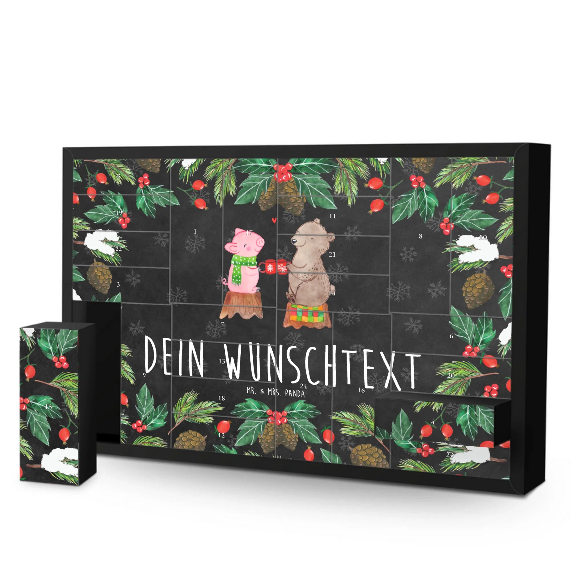 Step into a moment filled with charm, where our friendly piglet and bear come together to ring in the good times! Nestled on a tree stump, this cute duo raises their cups in joyous celebration. The little heart that connects them symbolizes their delightful friendship, making it the perfect echo of the festive spirit. With our slogan, 'Ein Prosit auf das feine Leben!', we invite you to share in this heartfelt toast to the joyful experiences and incredible people that fill our lives, especially during those cozy winter nights and cheerful Christmas moments. Here's to cherishing the bonds we create and the memories we'll carry forward together!