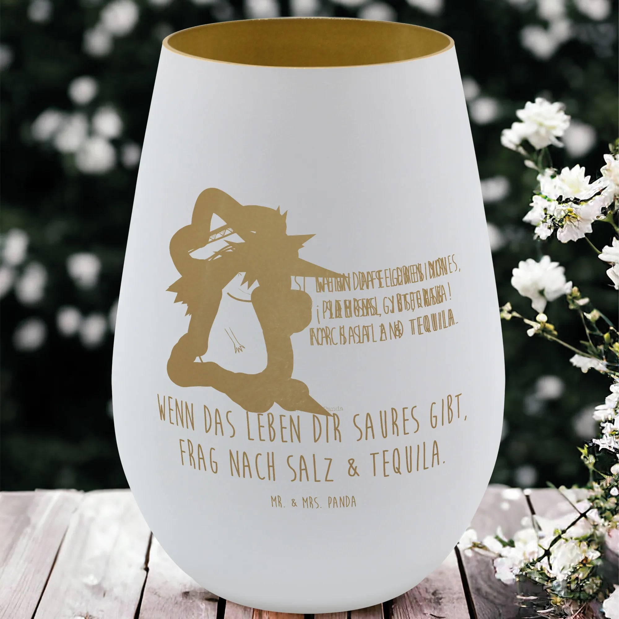 Das Gold Windlicht von Mr. & Mrs. Panda zaubert mit seinem edlen Design sowie seinen wunderschönen gravierten Motiven und Sprüchen eine gemütliche und romantische Atmosphäre in jeden Raum. Mit einer Höhe von 120 mm und einem Durchmesser von 85 mm ist es perfekt für handelsübliche Teelichter geeignet. Die exquisite Herstellung aus Glas sorgt für eleganten Glanz, während das hitzebeständige Material eine sichere Nutzung gewährleistet. Dieses Windlicht ist nicht nur ein toller Blickfang für feierliche Sommerabende oder gemütliche romantische Abende, sondern schützt auch das Teelicht hervorragend vor Wind. Ein besonderes Highlight: Durch die Erhitzung des Materials entsteht ein zauberhafter Matteffekt, der den Glanz des Windlichts unterstreicht. Die Pflege ist ebenfalls kein Problem, da eine sanfte Handwäsche empfohlen wird und das Windlicht zudem spülmaschinengeeignet ist. Das Gold Windlicht wird bereits mit einem Teelicht geliefert, sodass du sofort mit der Verwendung beginnen kannst.