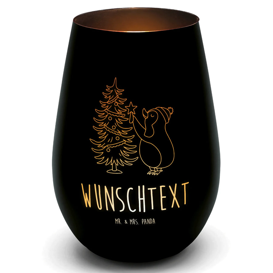 Gold Windlicht Personalisiert Pinguin Weihnachtsbaum - Schwarz