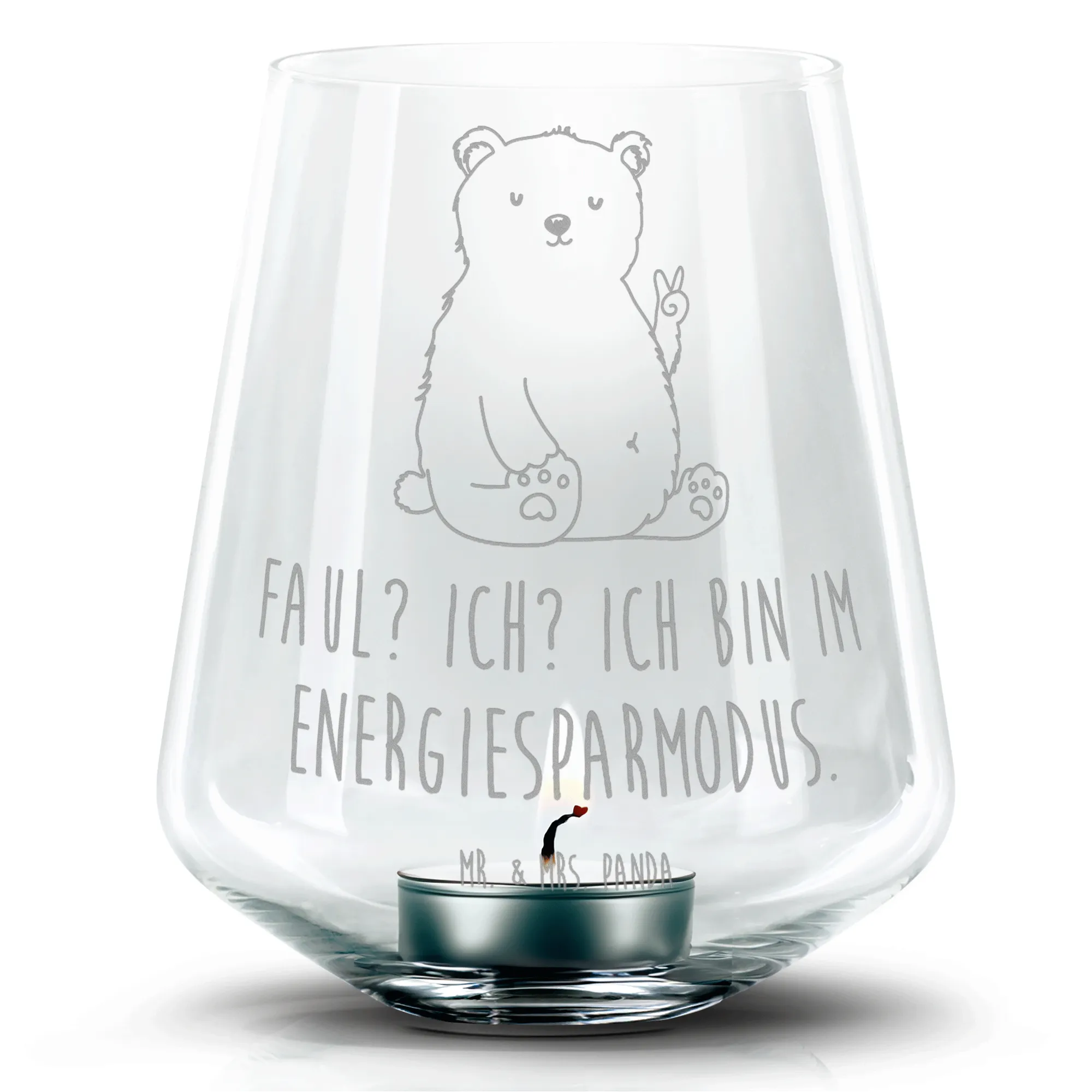 Gravur Windlicht Eisbär Faul - mit Spruch