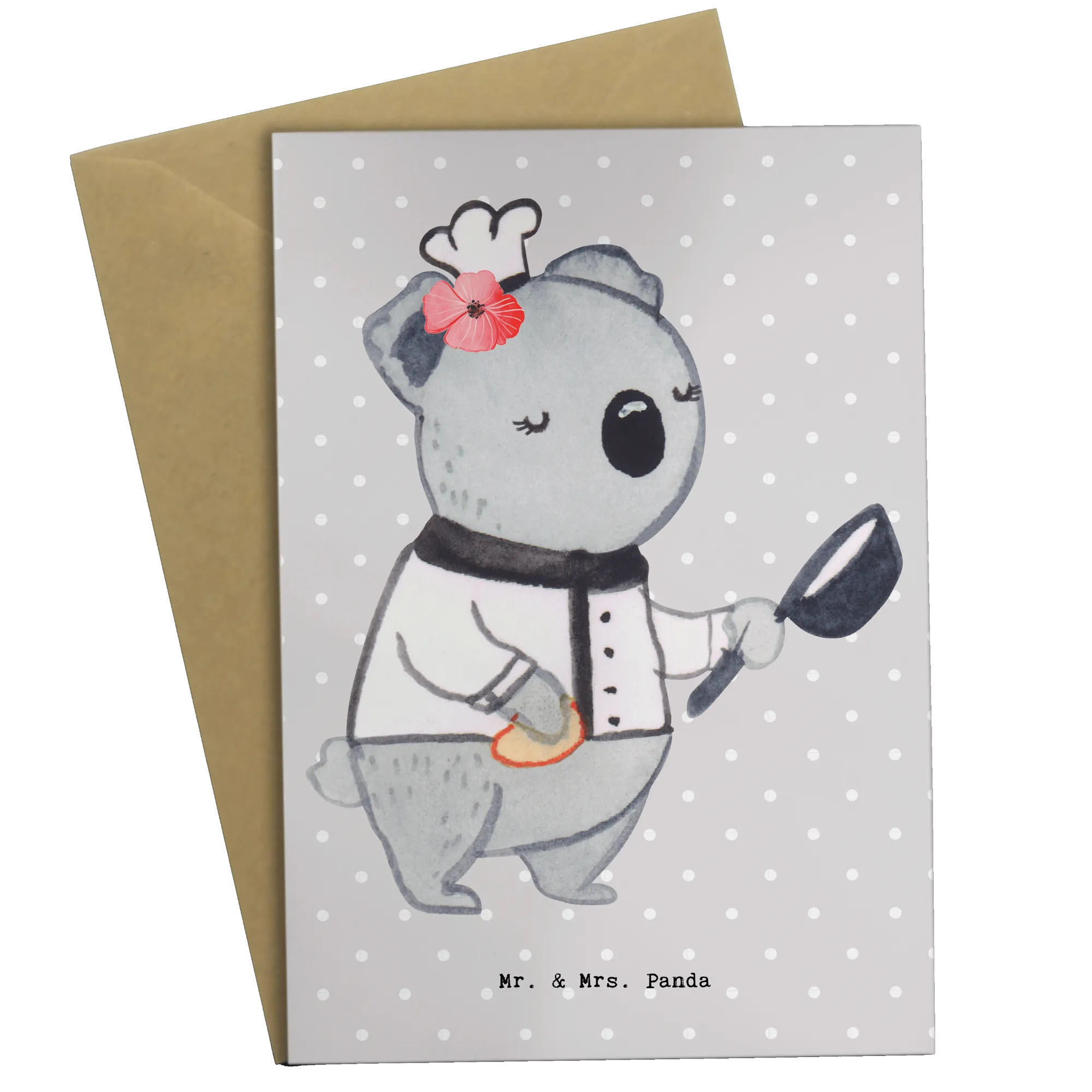 The vibrant design showcases a cute koala lady dressed as an assistant cook, complete with a frying pan and apron, bringing a smile to anyone in the culinary profession!