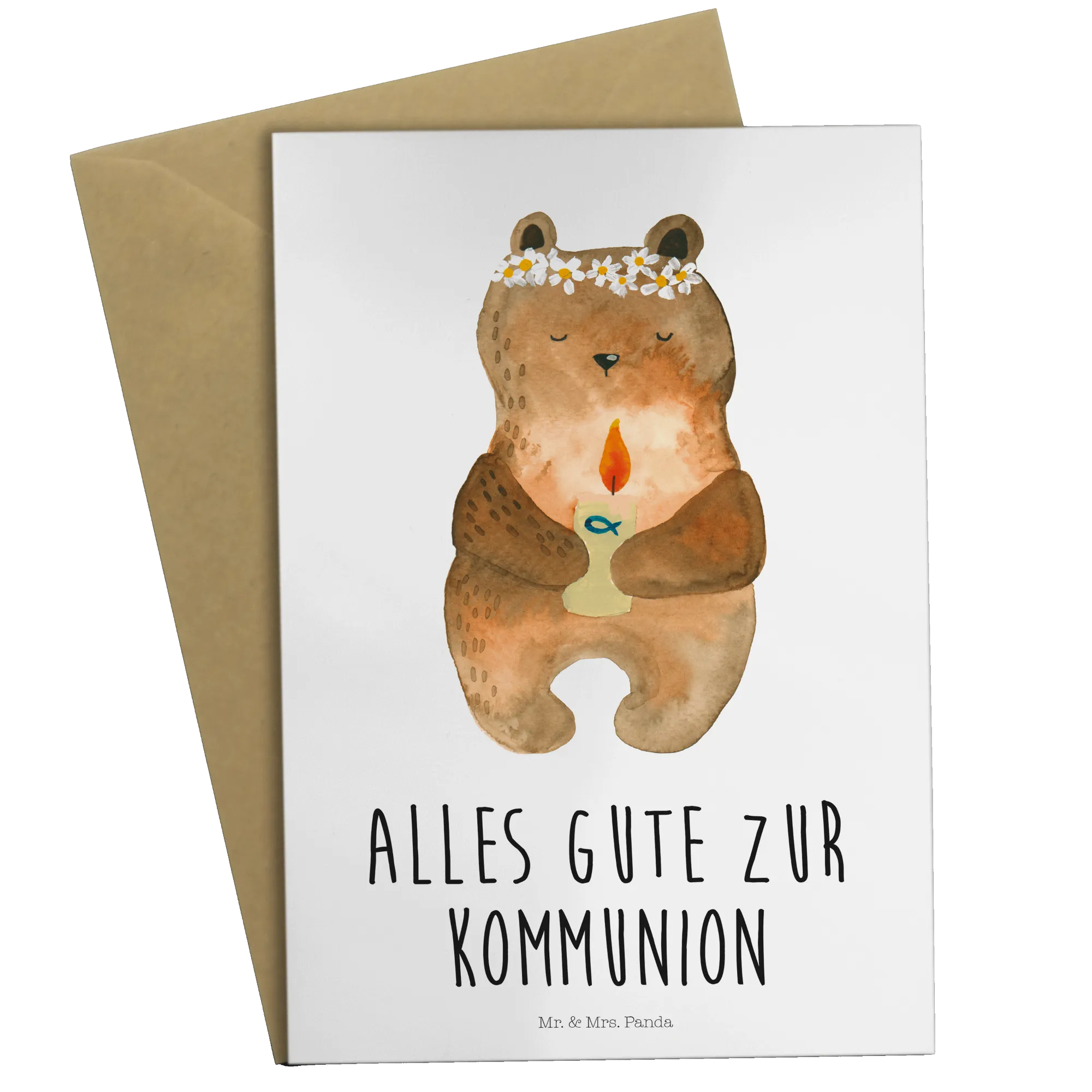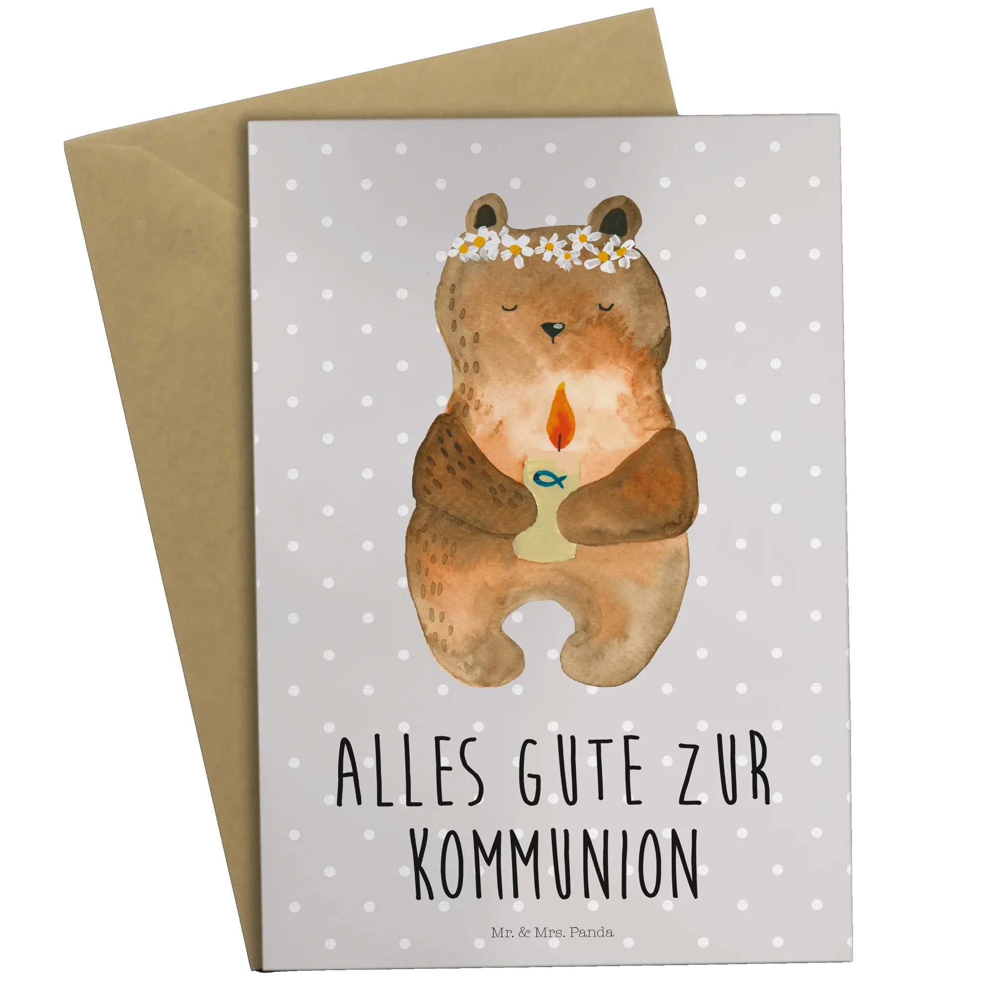 Introducing the delightful Greetings Card featuring the adorable Communion Bear from Mr. & Mrs. Panda! This beautifully designed card is perfect for celebrating a special communion event, providing timeless memories and heartfelt wishes all wrapped in one lovely package.