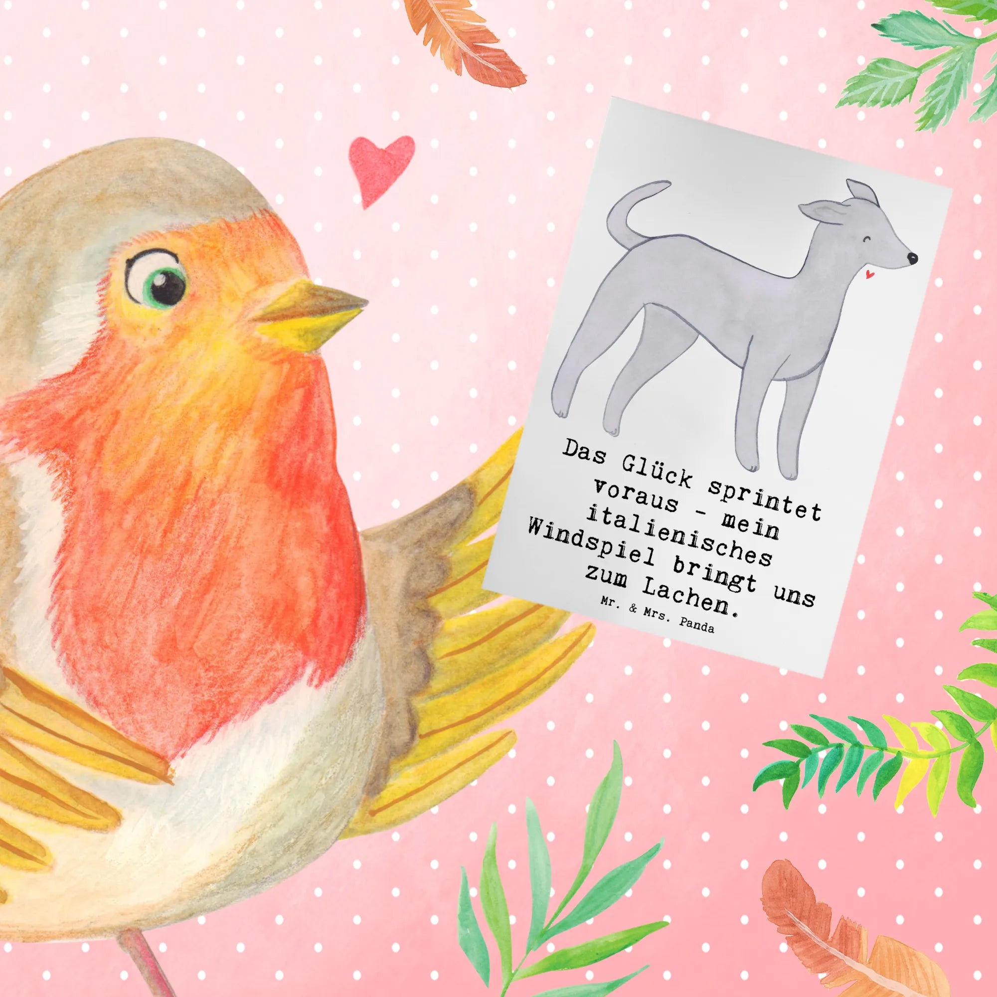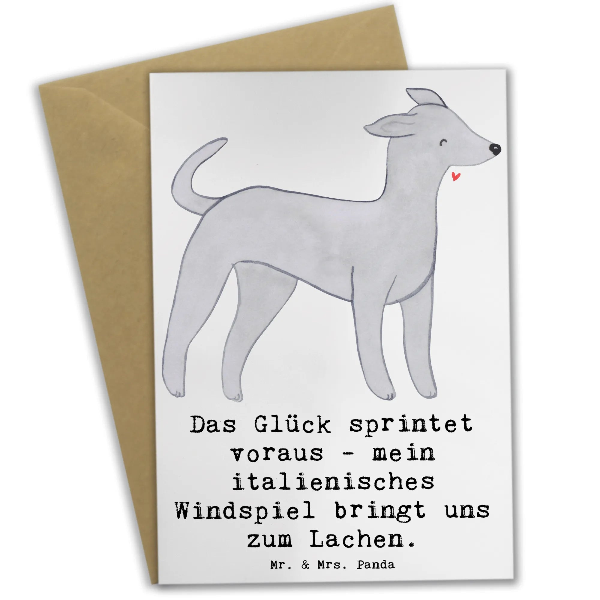 Greetings card Das Glück sprintet voraus - mein italienisches Windspiel bringt uns zum Lachen. - White
