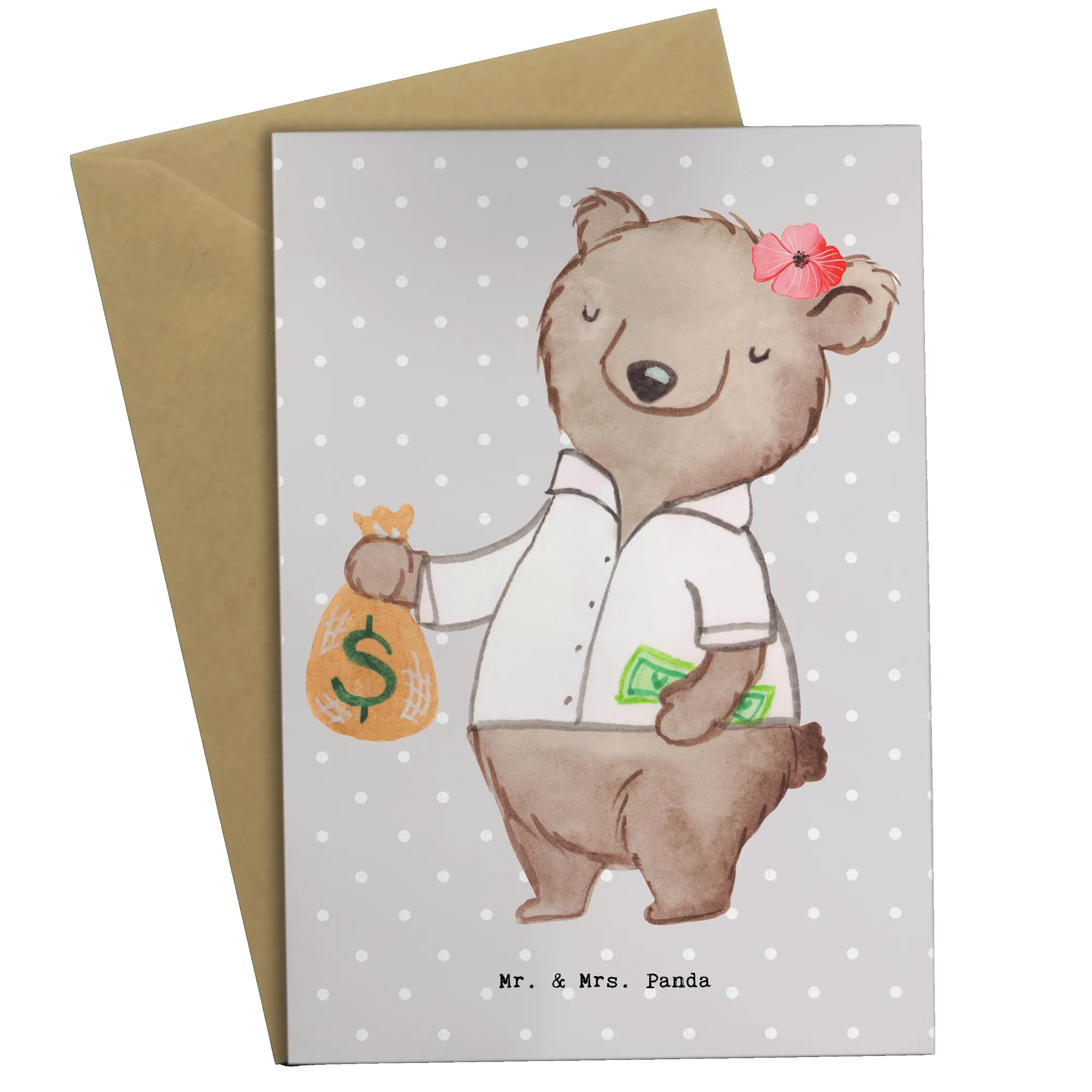 This one-of-a-kind design showcases a cute female bear holding a money bag, clearly living out her passion as a banker! With the whimsical slogan "Is life even worth living if you're not a banker?" on the front, this card celebrates the hard work and dedication of those in the banking profession.